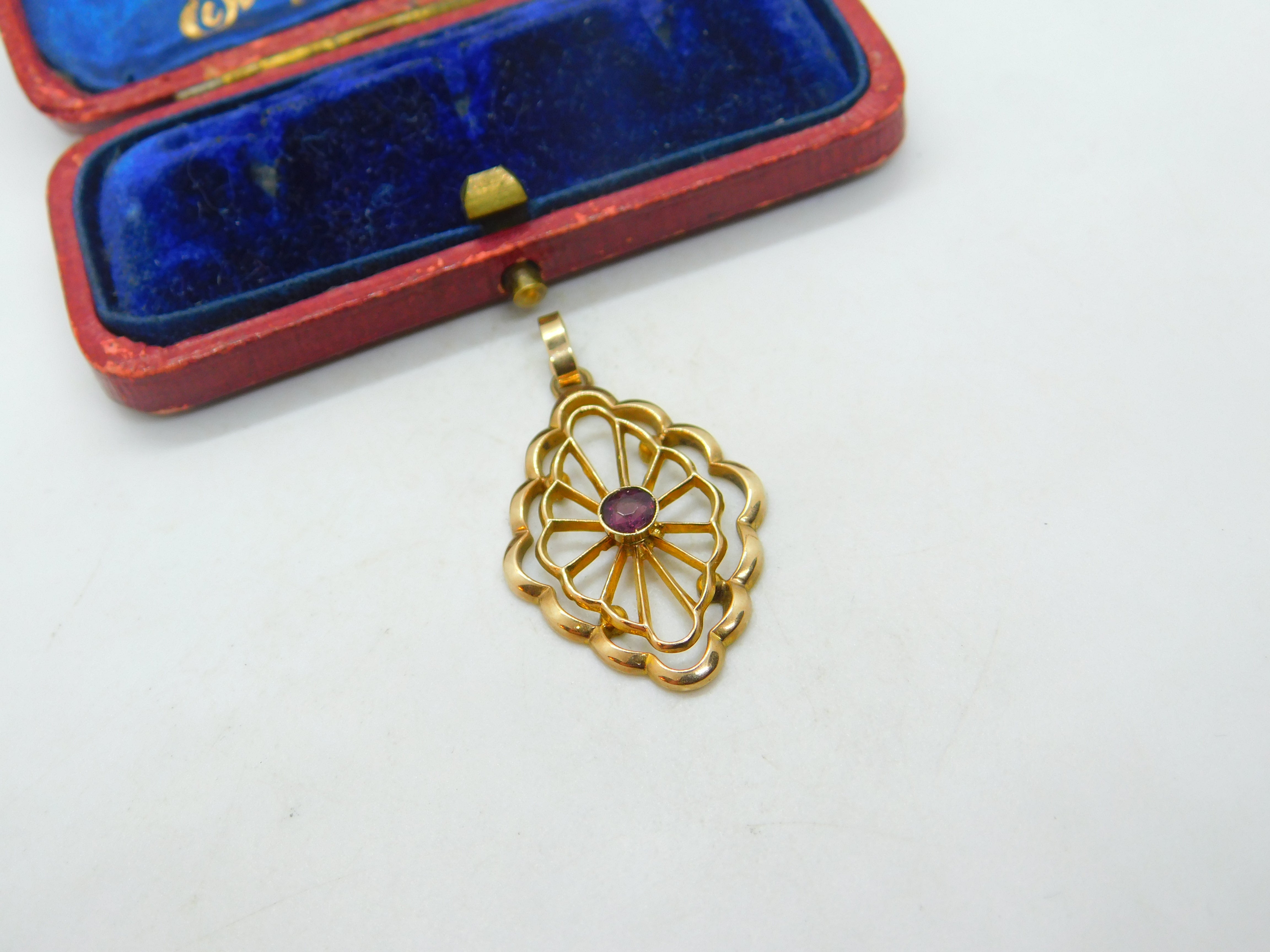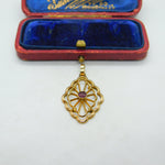 Edwardian 9ct Yellow Gold Art Nouveau Garnet Set Pendant Antique c1910