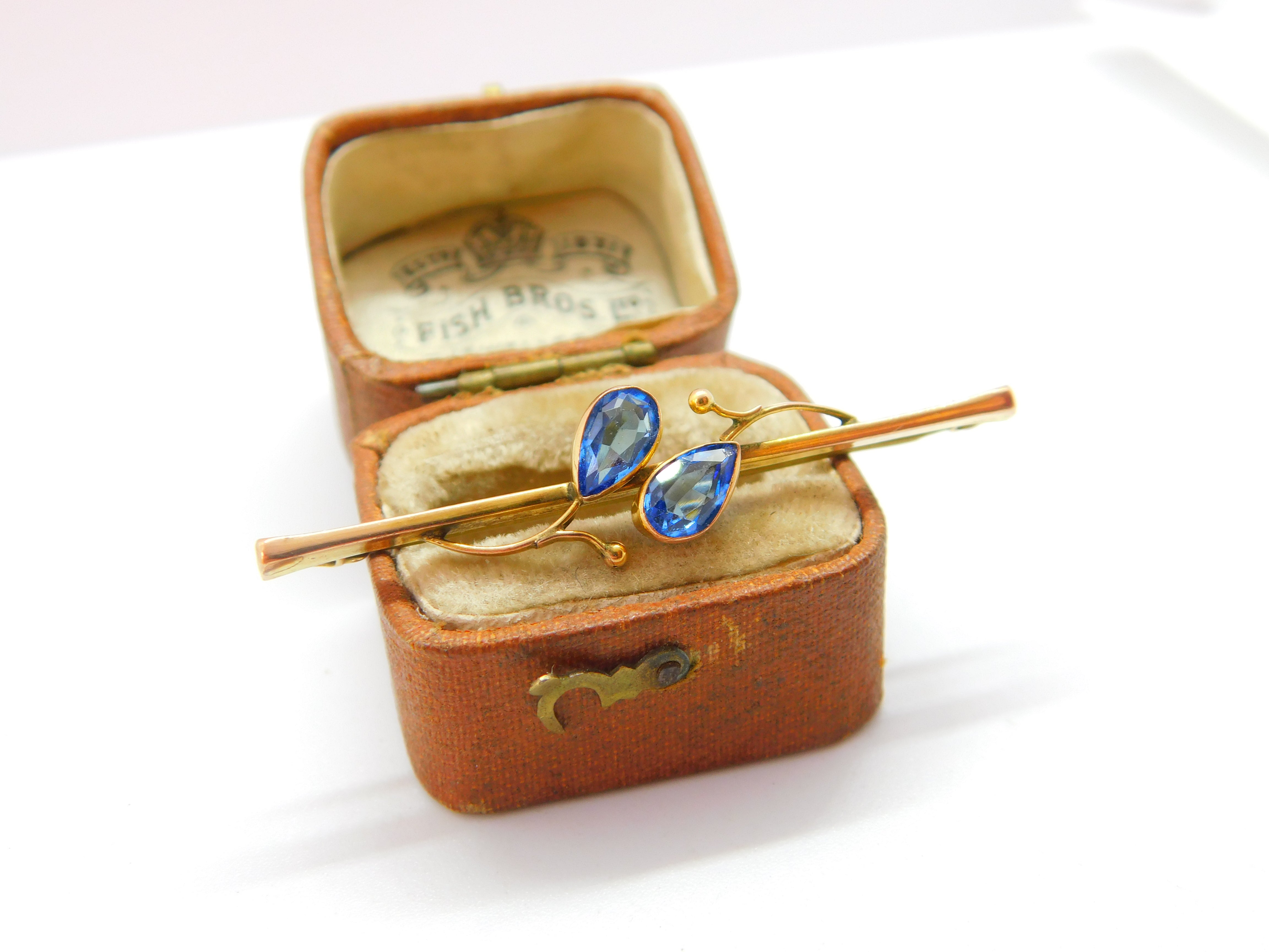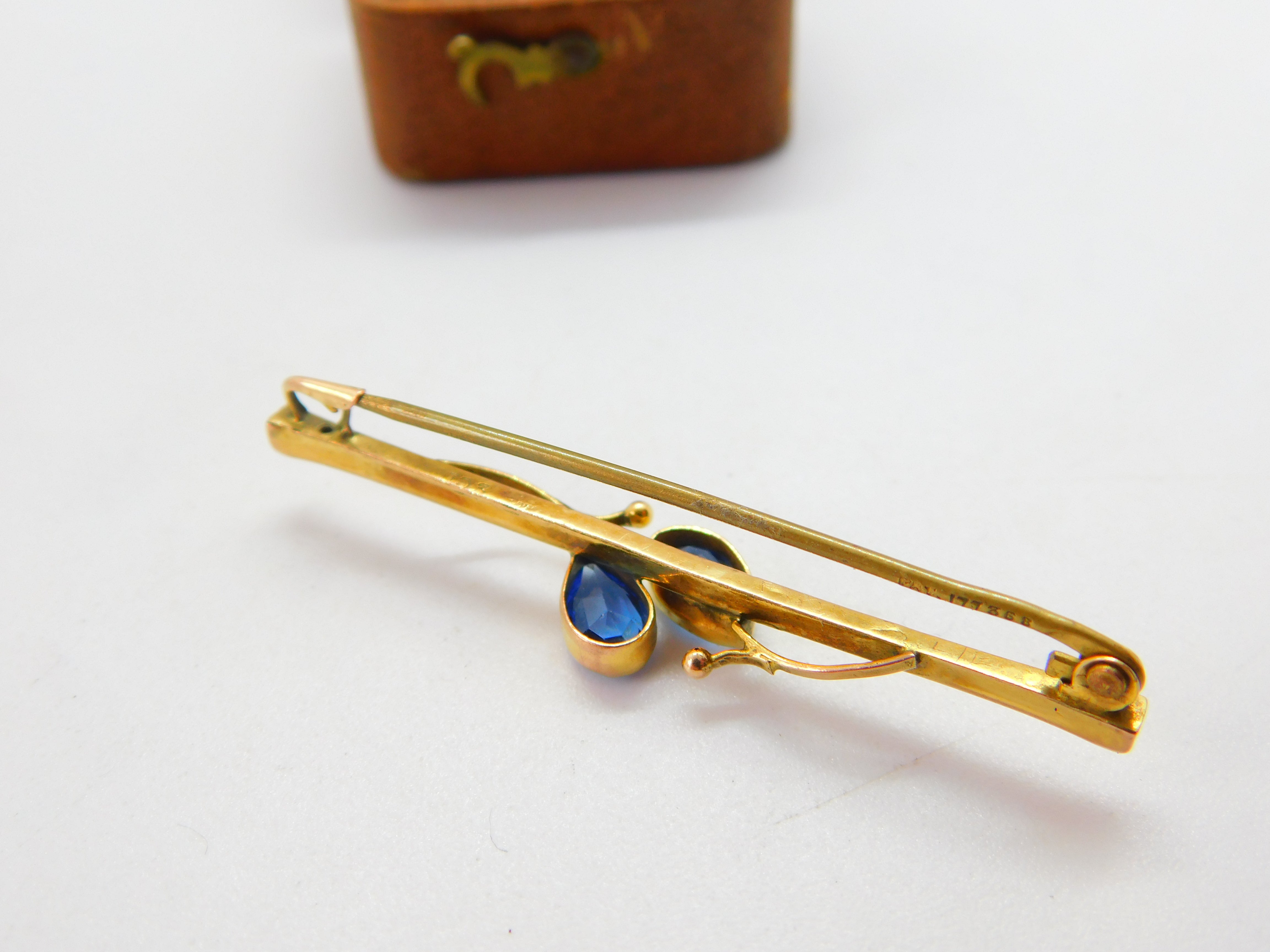 Edwardian 9ct Yellow Gold Blue Sapphire Paste Crossover Brooch c1910 Antique