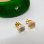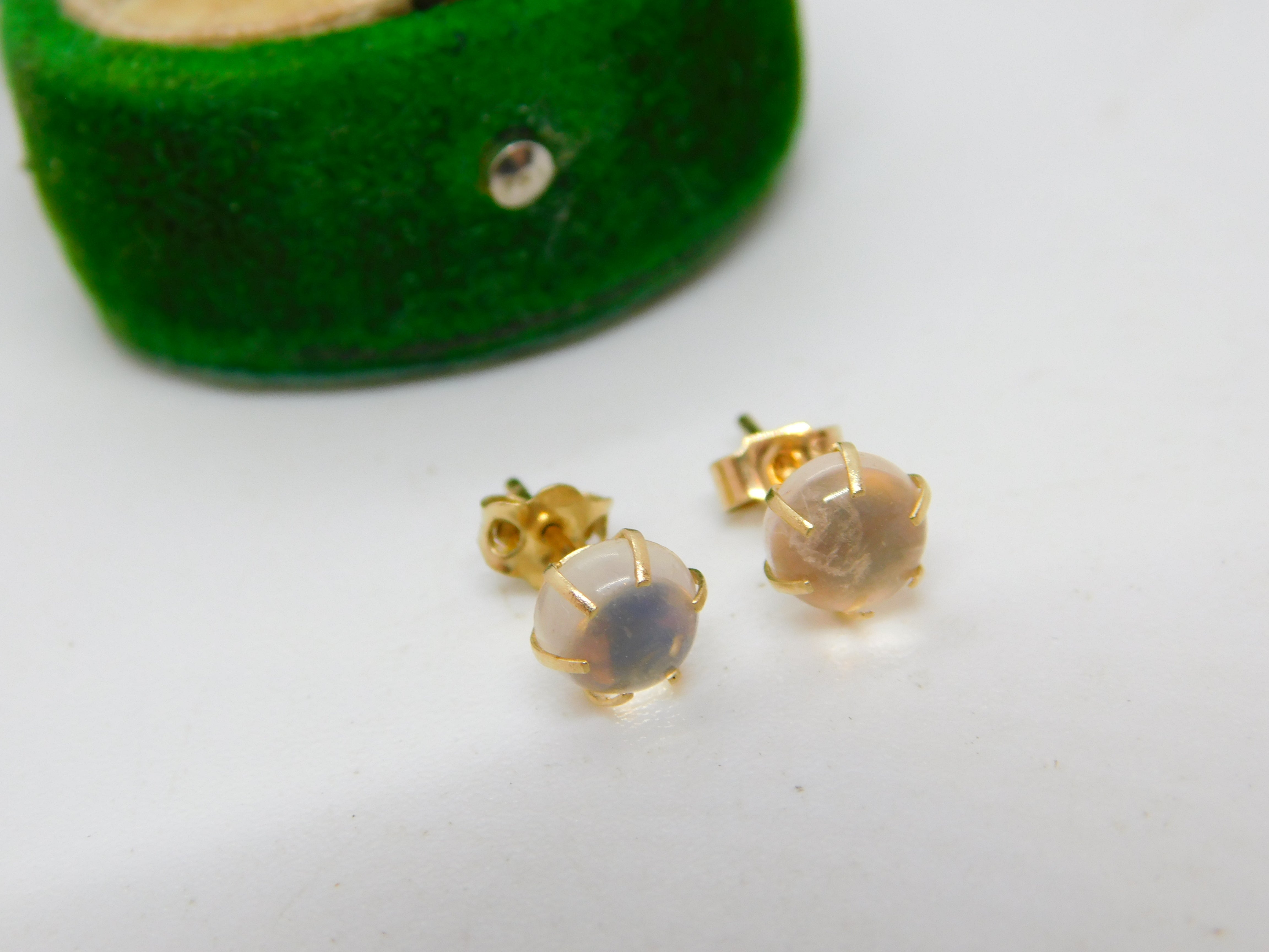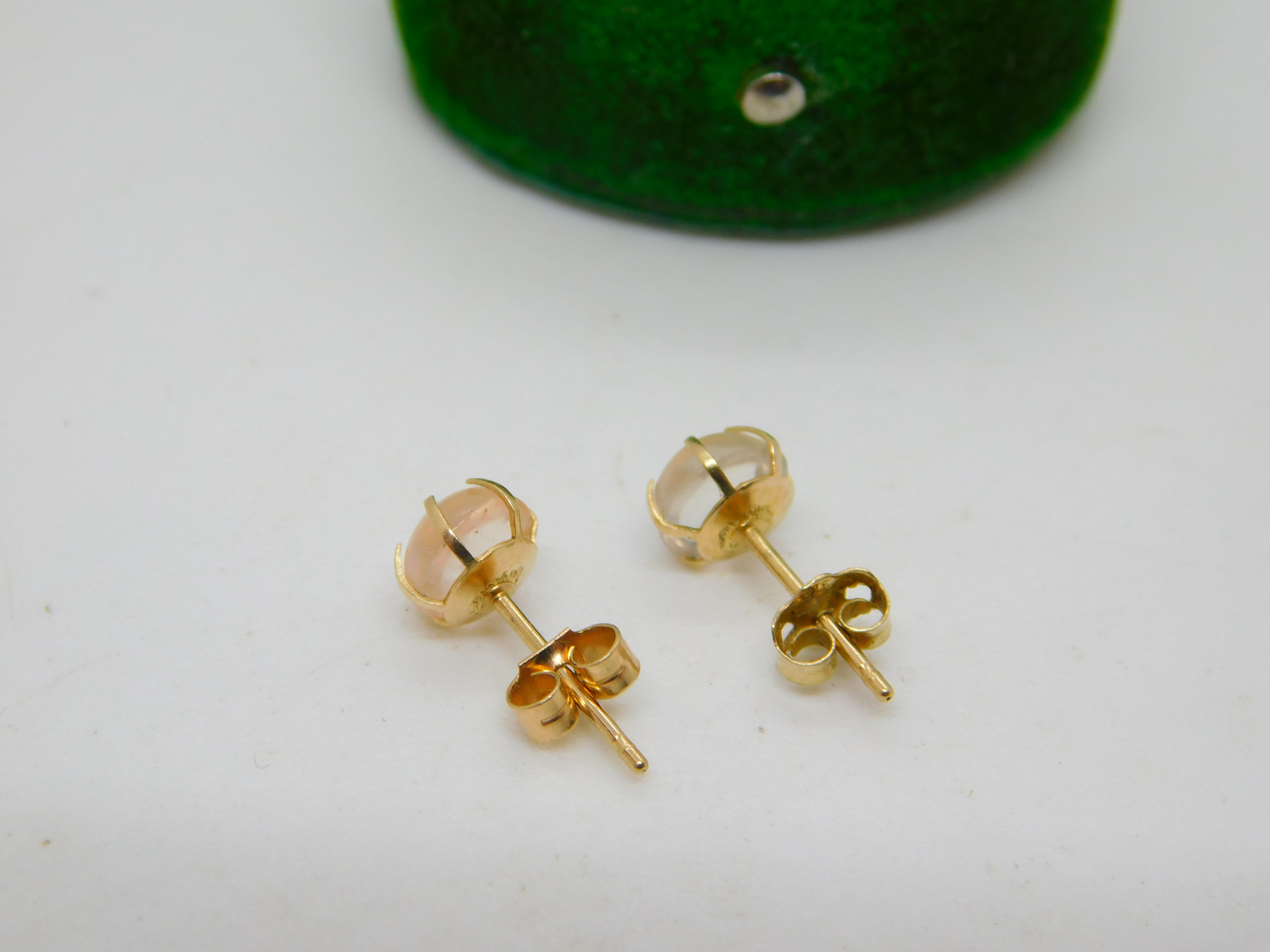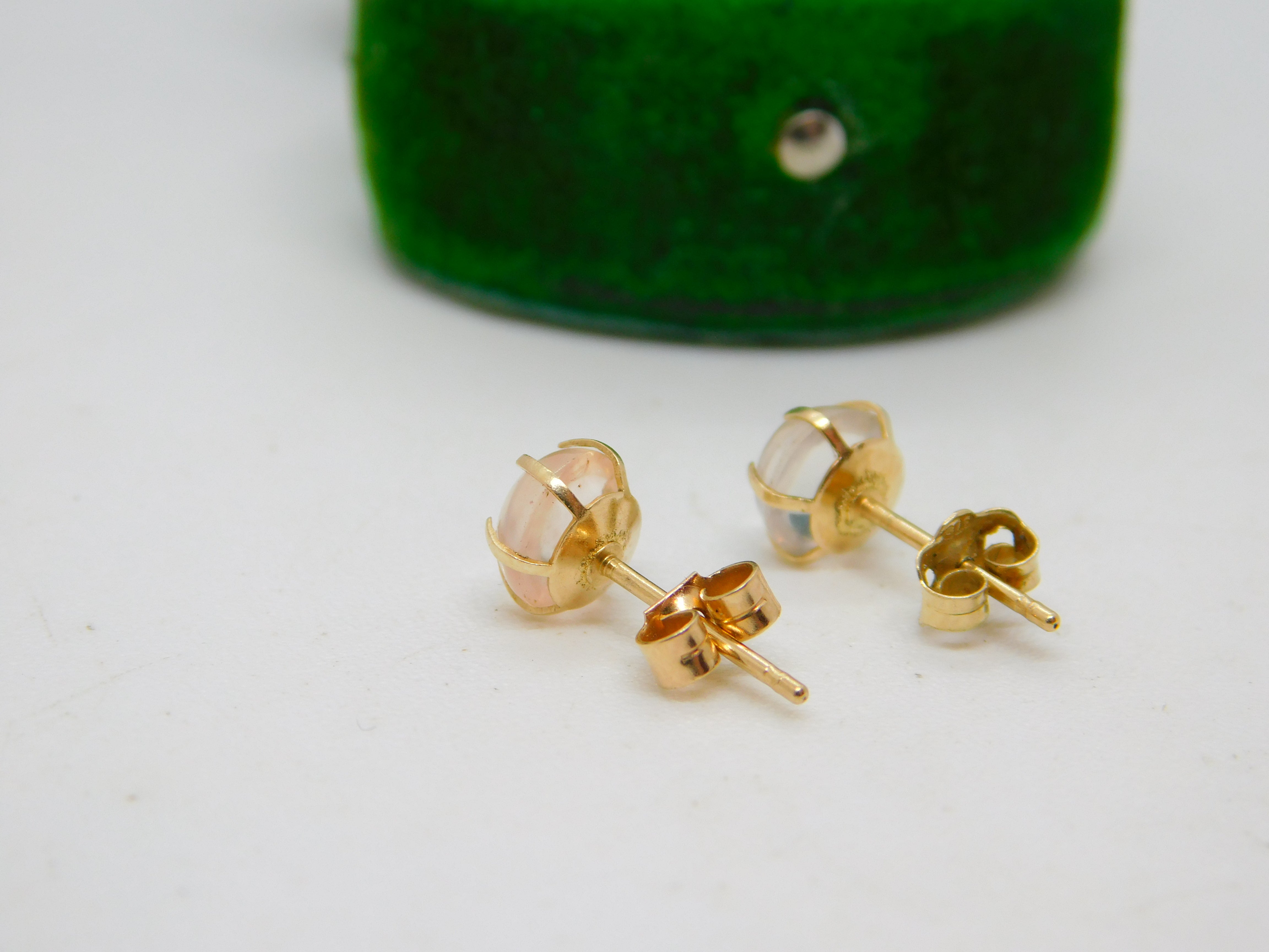 Edwardian 9ct Yellow Gold Cabochon Moonstone Stud Earrings Antique c1910