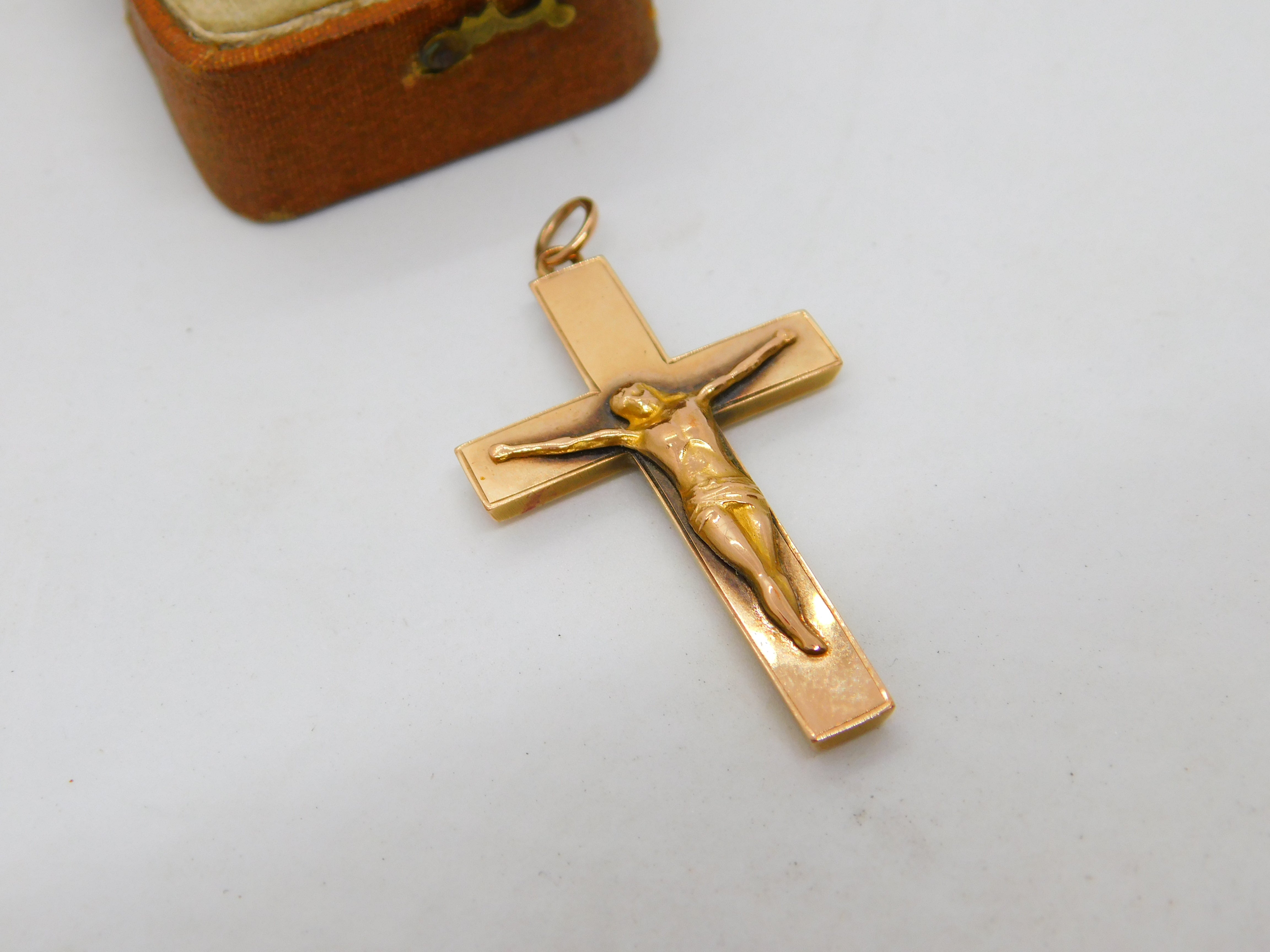 Edwardian 9ct Yellow Gold Corpus Christi Cross Pendant Antique c1910