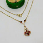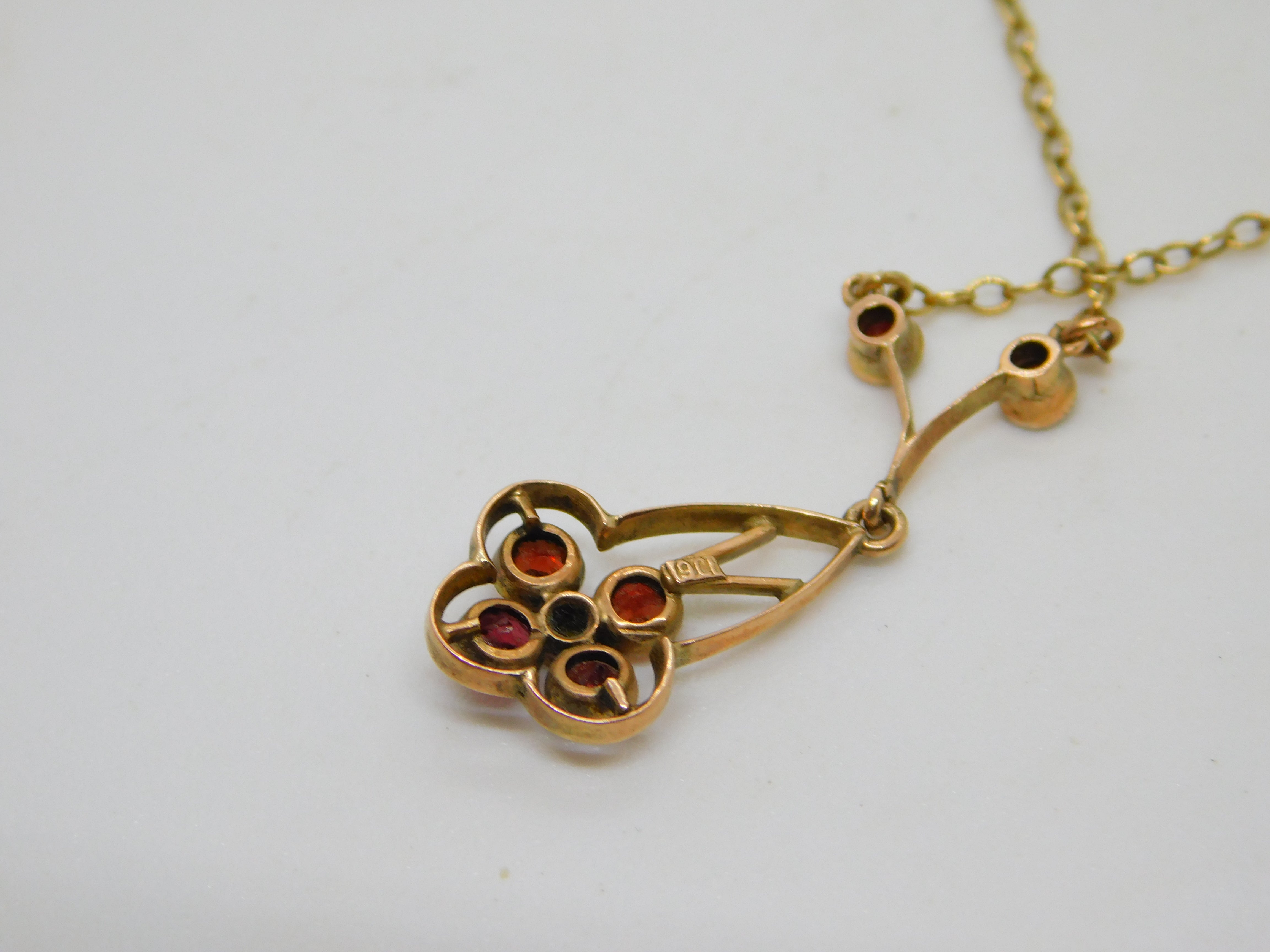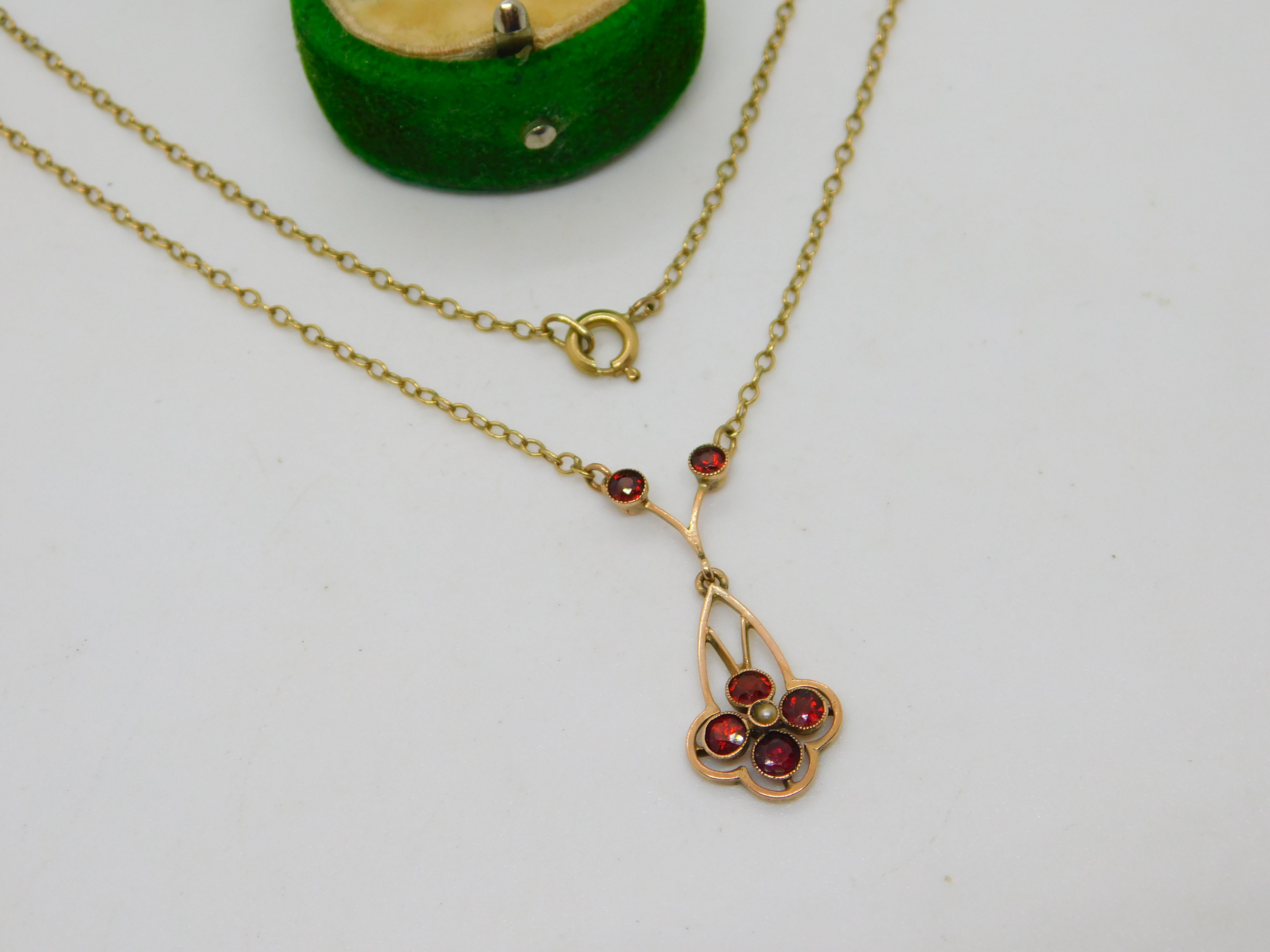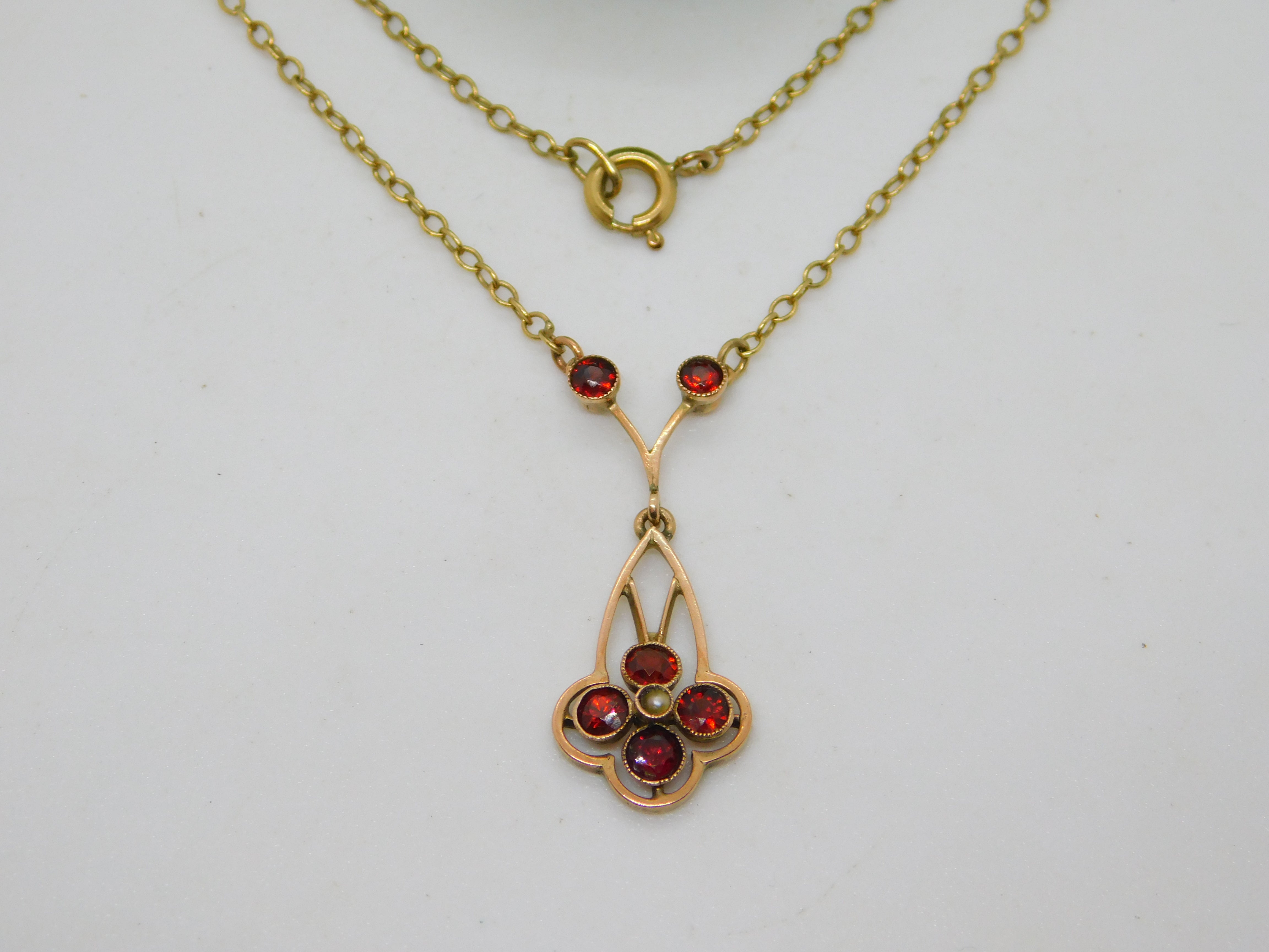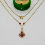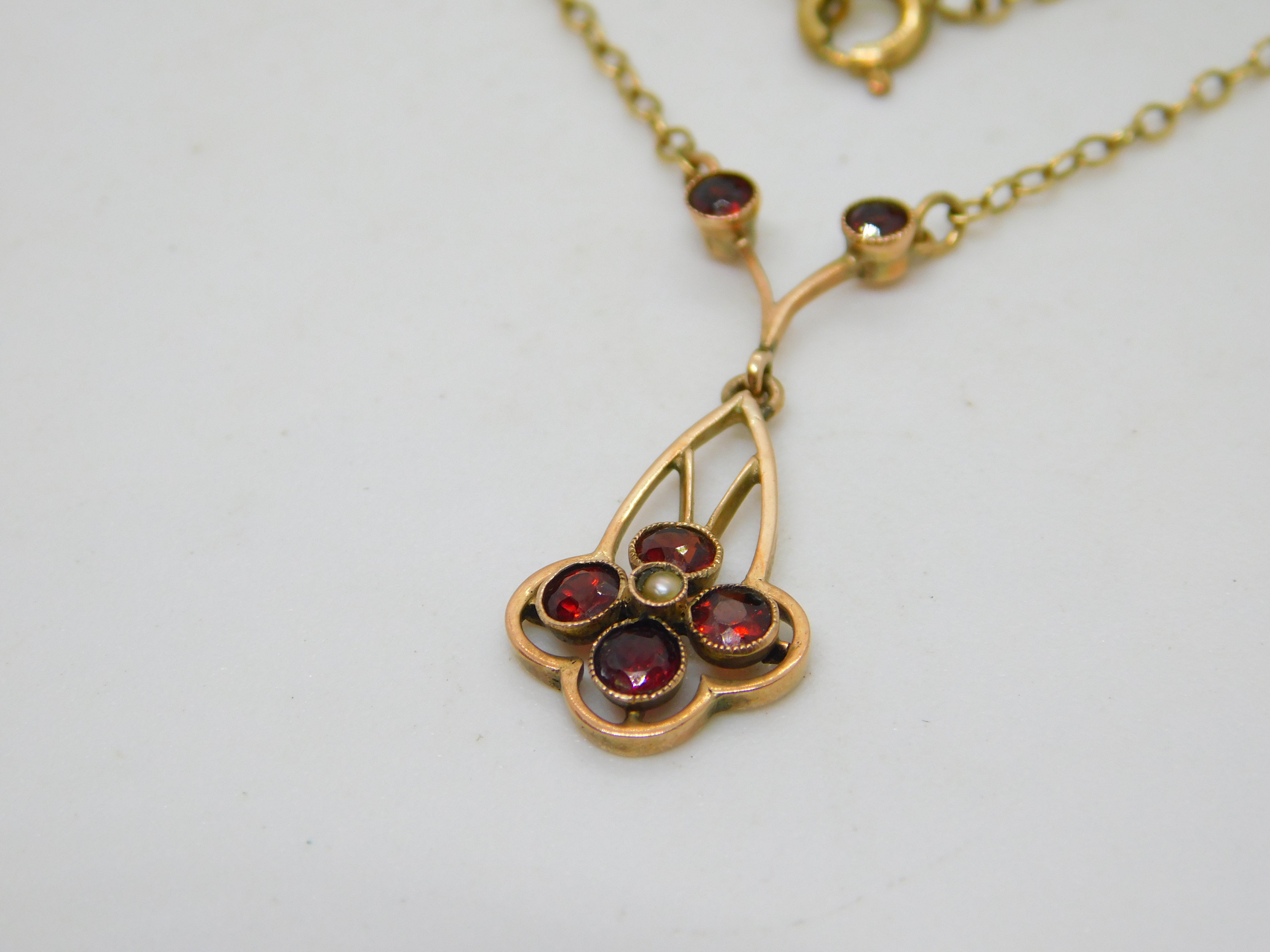 Edwardian 9ct Yellow Gold, Garnet & Pearl Set Floral Necklace Antique c1910