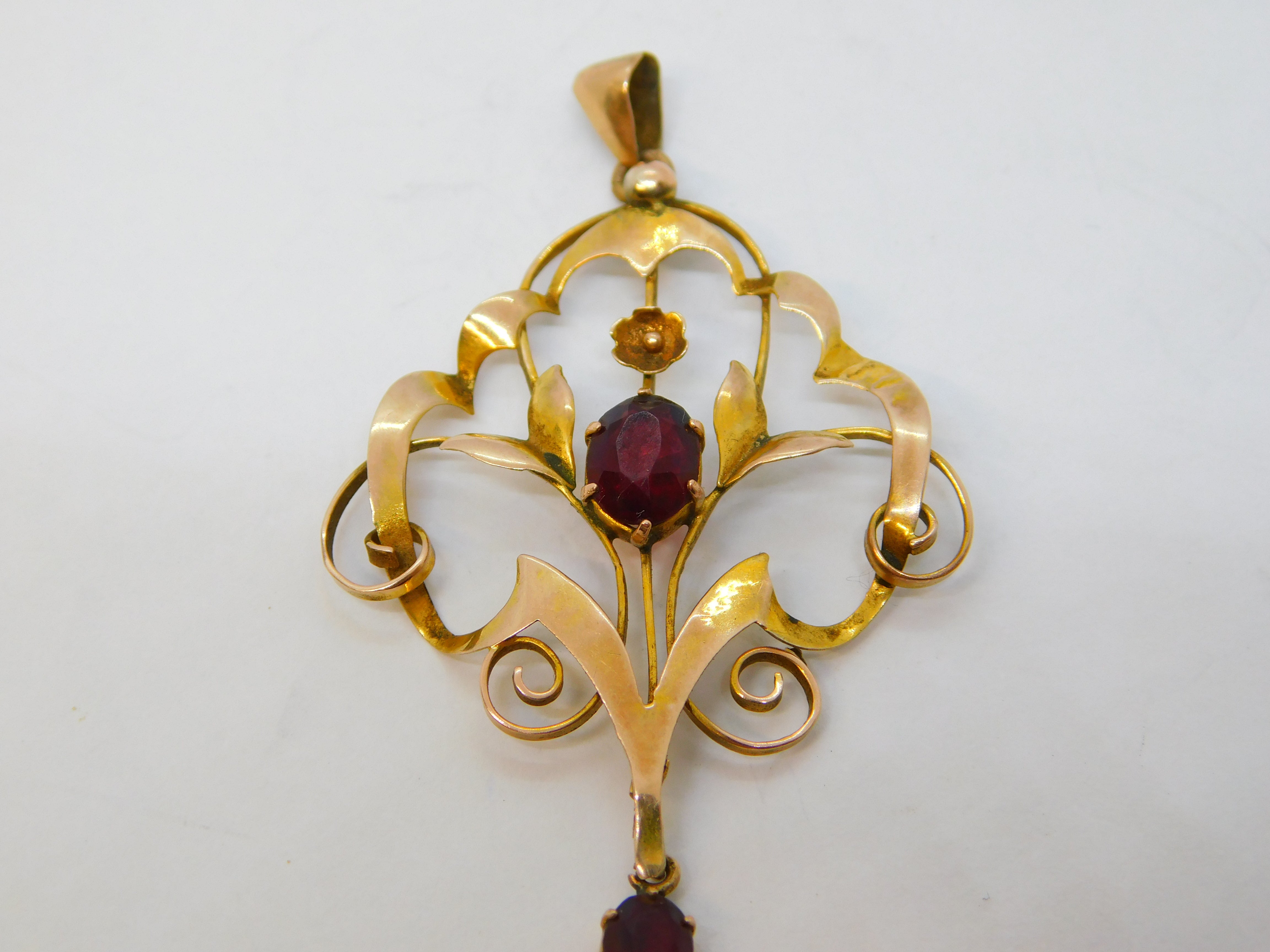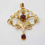 Edwardian 9ct Yellow Gold Garnet Set Lavalier Drop Pendant Antique c1910
