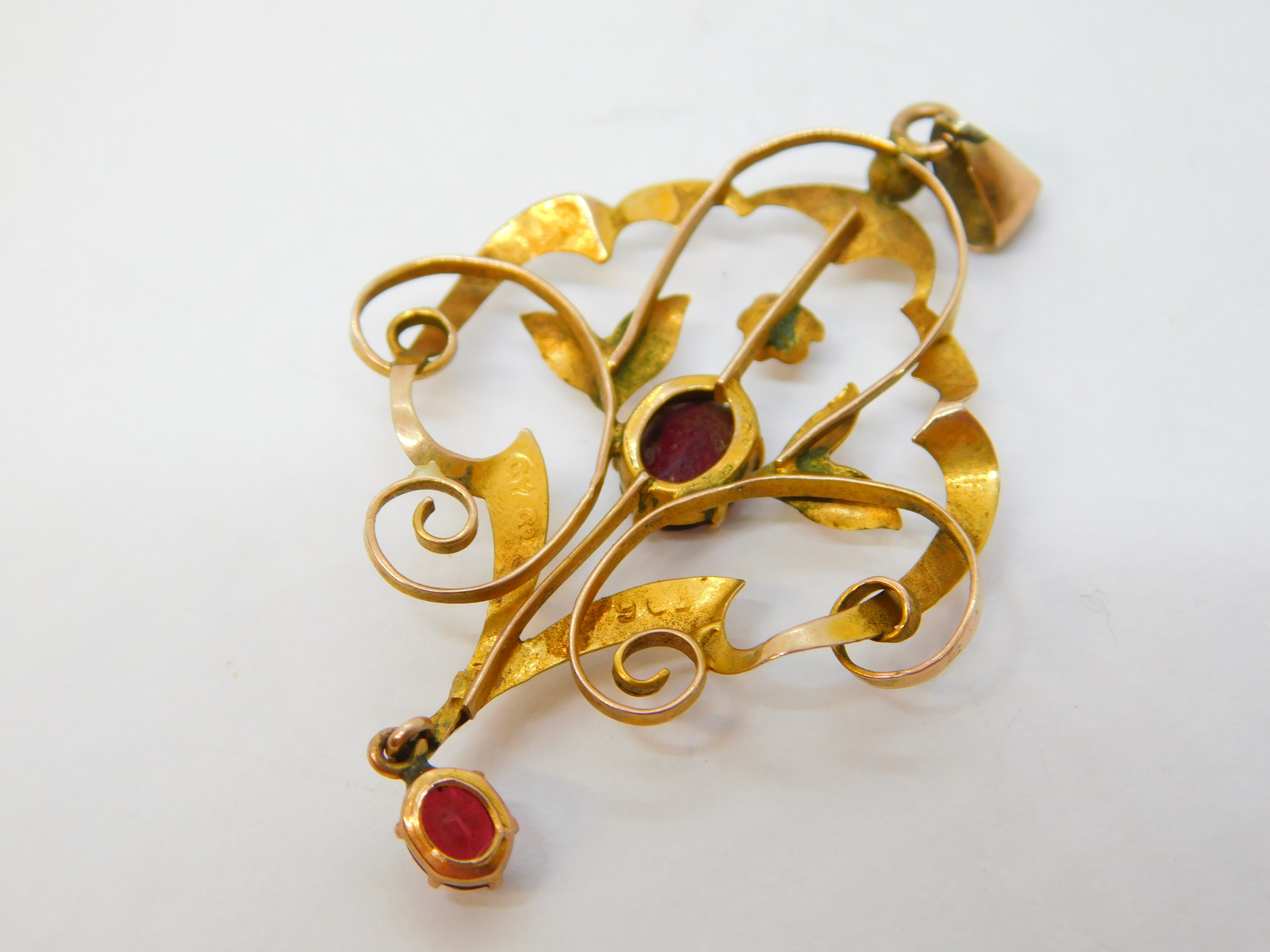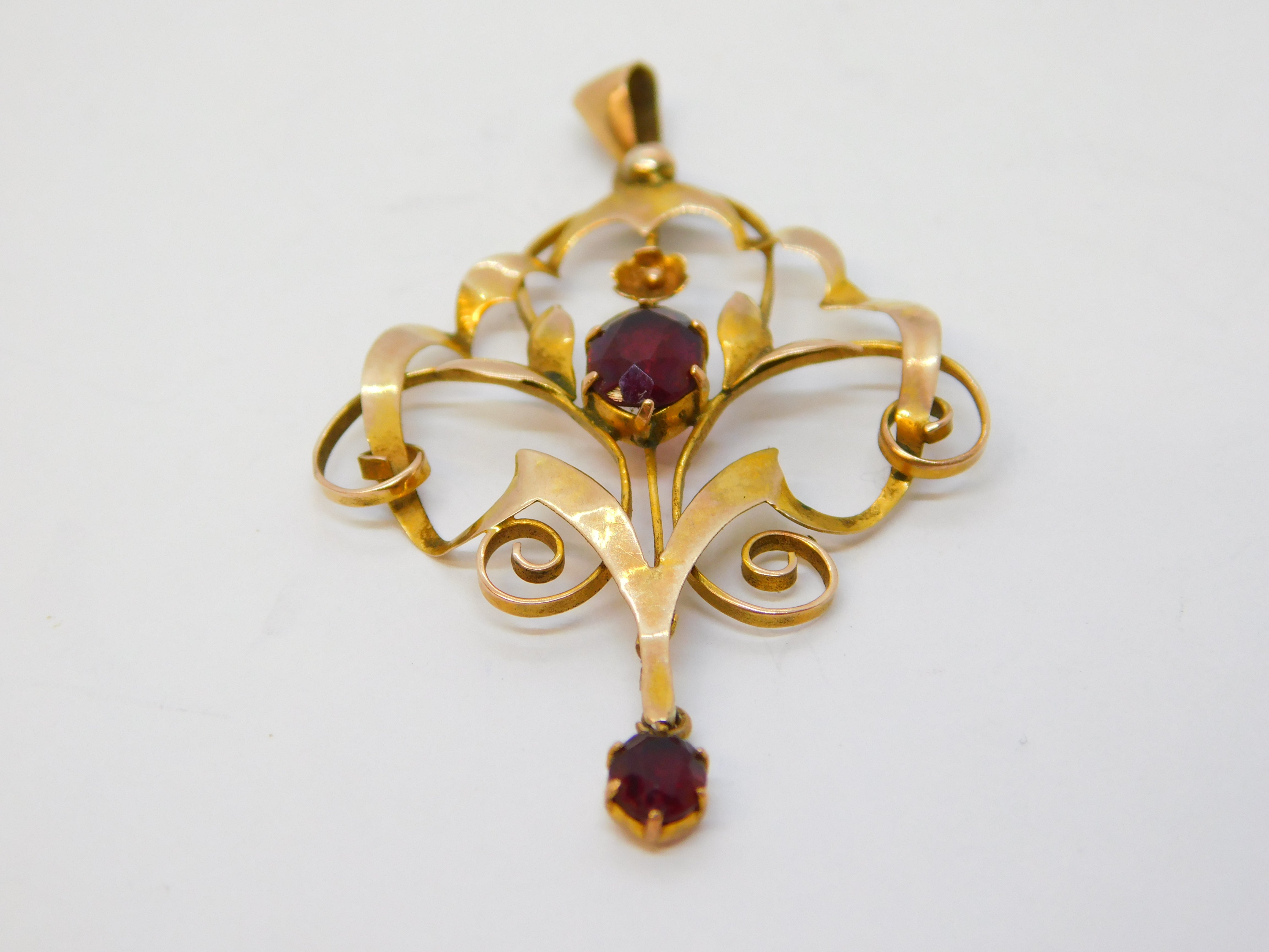 Details: A fantastic and wonderfully designed antique edwardian 9ct yellow gold lavalier drop pendant set with bohemian garnet stones hallmarked to the reverse c1910. This is a wonderful item that would make a perfect gift or addition to any collection. We are more than happy to provide XRF reports for items upon request.