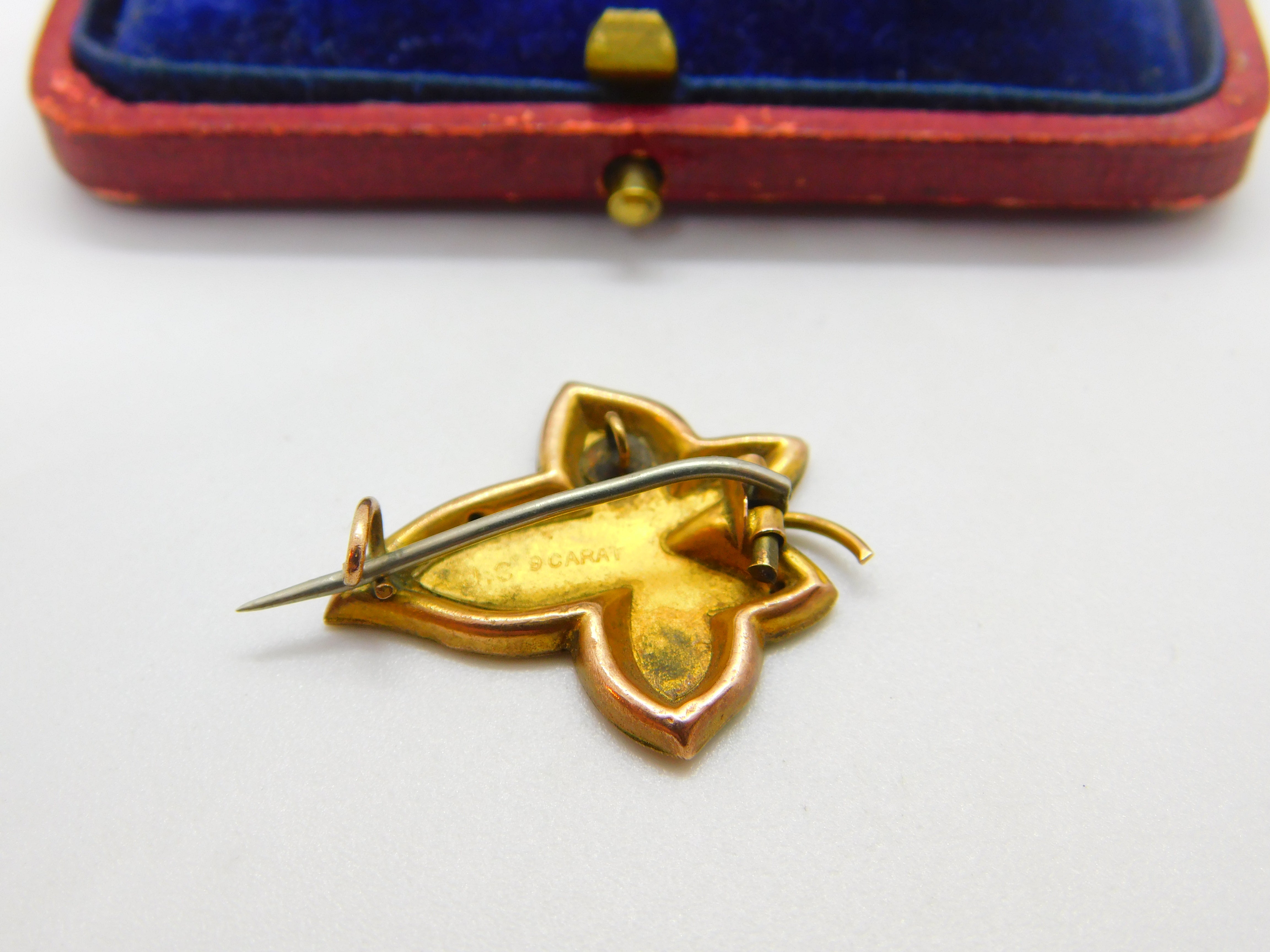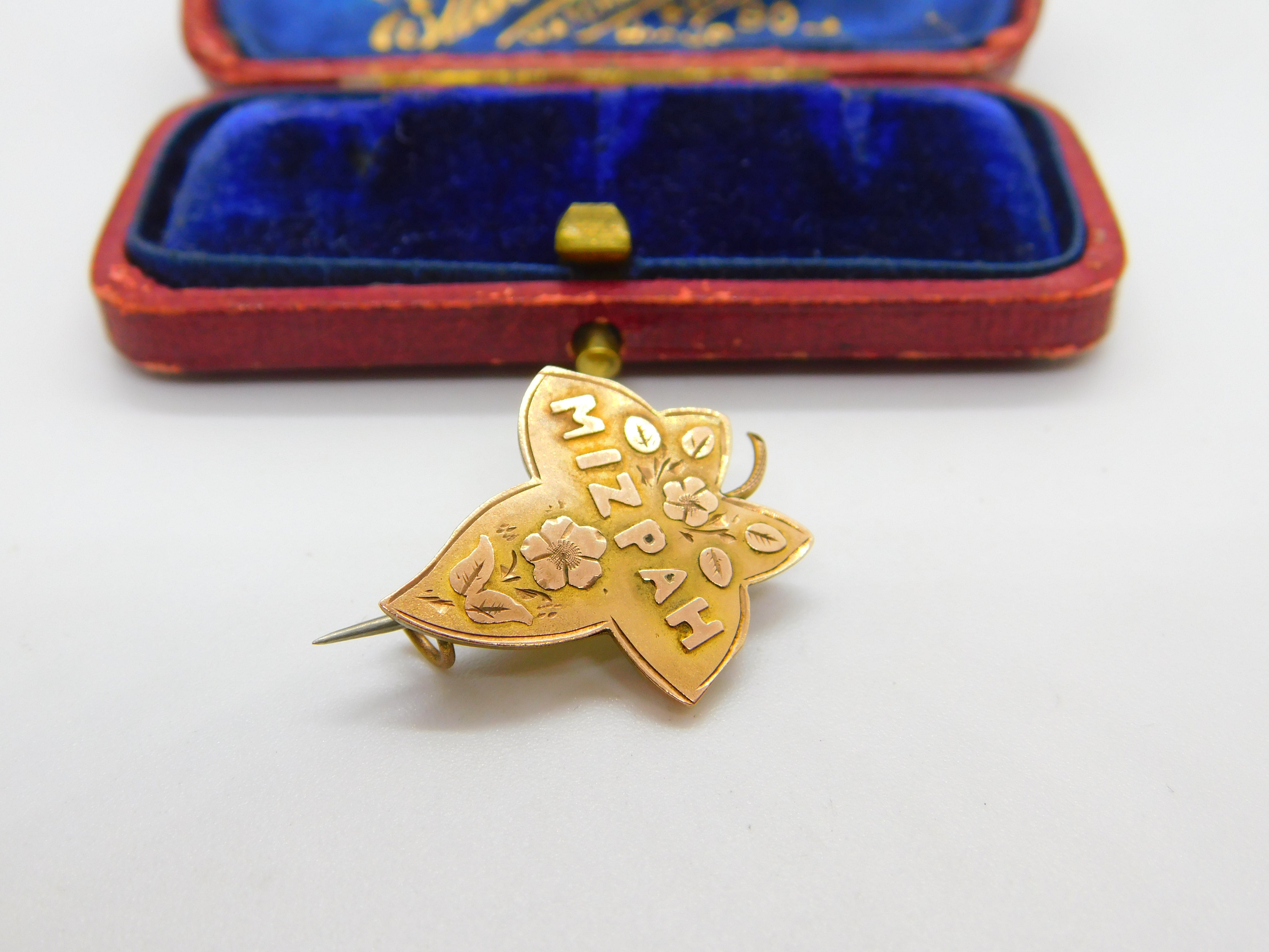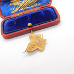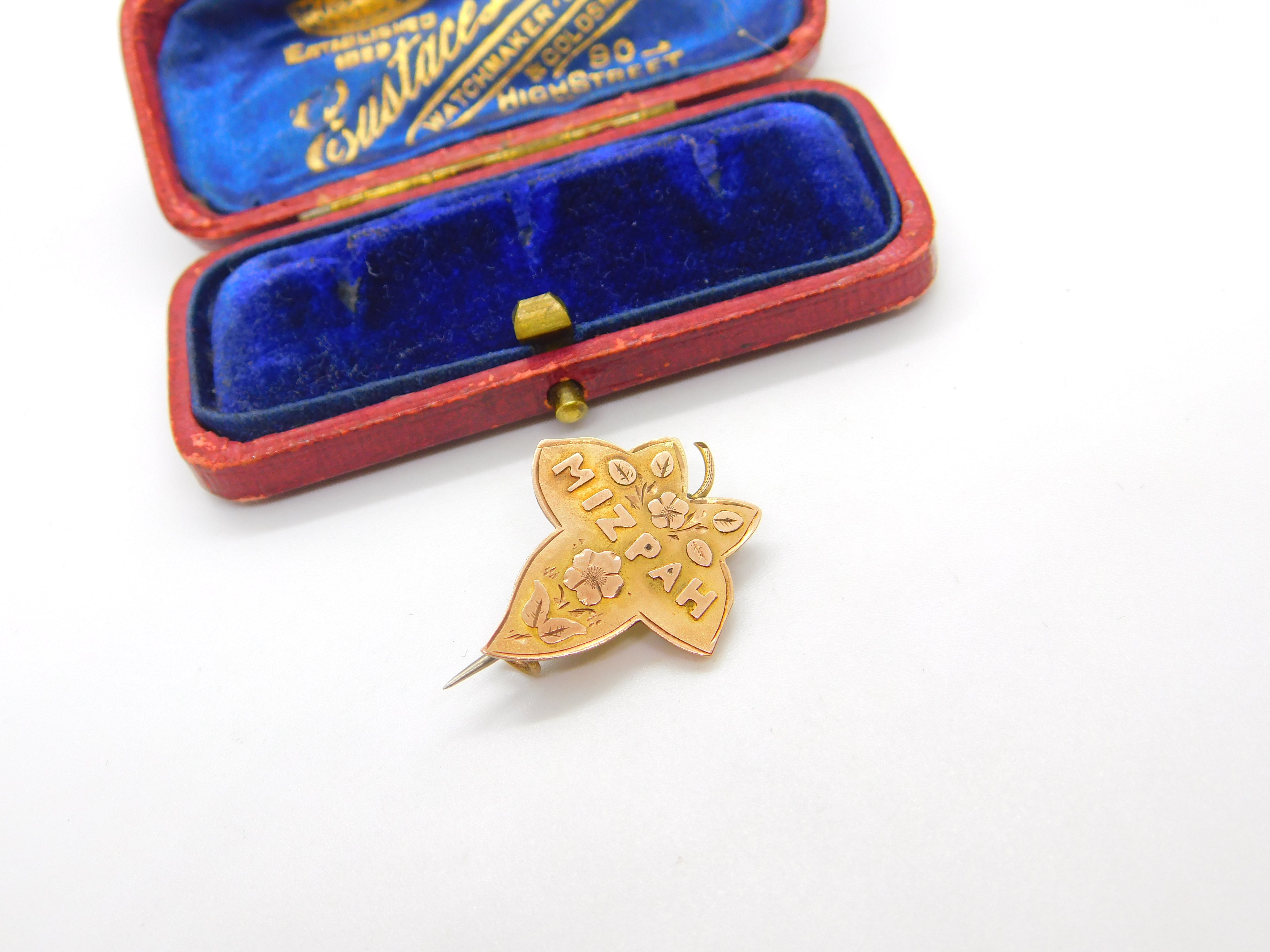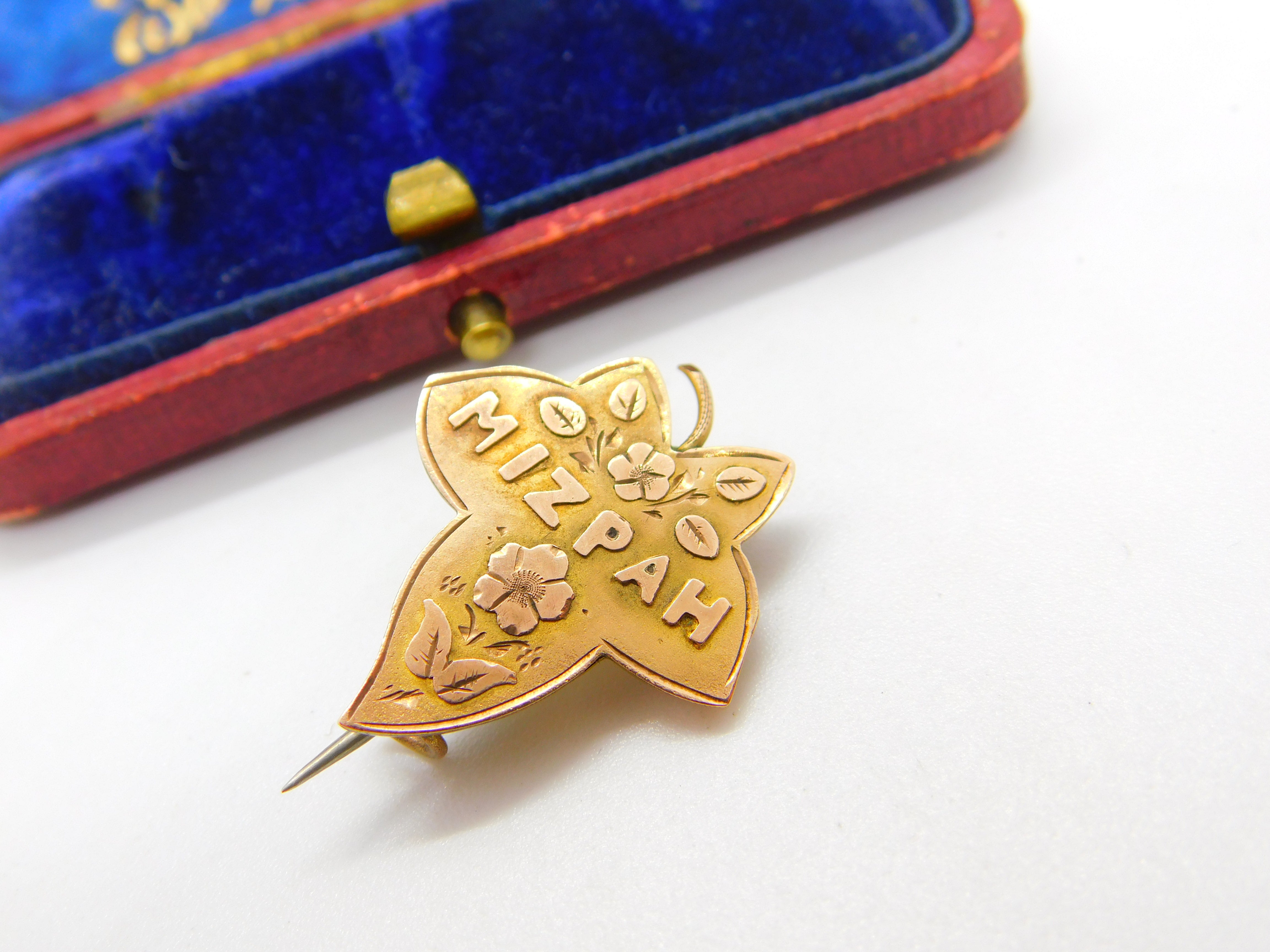 Edwardian 9ct Yellow Gold Mizpah Ivy Leaf Sweetheart Brooch Antique c1910