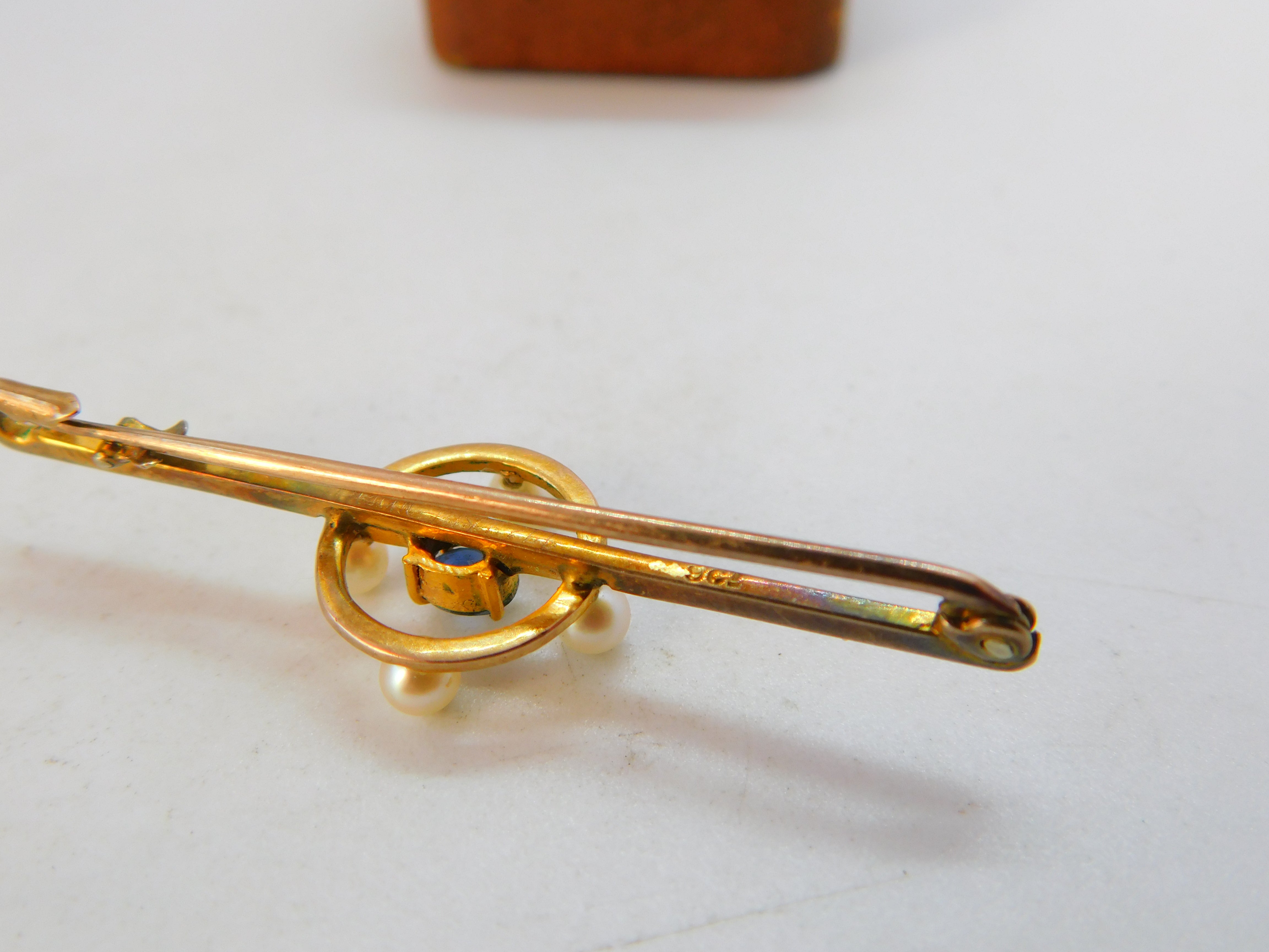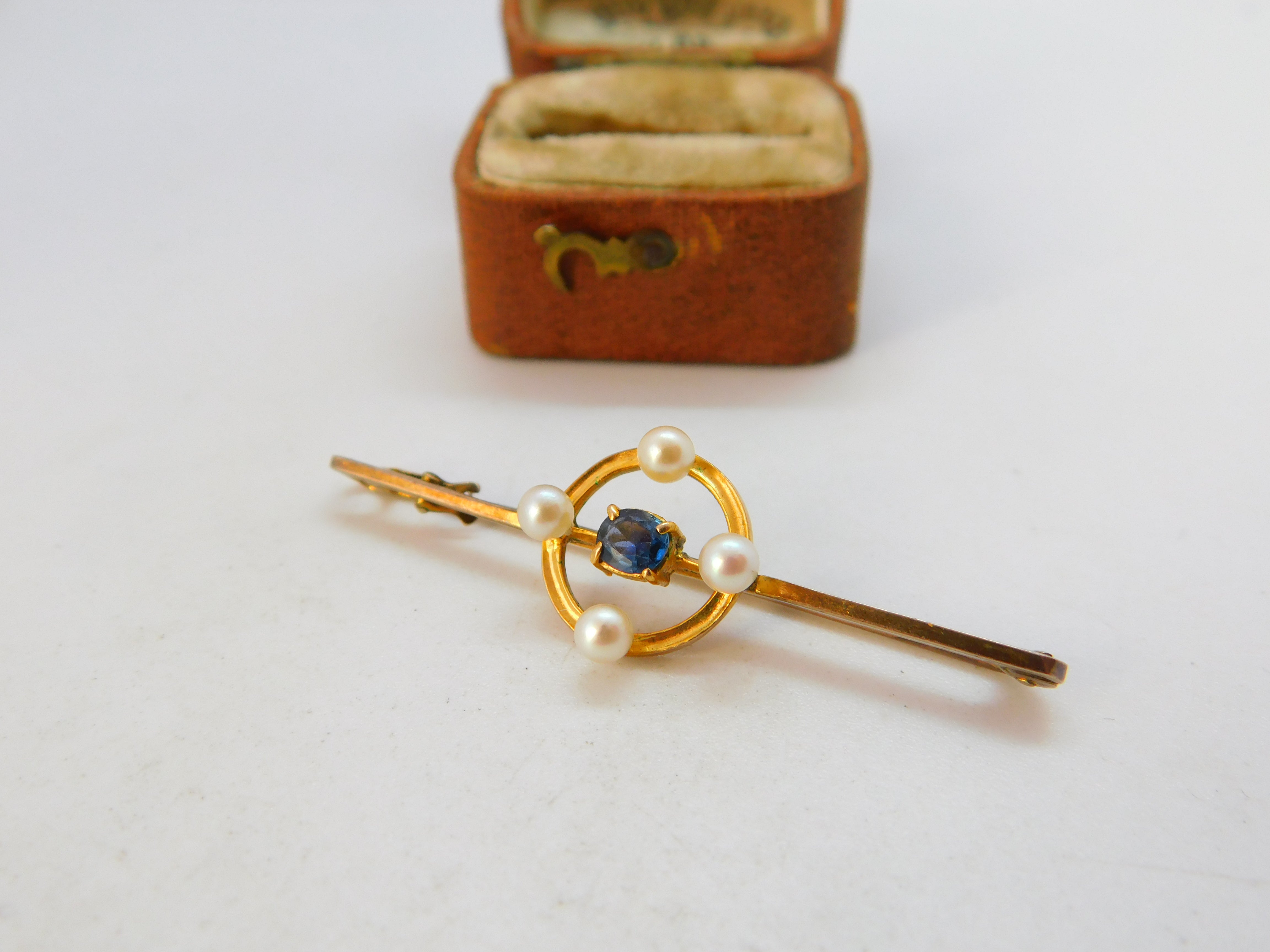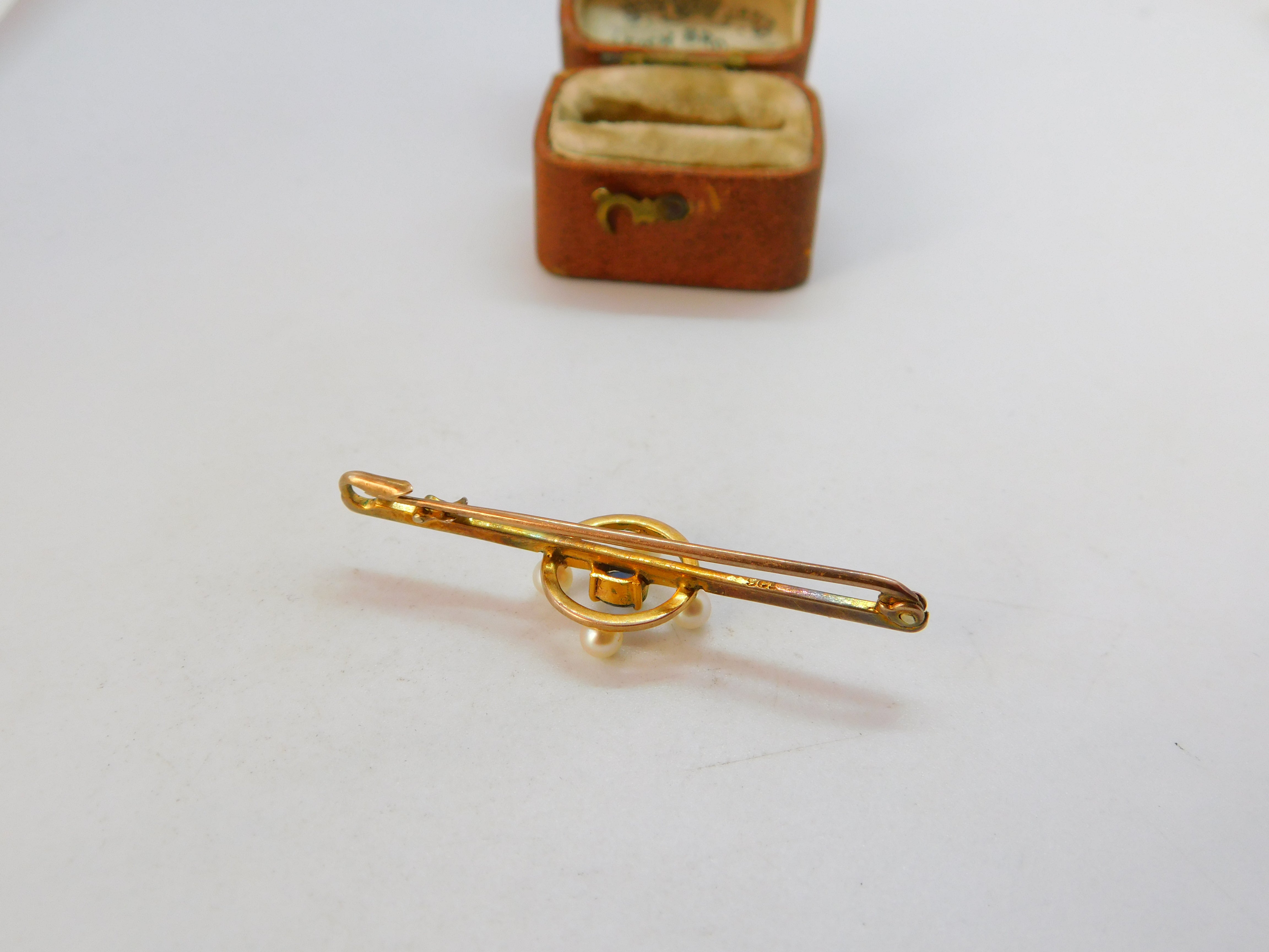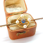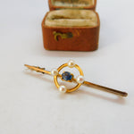 Edwardian 9ct Yellow Gold, Pearl & Sapphire Bar Brooch c1910 Antique