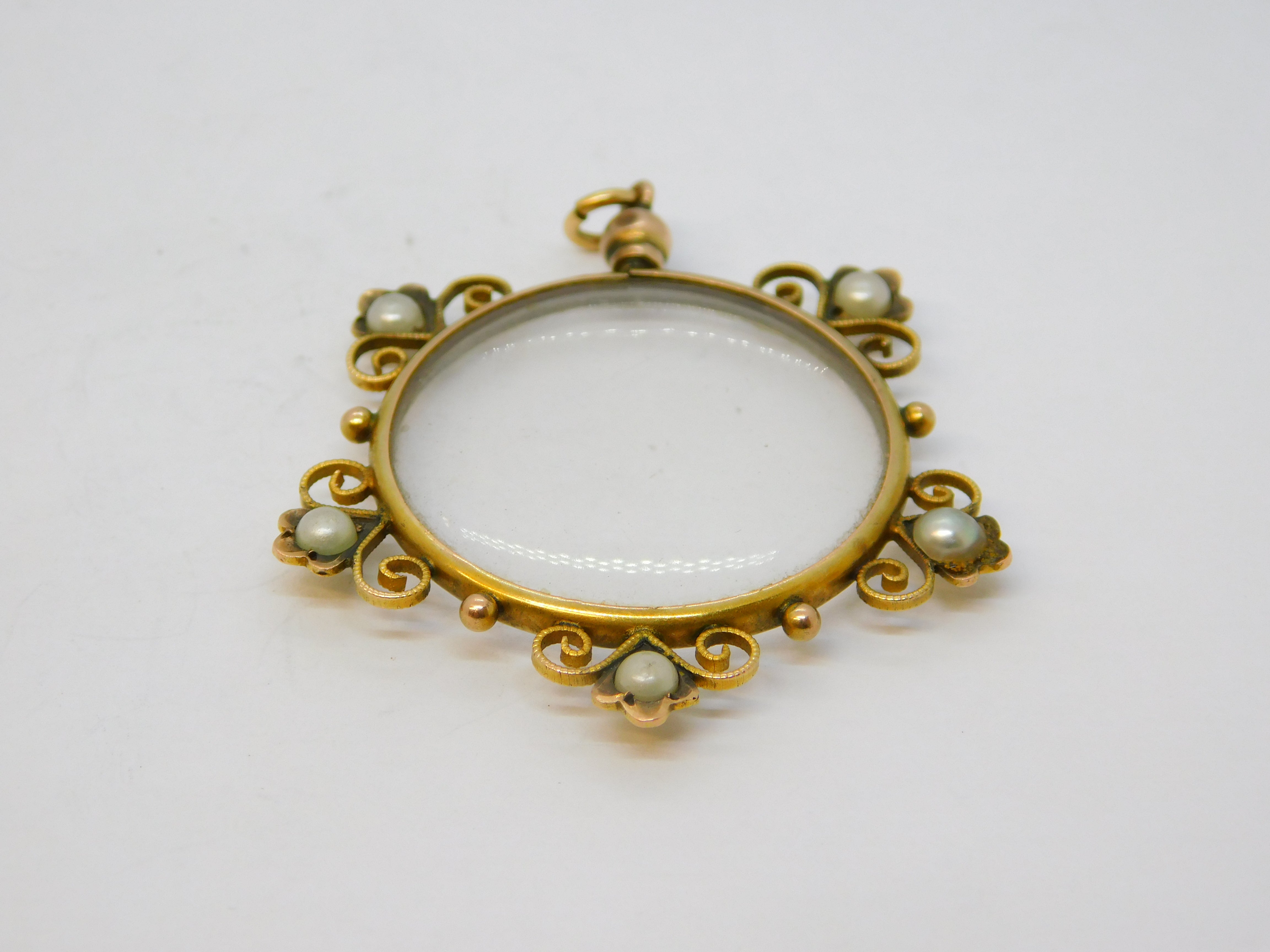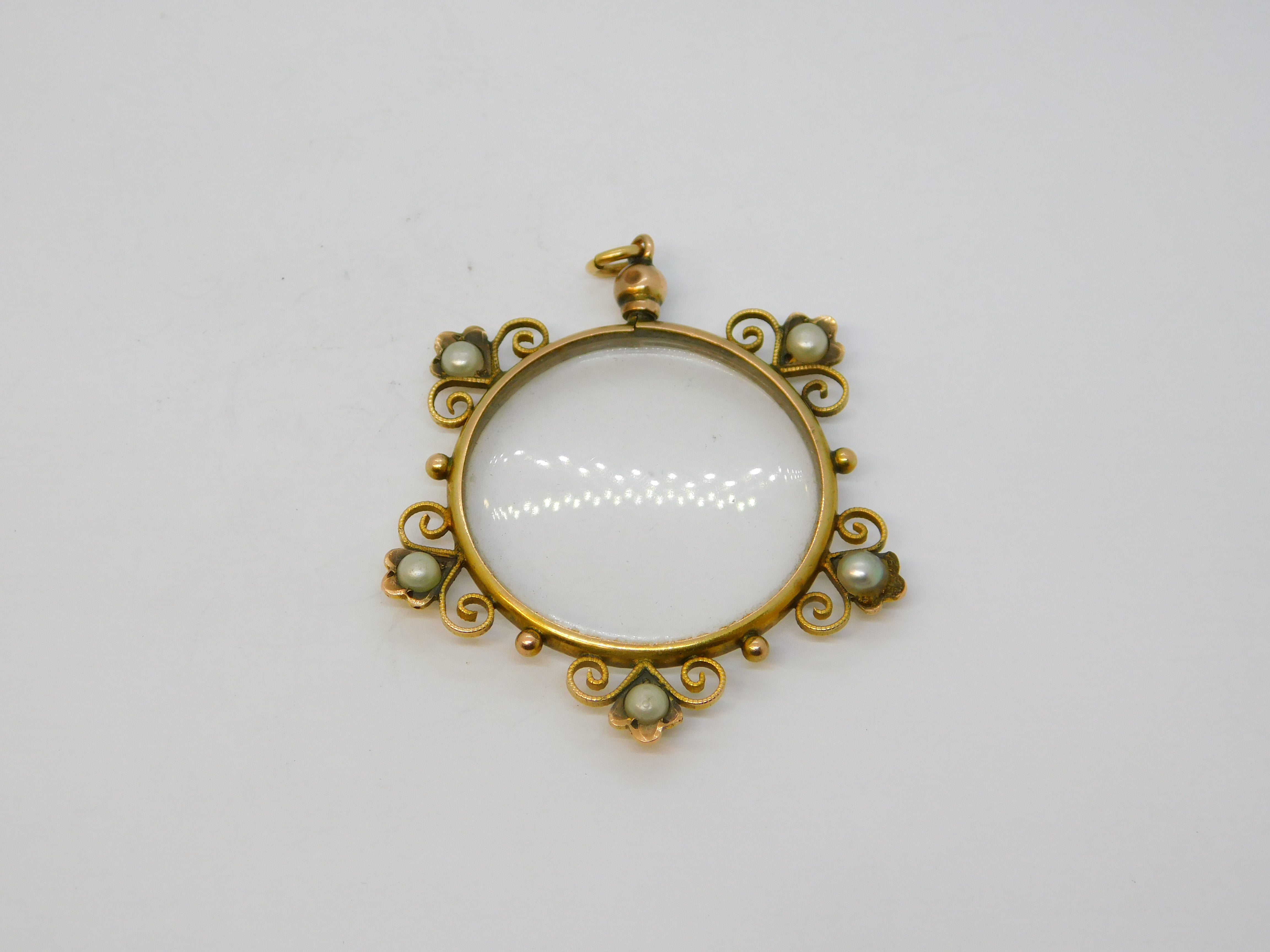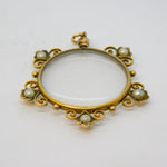 Edwardian 9ct Yellow Gold & Pearl Set Floral Portrait Locket Pendant Antique c1910