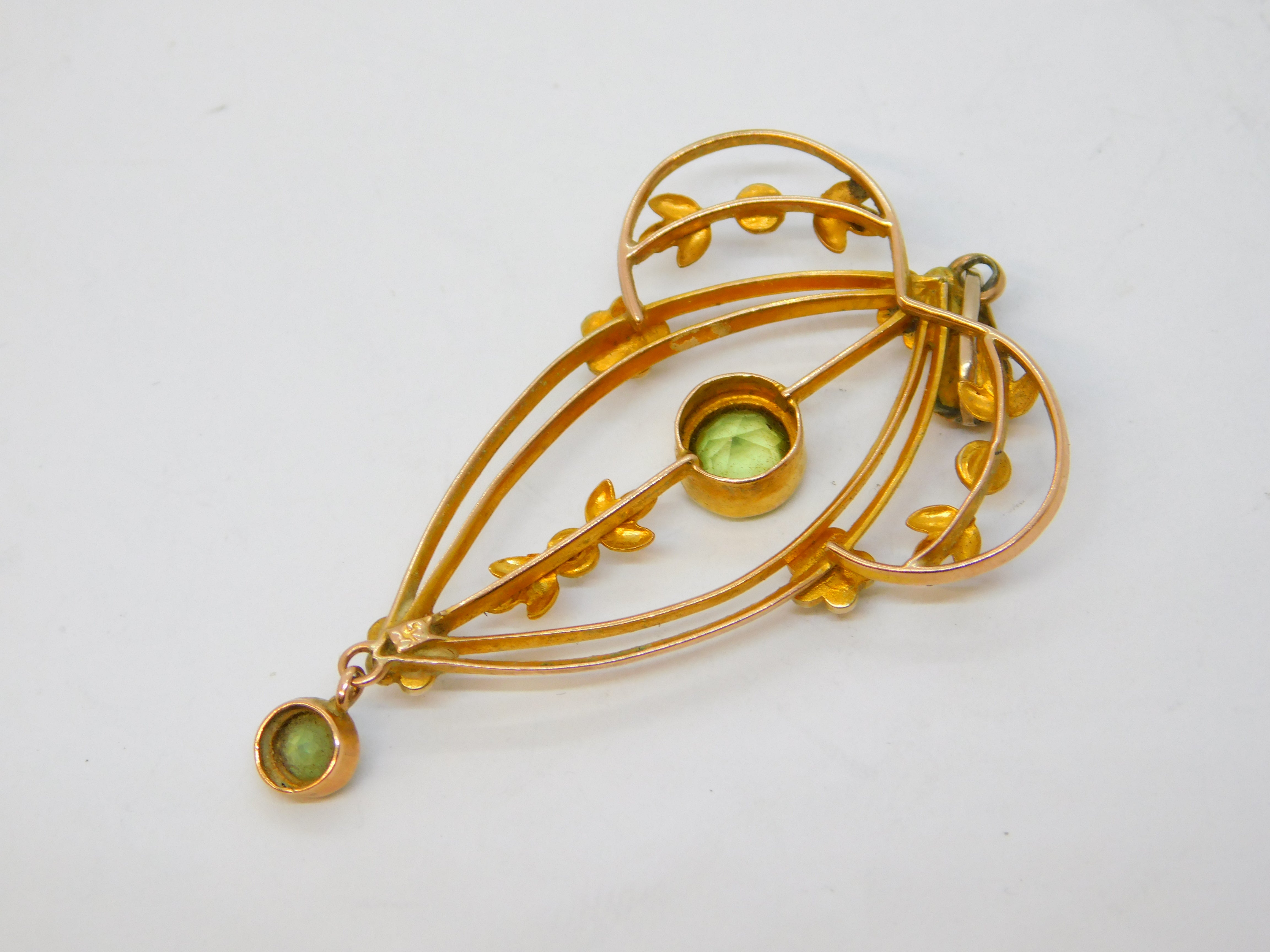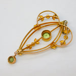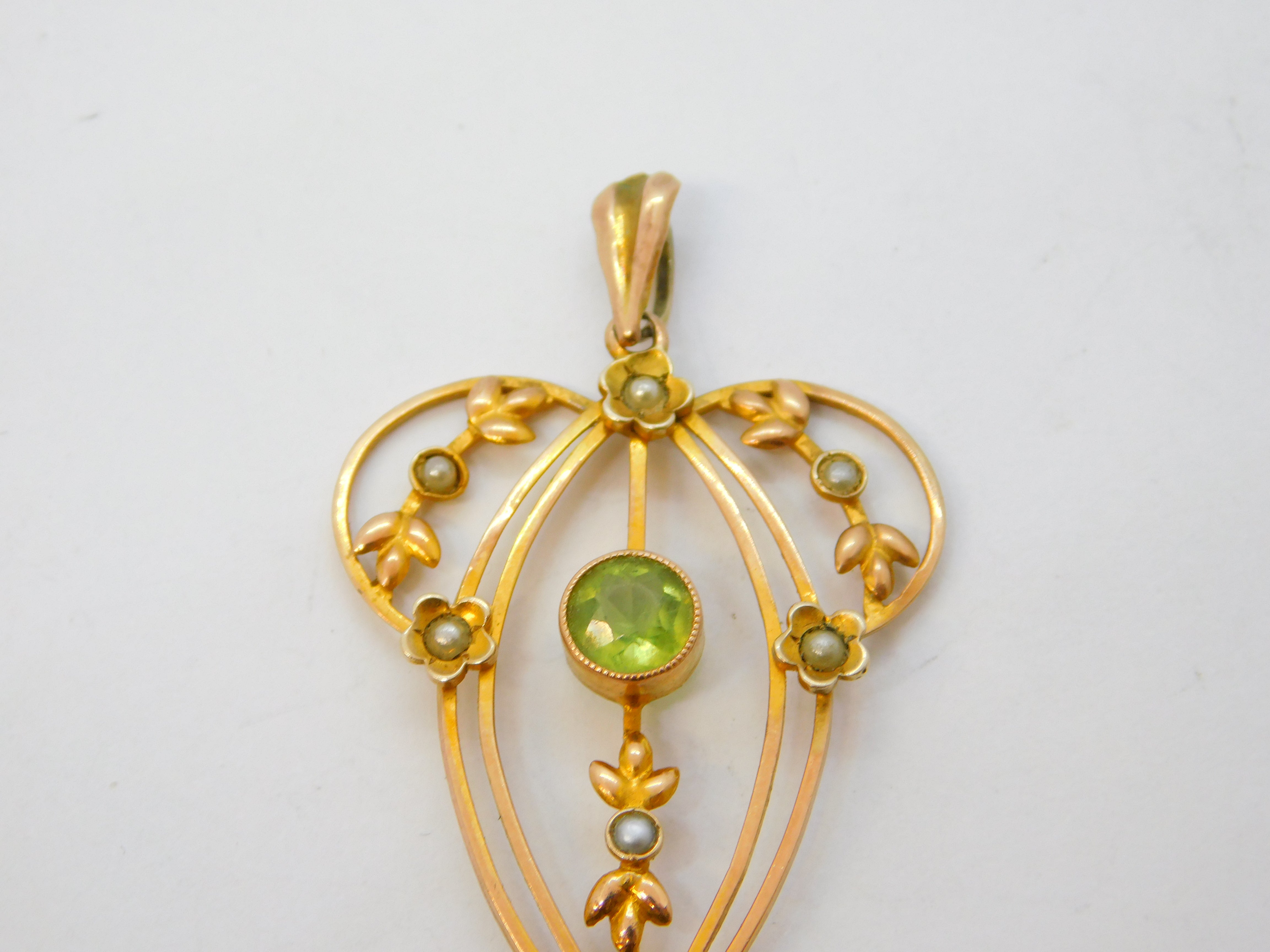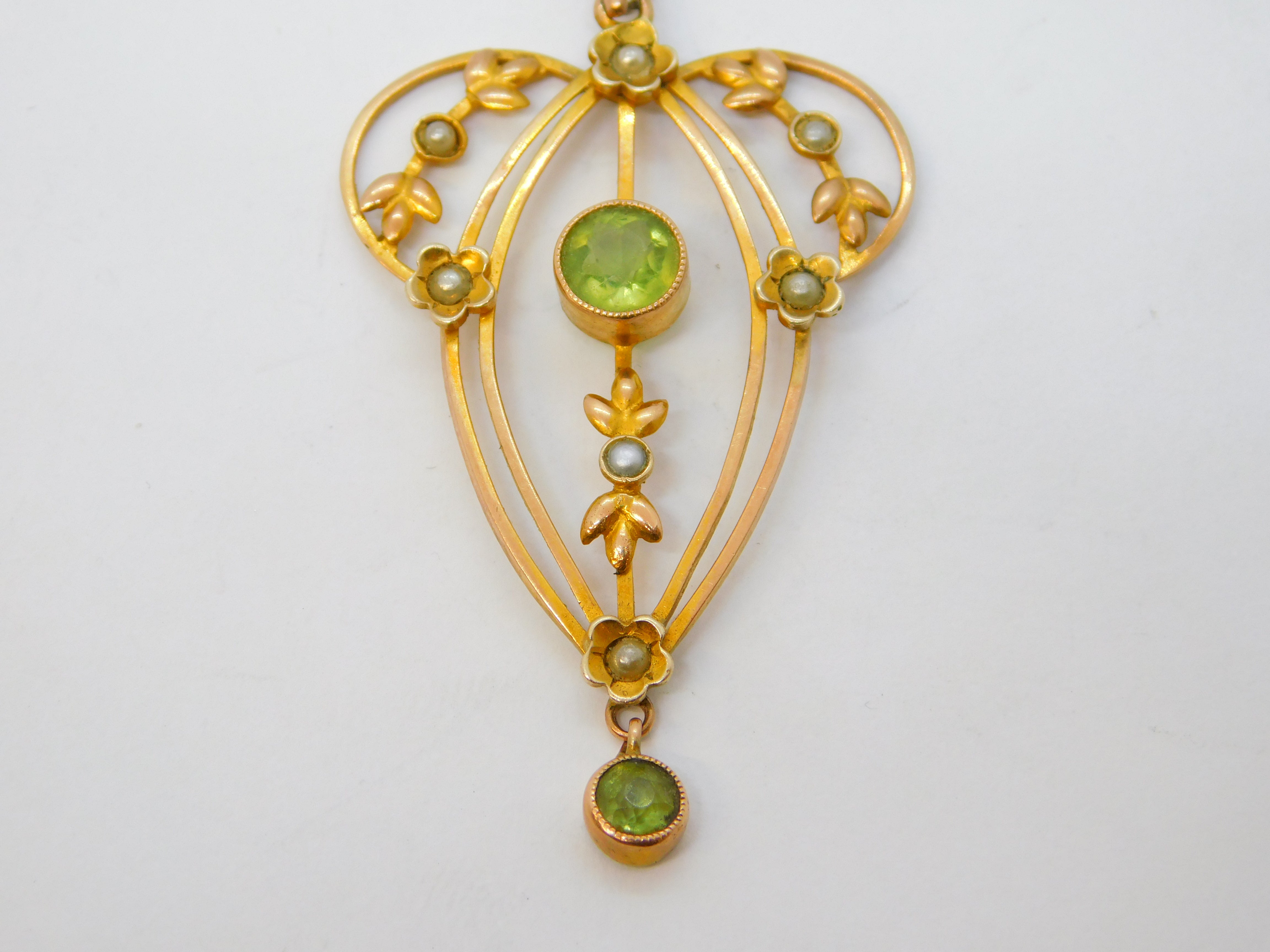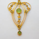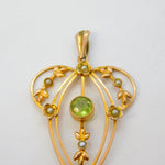 Edwardian 9ct Yellow Gold, Peridot & Seed Pearl Lavalier Pendant Antique c1910