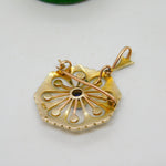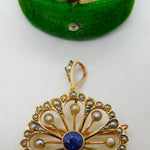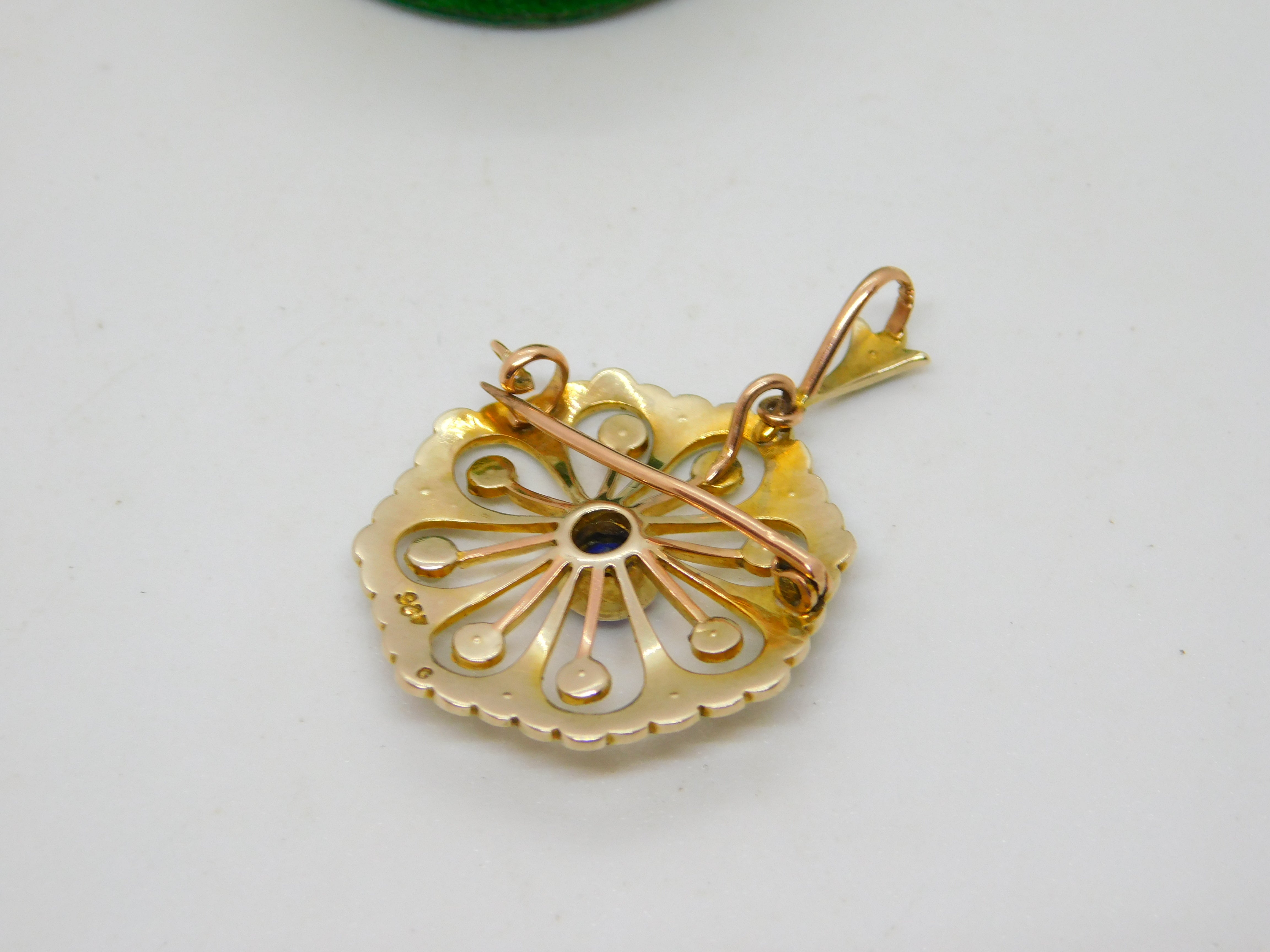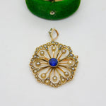 Edwardian 9ct Yellow Gold, Sapphire & Seed Pearl Floral Pendant Antique c1910