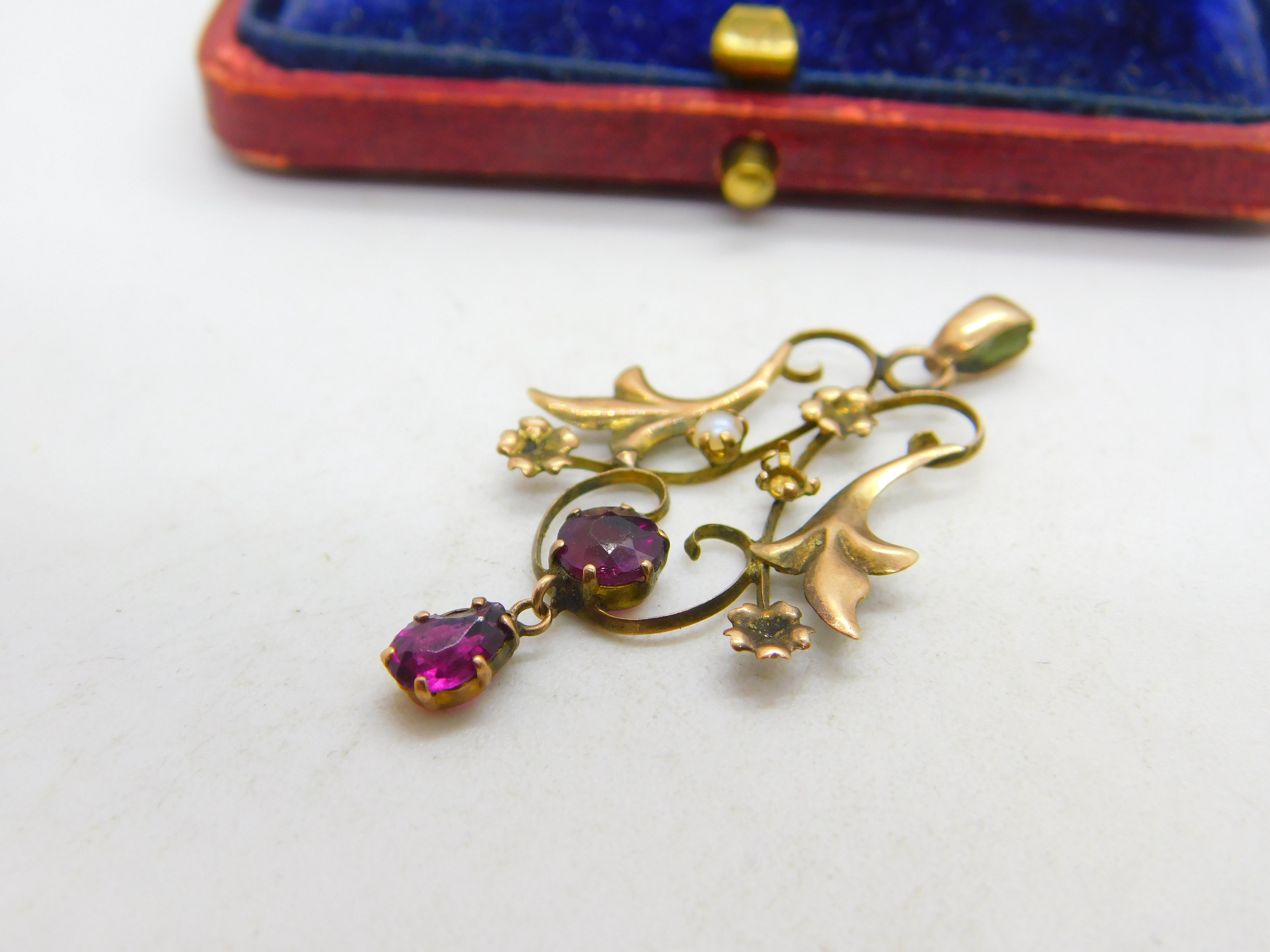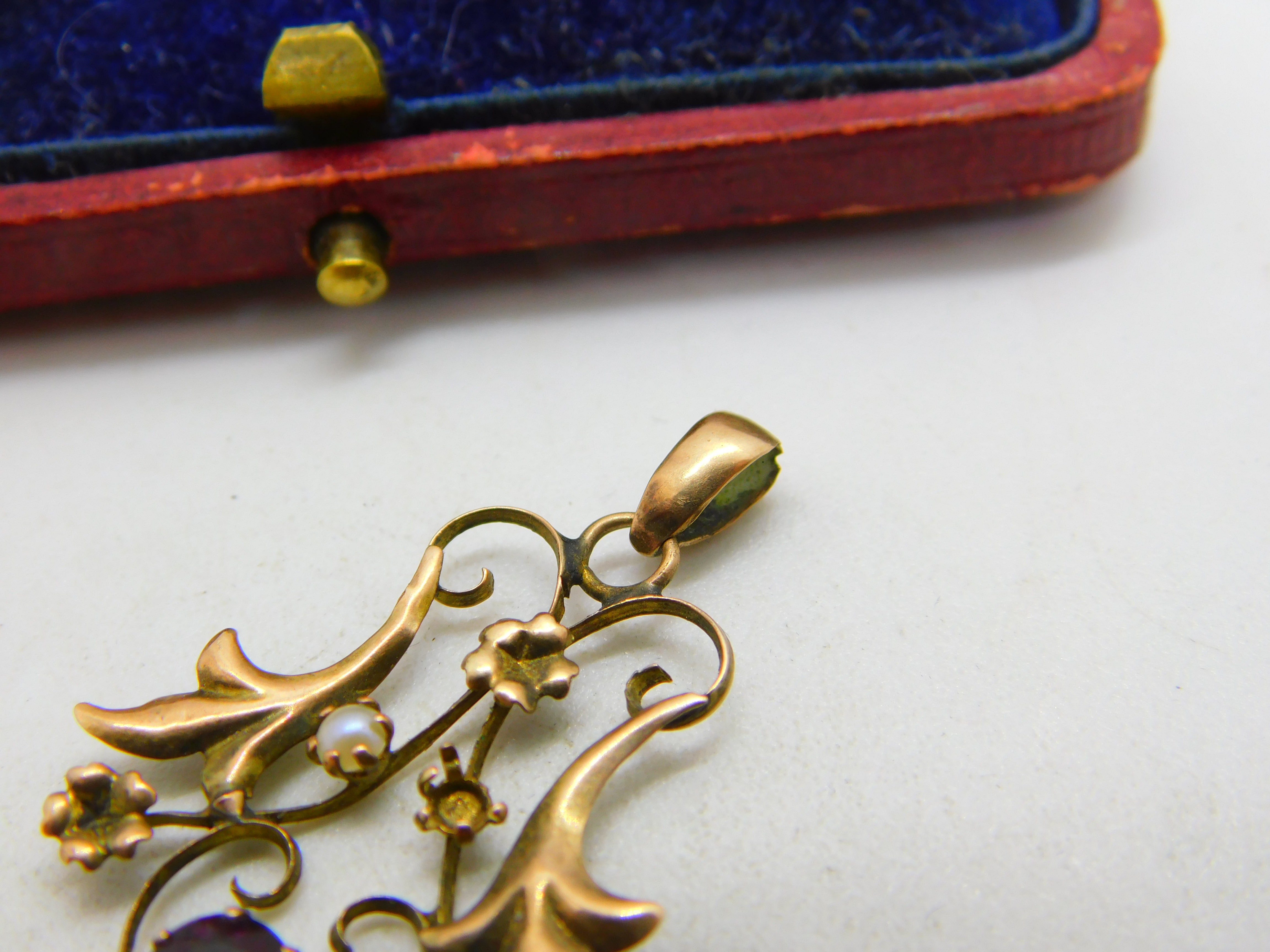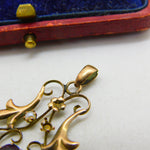Edwardian 9ct Yellow Gold, Seed Pearl & Amethyst Lavalier Drop Pendant c1910