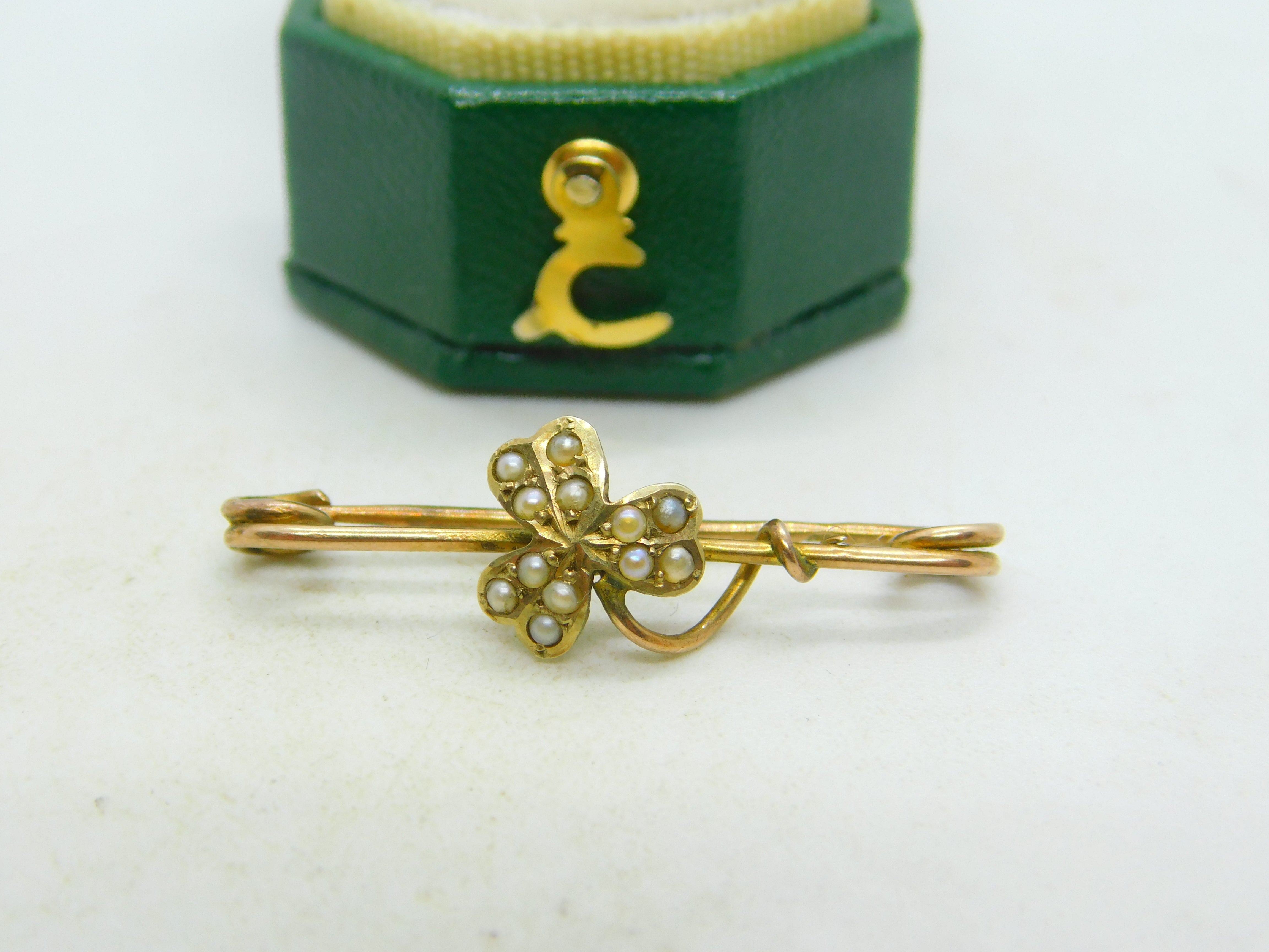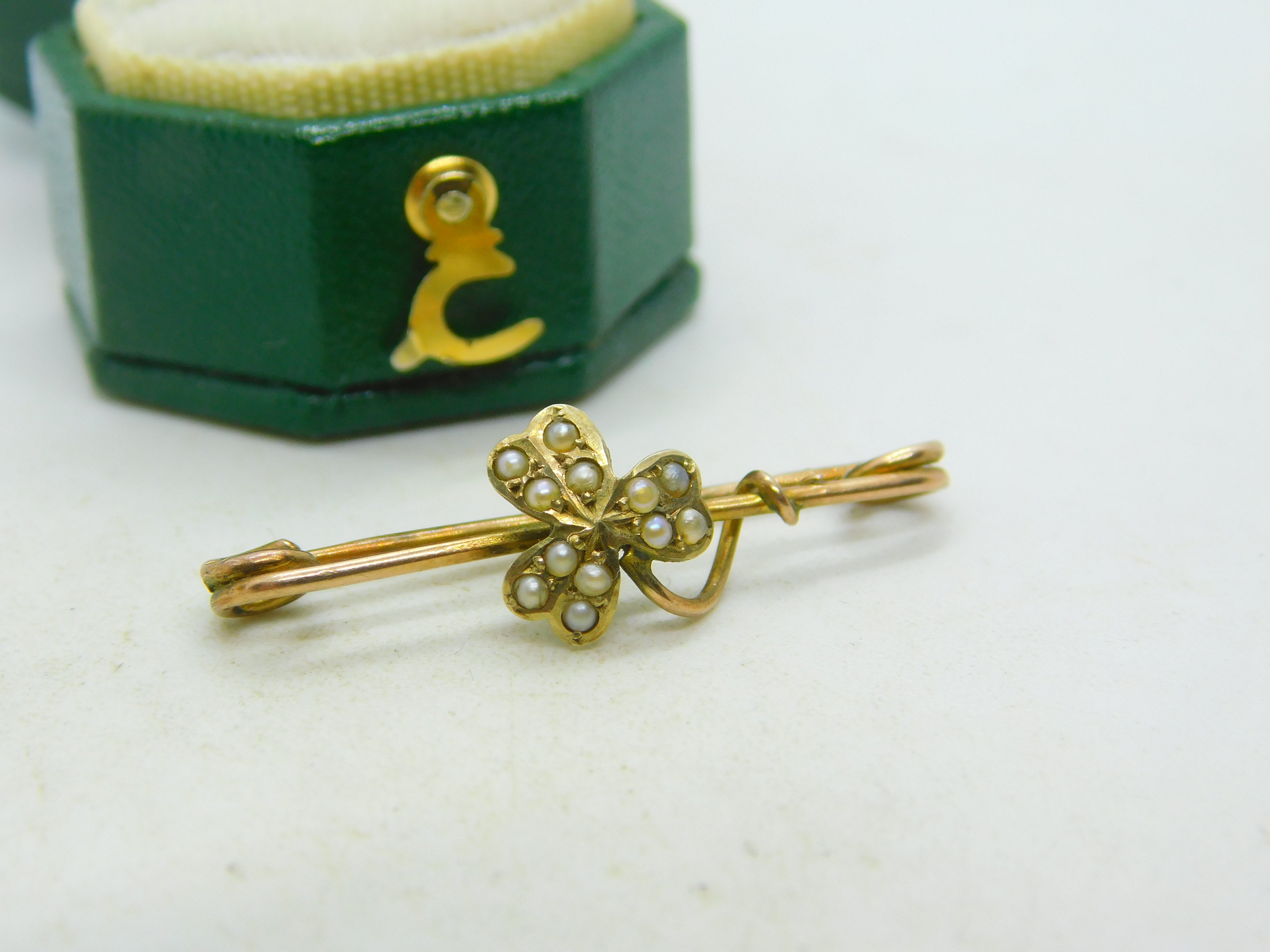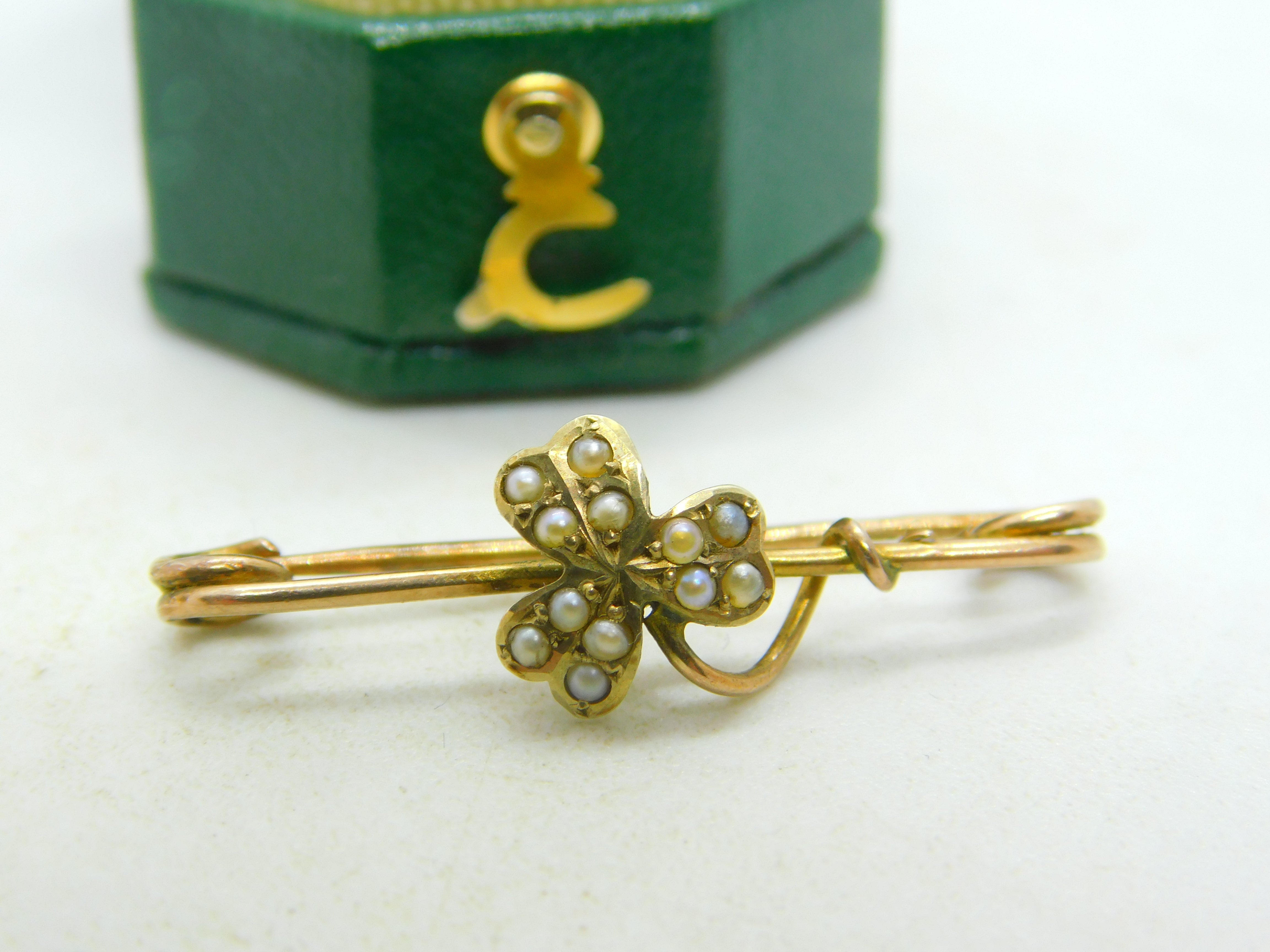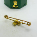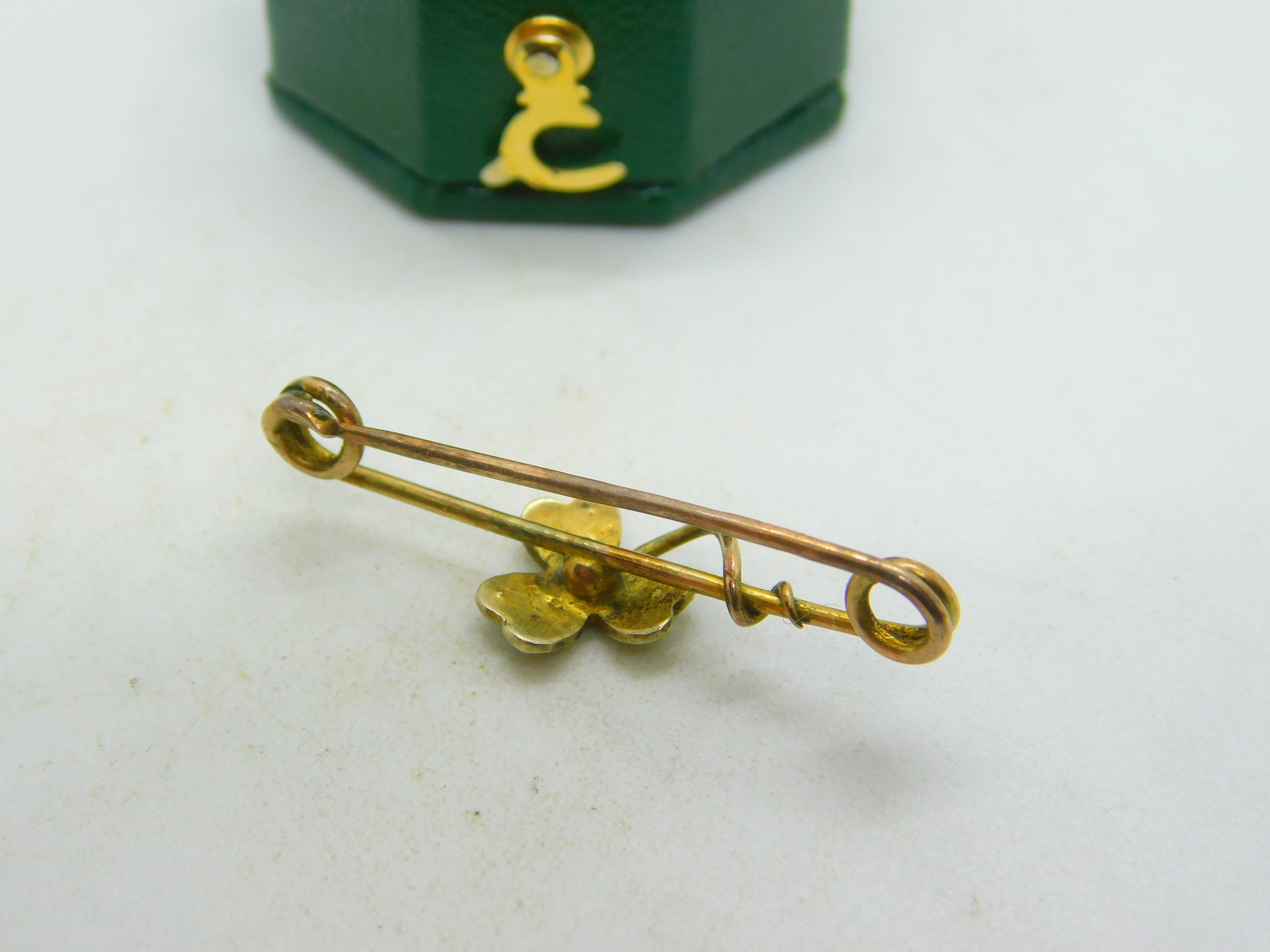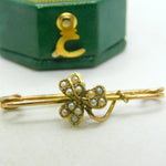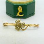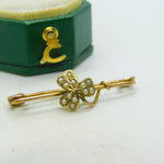 Edwardian 9ct Yellow Gold & Seed Pearl Shamrock Brooch Antique 1908 Birmingham