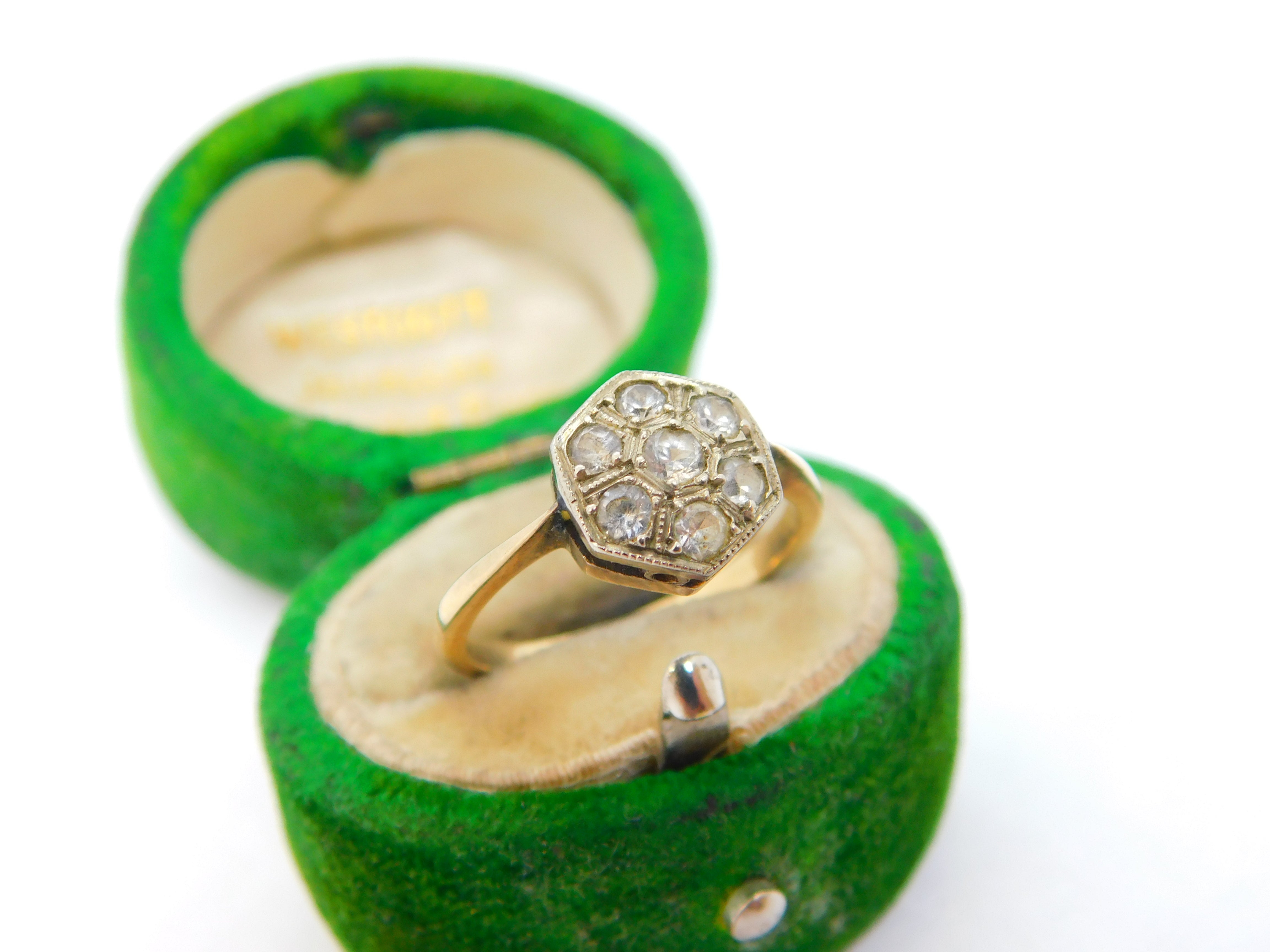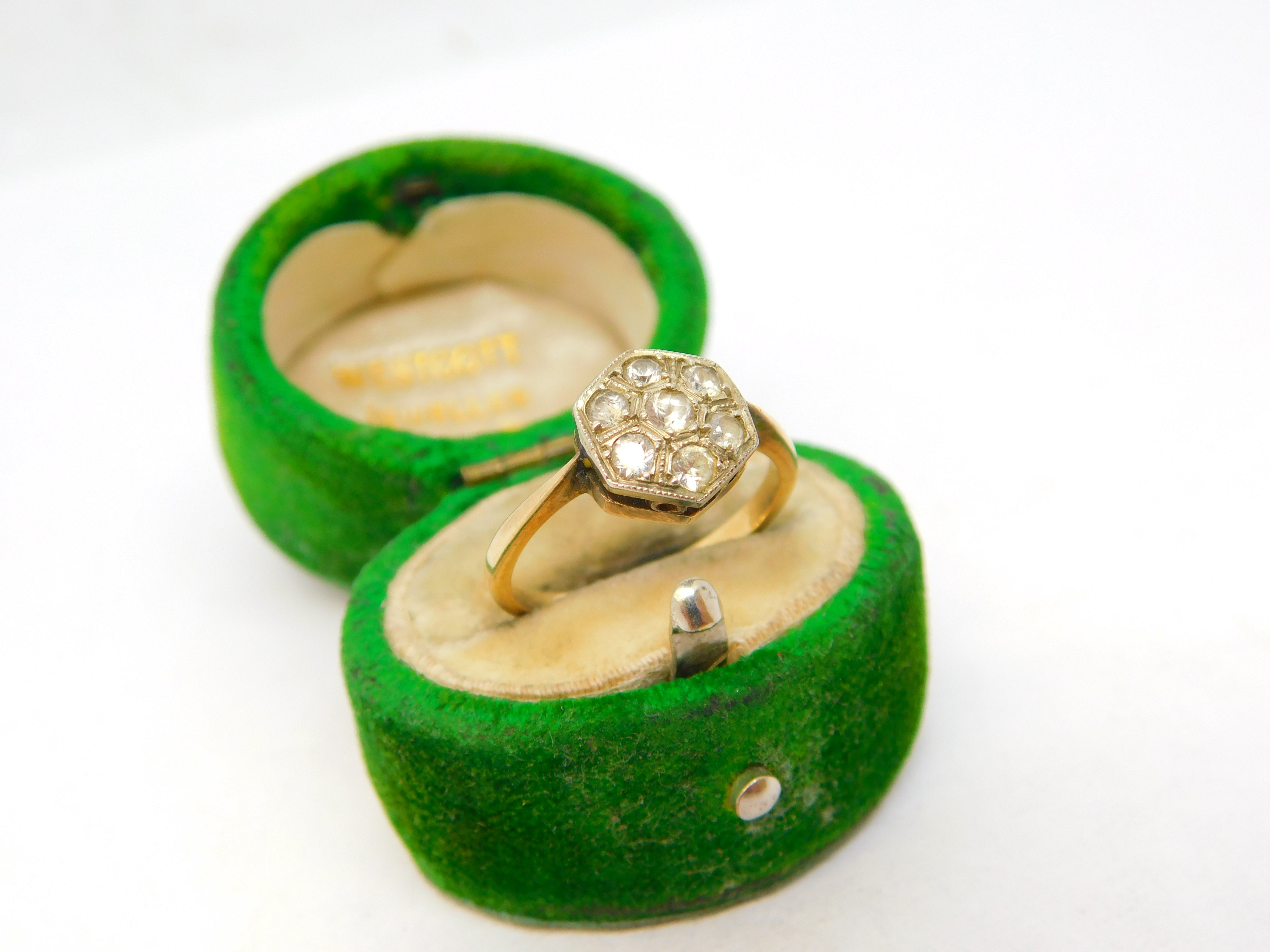 Details: A fantastic and wonderfully designed antique Edwardian 9ct yellow gold & spinel set floral cluster ring hallmarked to the interior c1910. This is a wonderful item that would make a perfect gift or addition to any collection. The BOX pictured is for PRESENTATION ONLY and is NOT included in the listings but used to frame the pictures unless specifically stated otherwise.