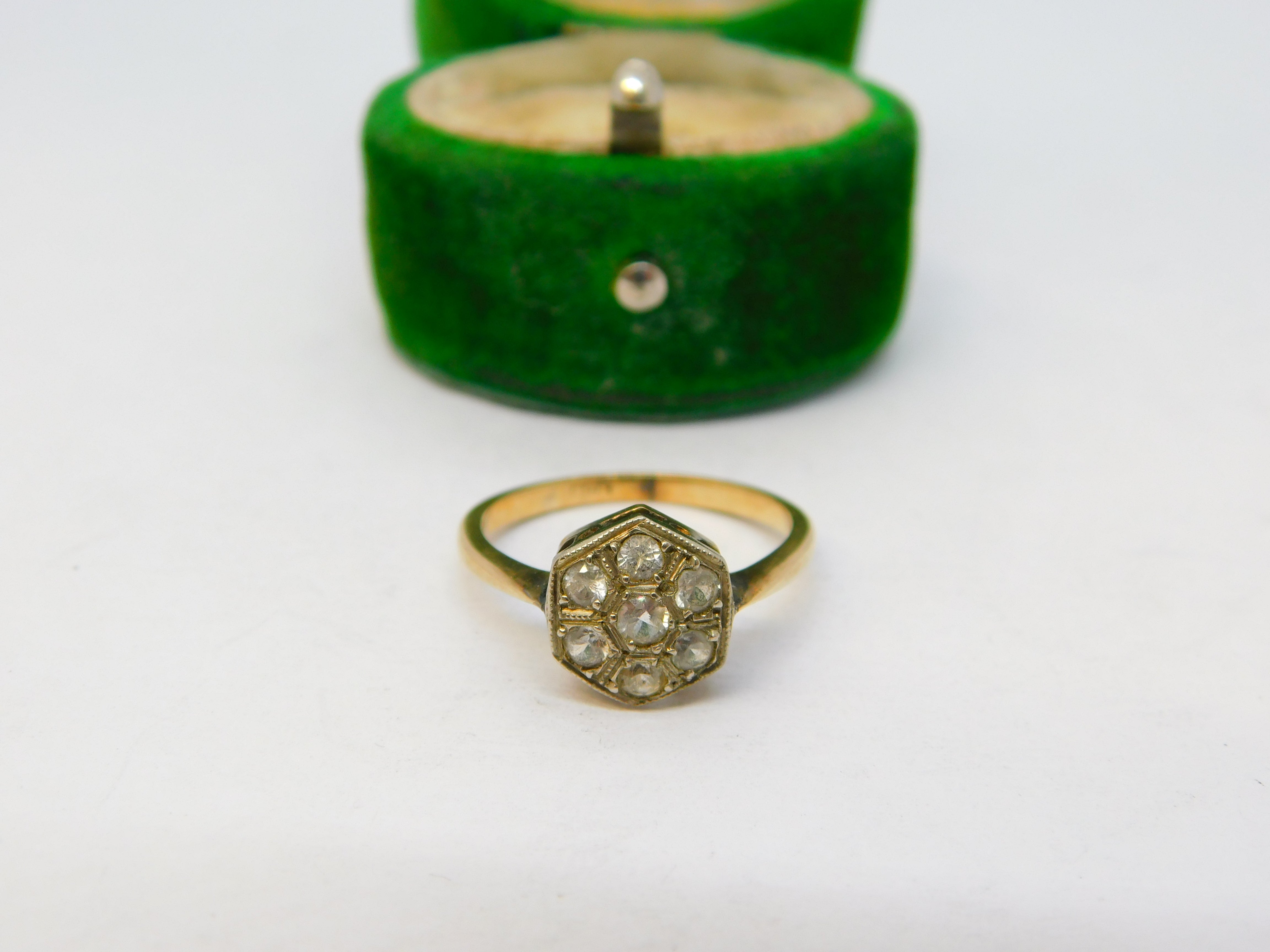 Edwardian 9ct Yellow Gold & Spinel Set Floral Dress Ring Antique c1910