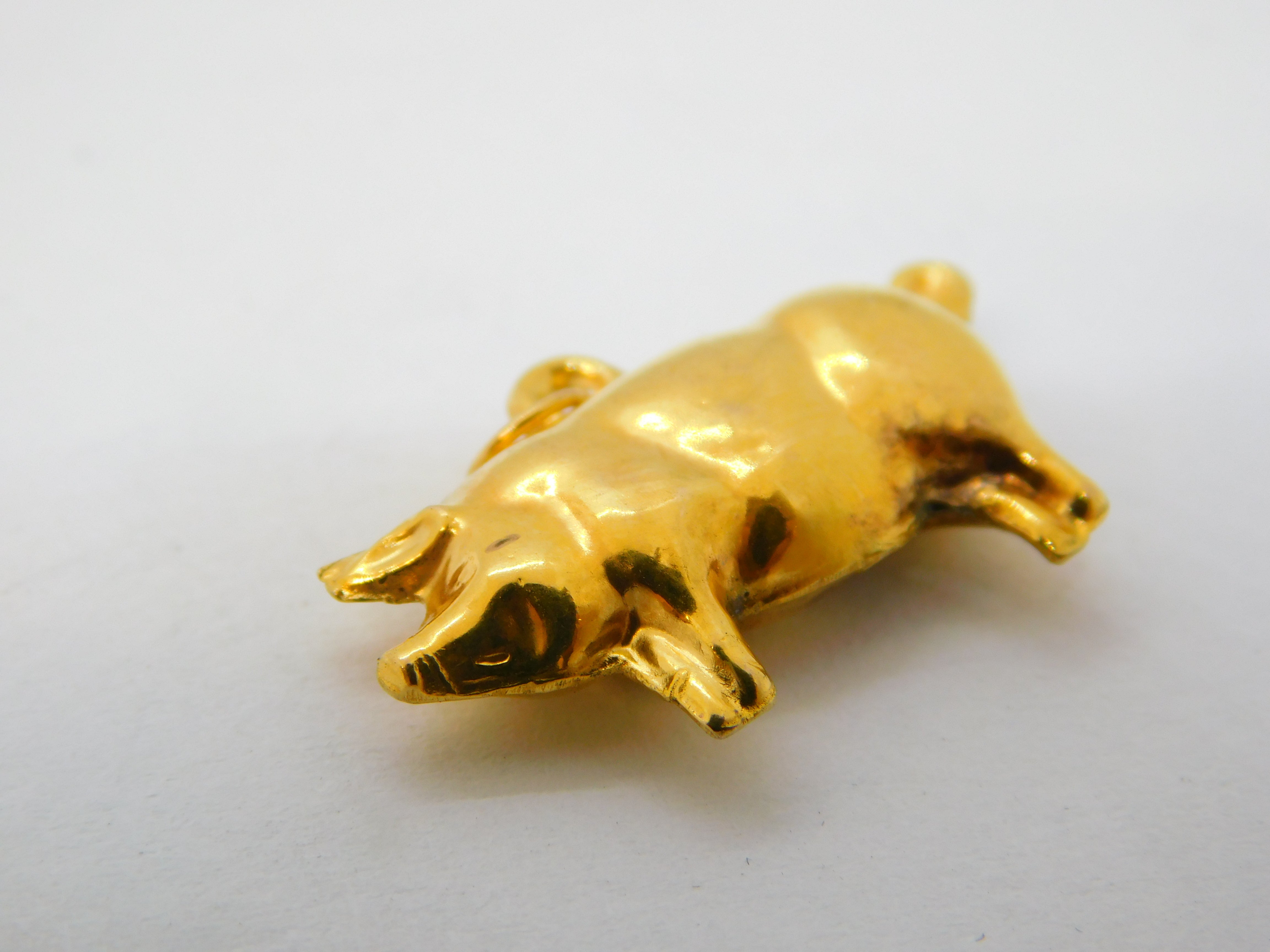 Details: A fantastic and wonderfully designed antique Edwardian 9ct yellow gold puffy standing pig charm pendant hallmarked to the bottom edge c1910. This is a wonderful item that would make a perfect gift or addition to any collection.