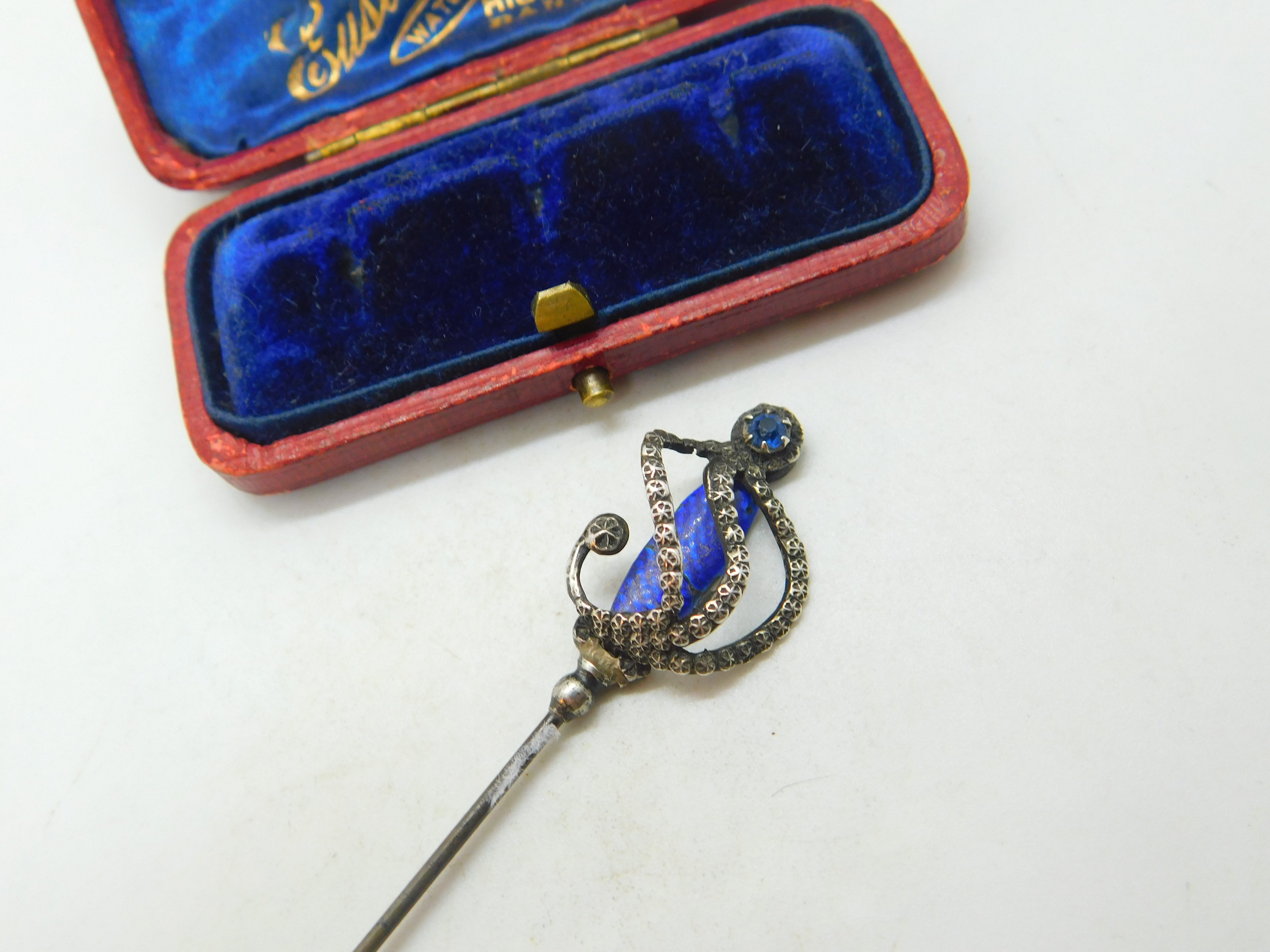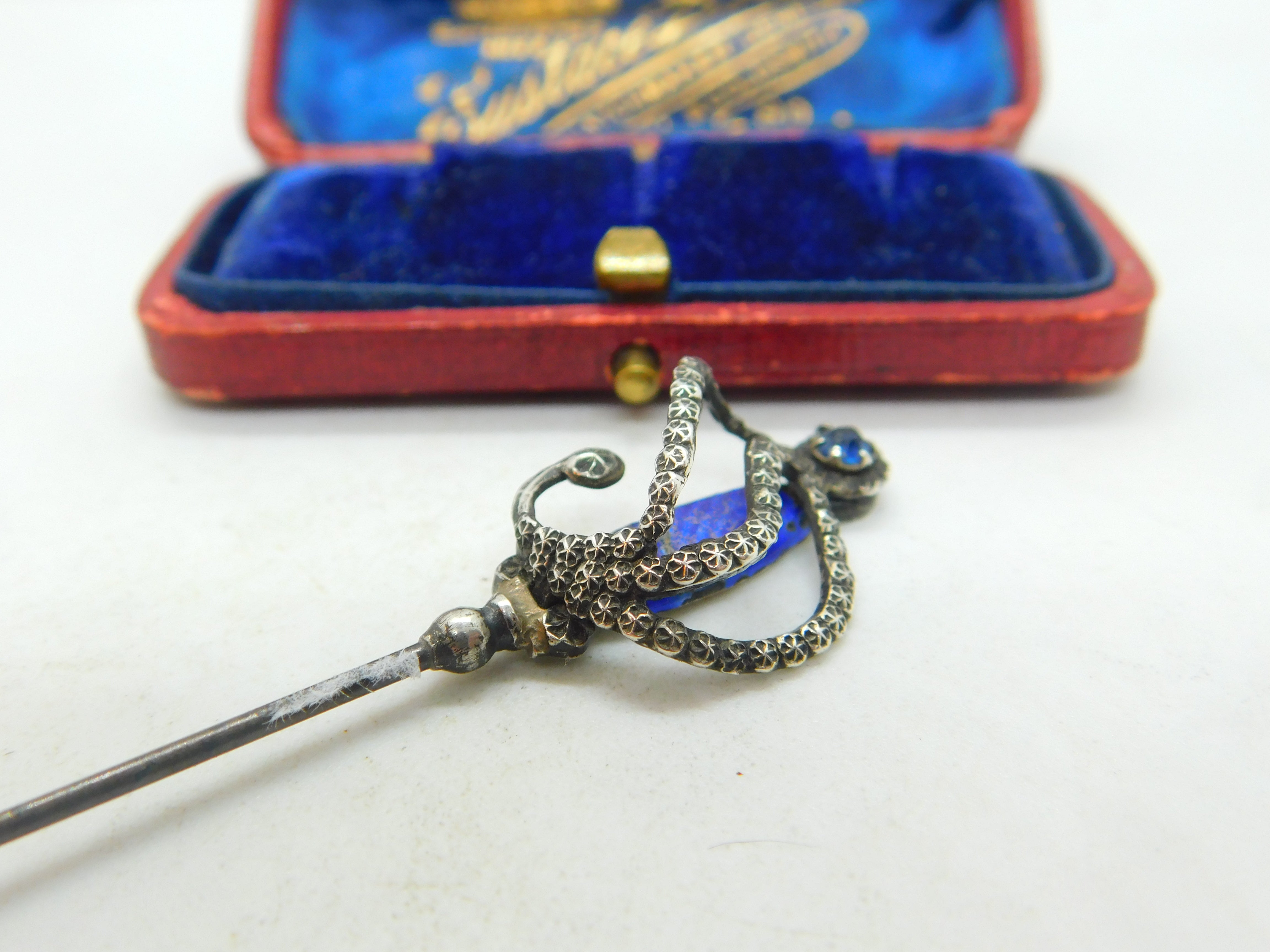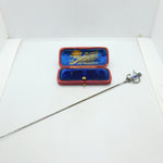 Details: A fantastic and wonderfully designed antique Edwardian sterling silver hat pin in the form of a sword with blue paste to the top and blue enamel to the handle hallmarked Chester 1907 by Charles Horner to the reverse. This is a wonderful item that would make a perfect gift or addition to any collection. The BOX pictured is for PRESENTATION ONLY and is NOT included in the listings but used to frame the pictures unless specifically stated otherwise.