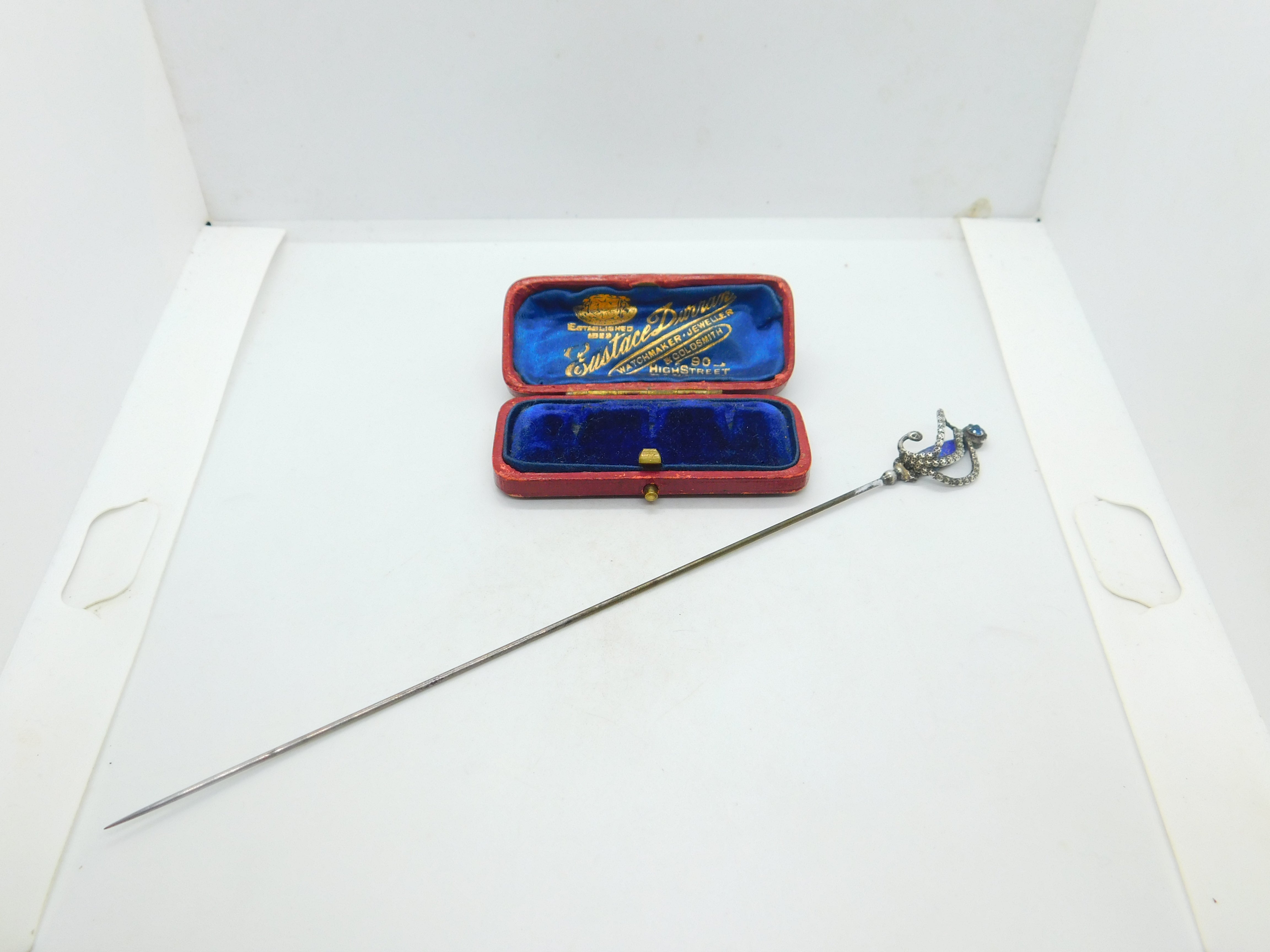 Edwardian Charles Horner Sword Form Sterling Silver & Enamel Hat Pin 1907 Antique Chester