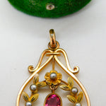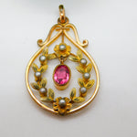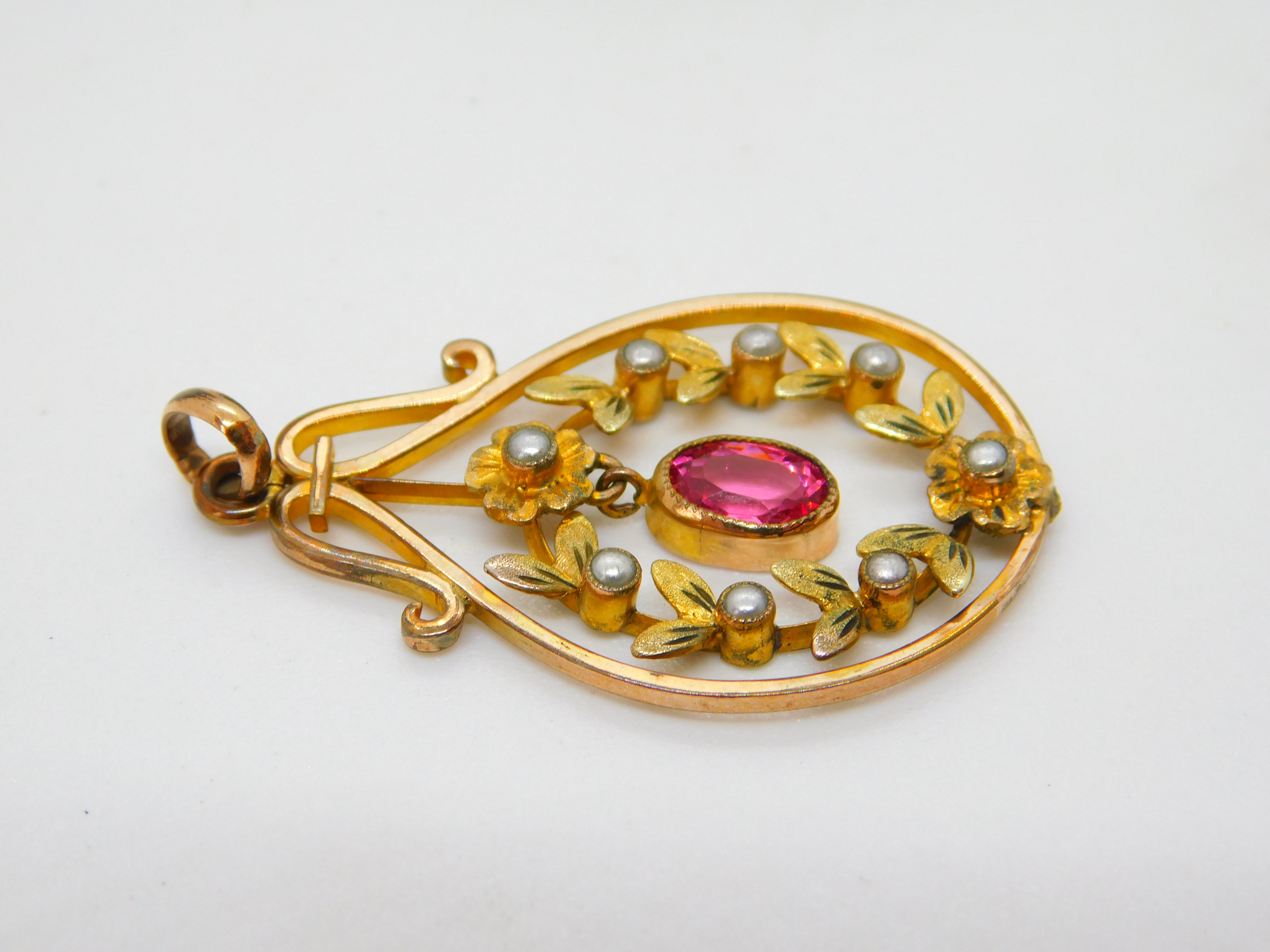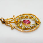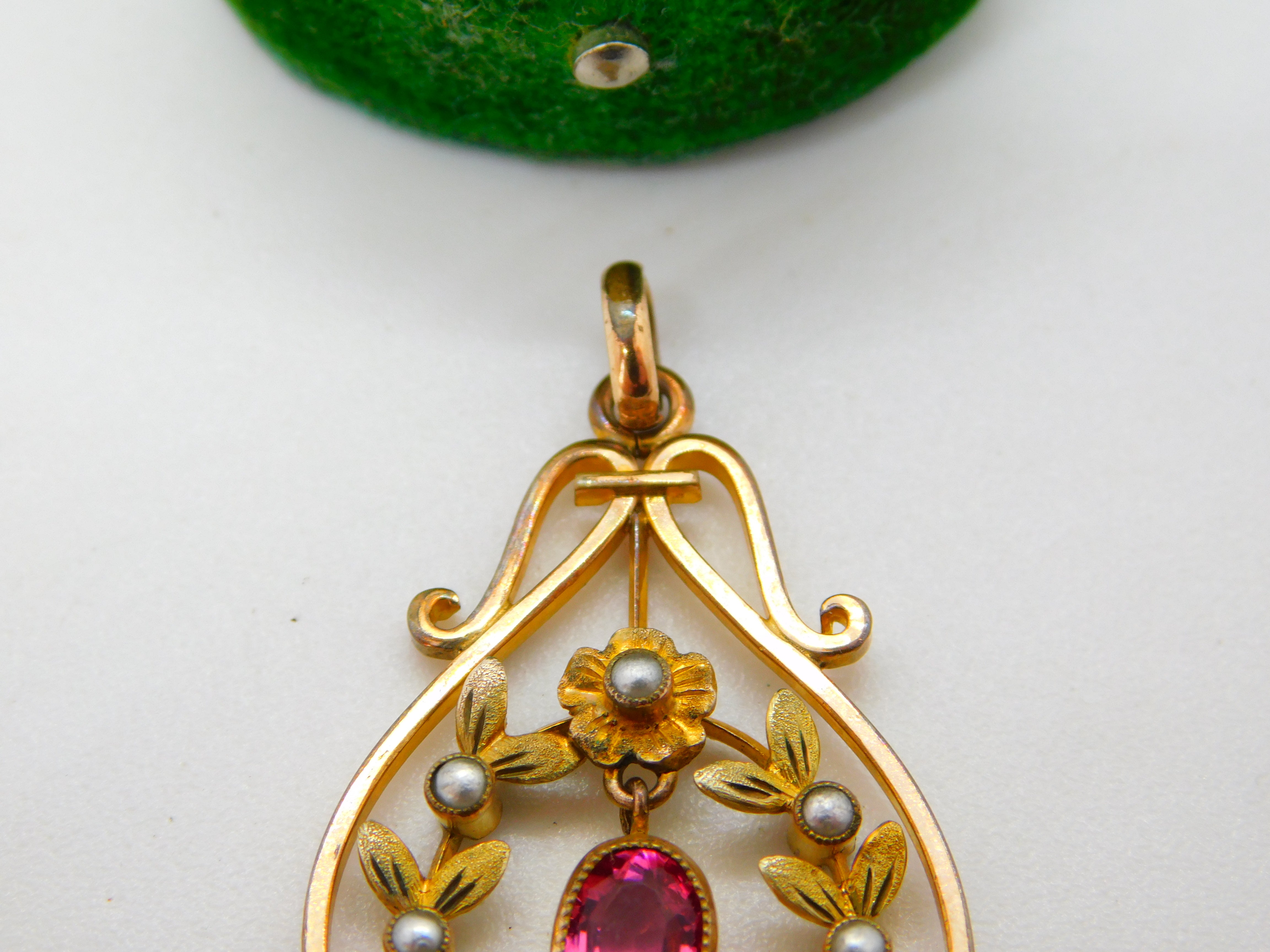 Details: A fantastic and wonderfully designed antique Edwardian rolled gold lavalier drop pendant set with seed pearls & pink paste stones c1910. This is a wonderful item that would make a perfect gift or addition to any collection. The BOX pictured is for PRESENTATION ONLY and is NOT included in the listings but used to frame the pictures unless specifically stated otherwise.