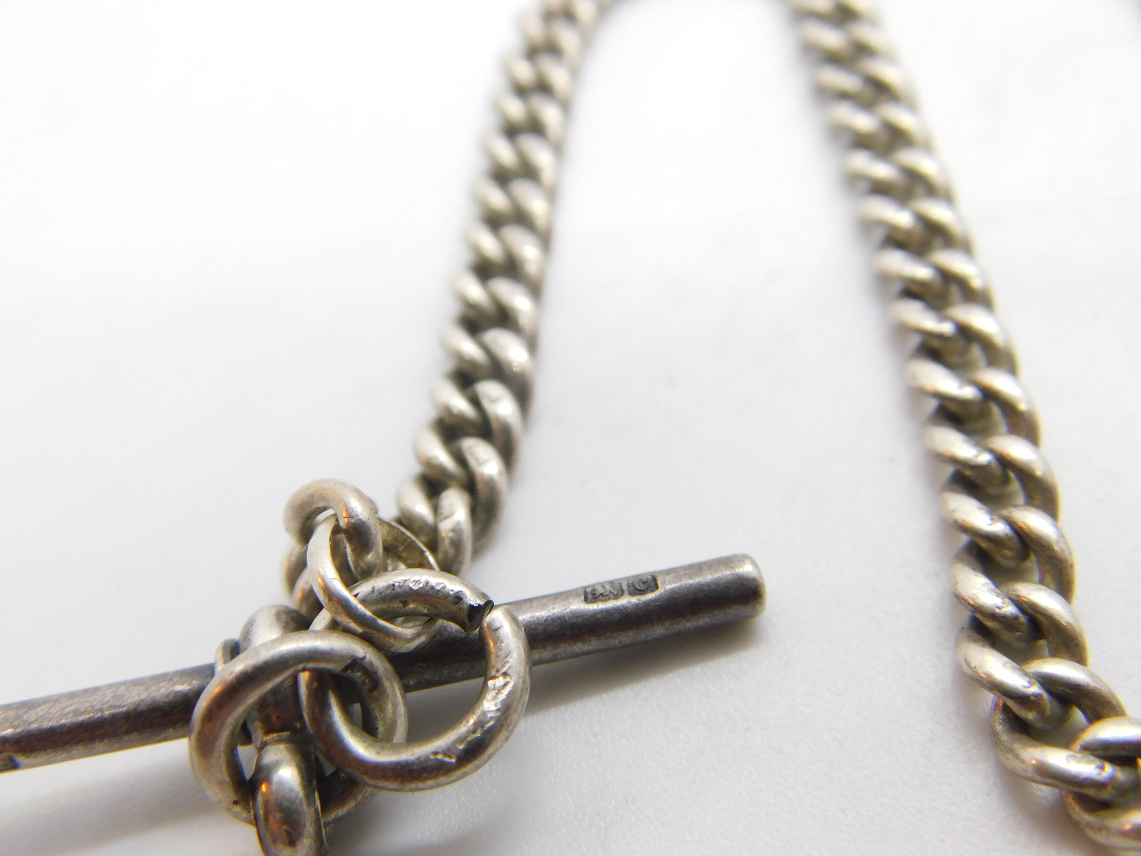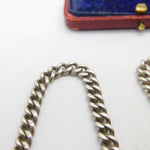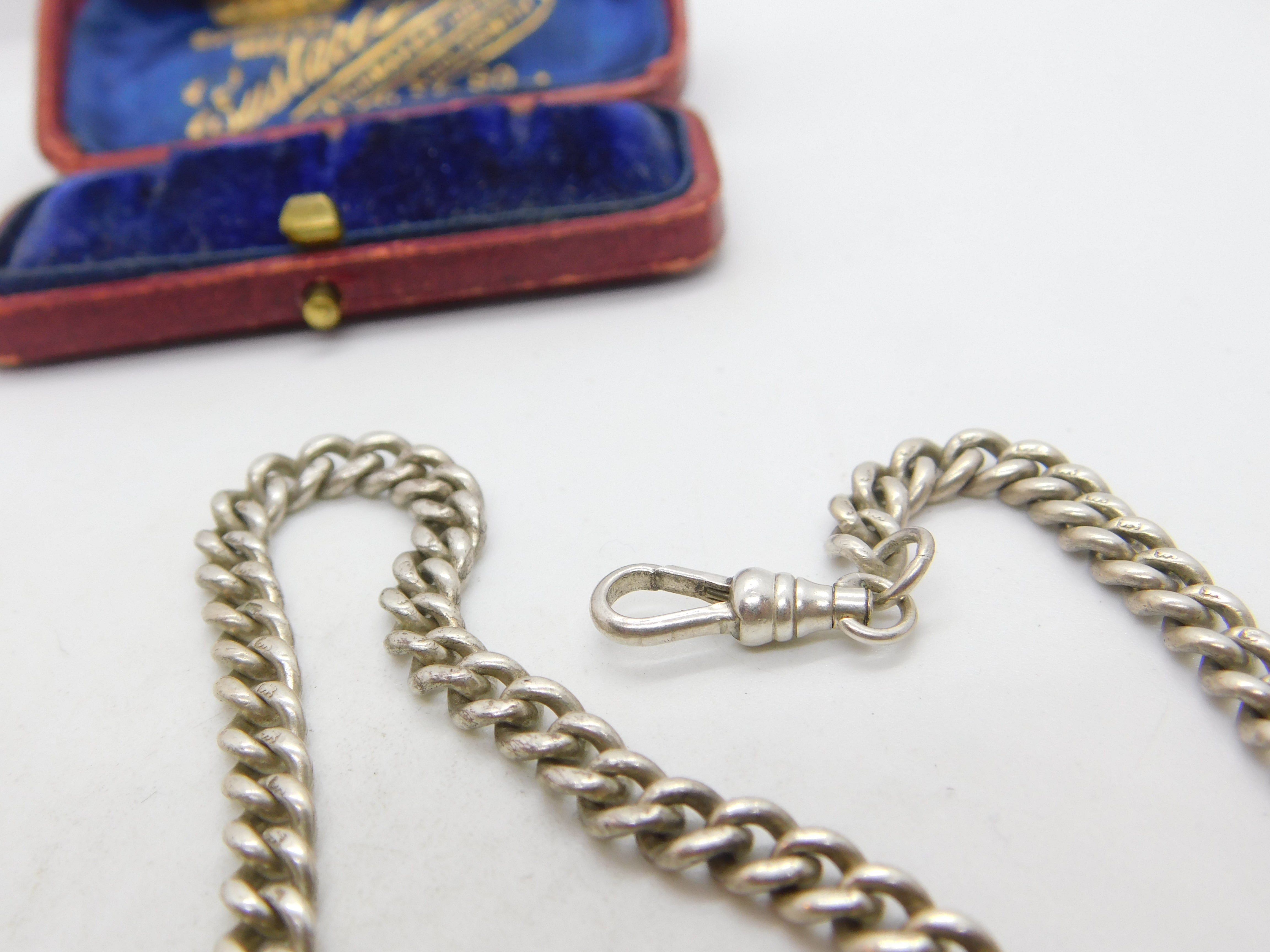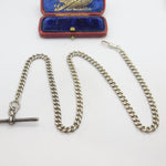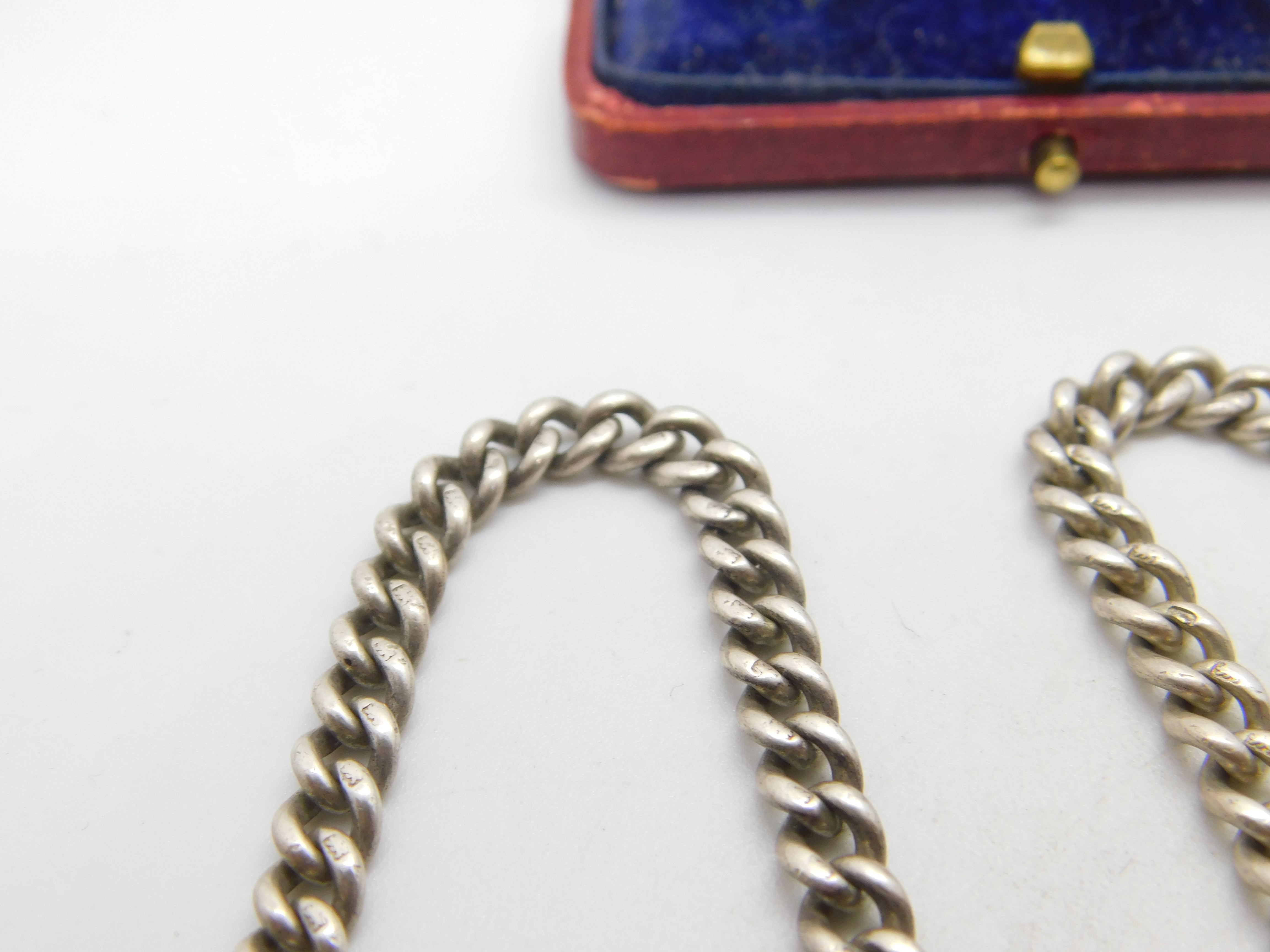 Details: A fantastic and wonderfully designed antique Edwardian sterling silver curb link albert watch chain with lovely detailing hallmarked Birmingham, 1902 to the t-bar and hallmarked to the links of the chain. This is a wonderful item that would make a perfect gift or addition to any collection. The BOX pictured is for PRESENTATION ONLY and is NOT included in the listings but used to frame the pictures unless specifically stated otherwise.
