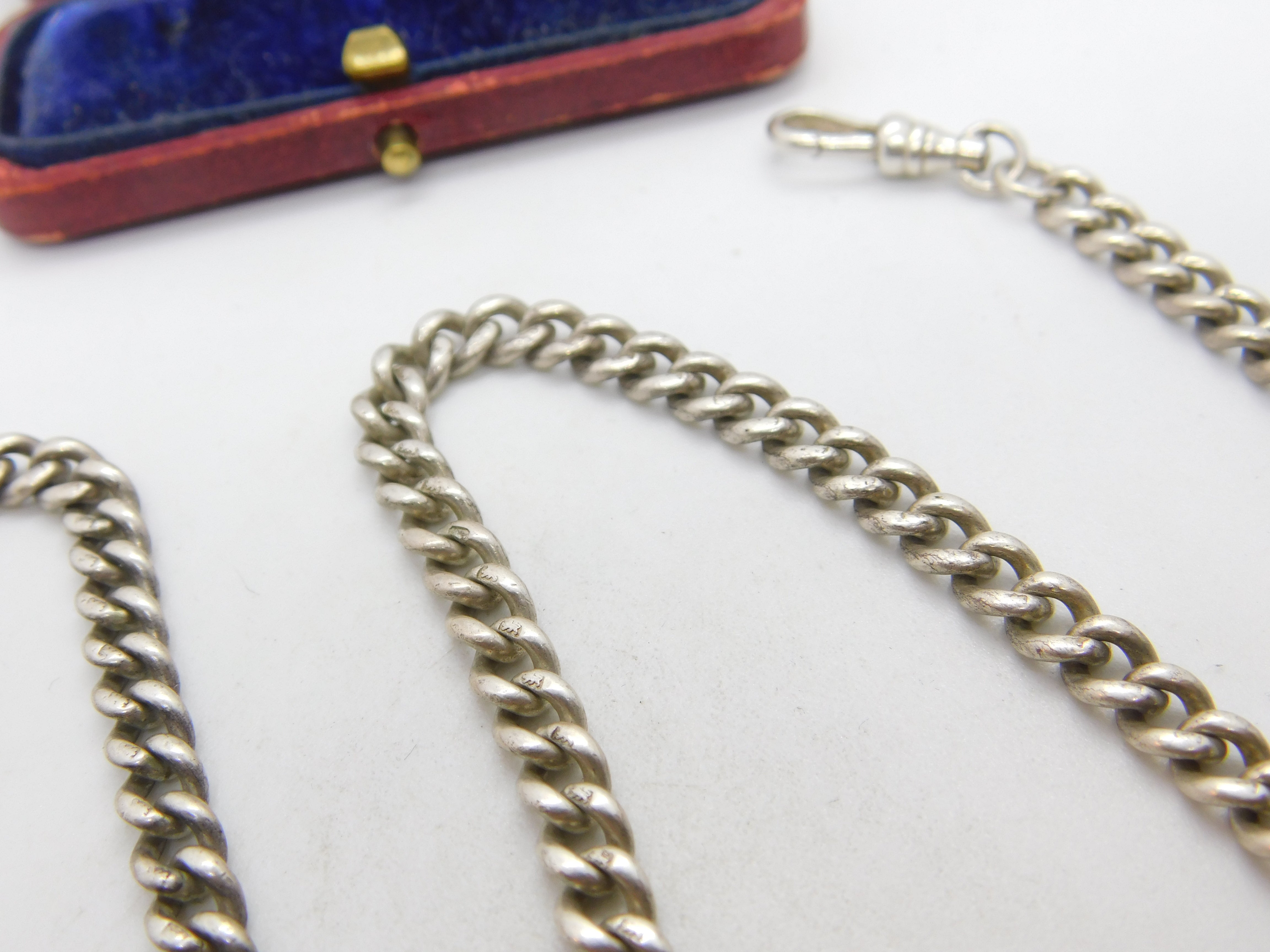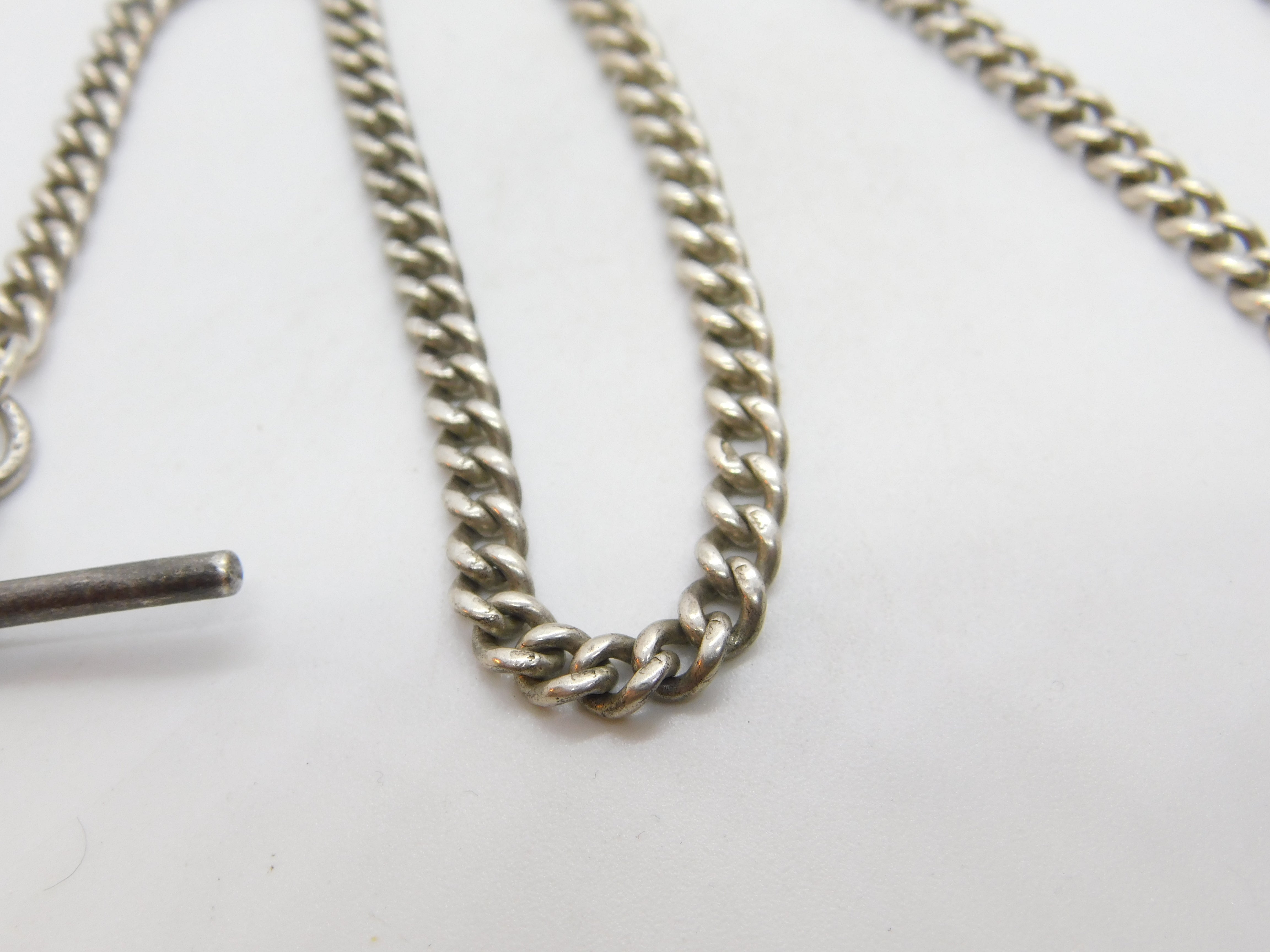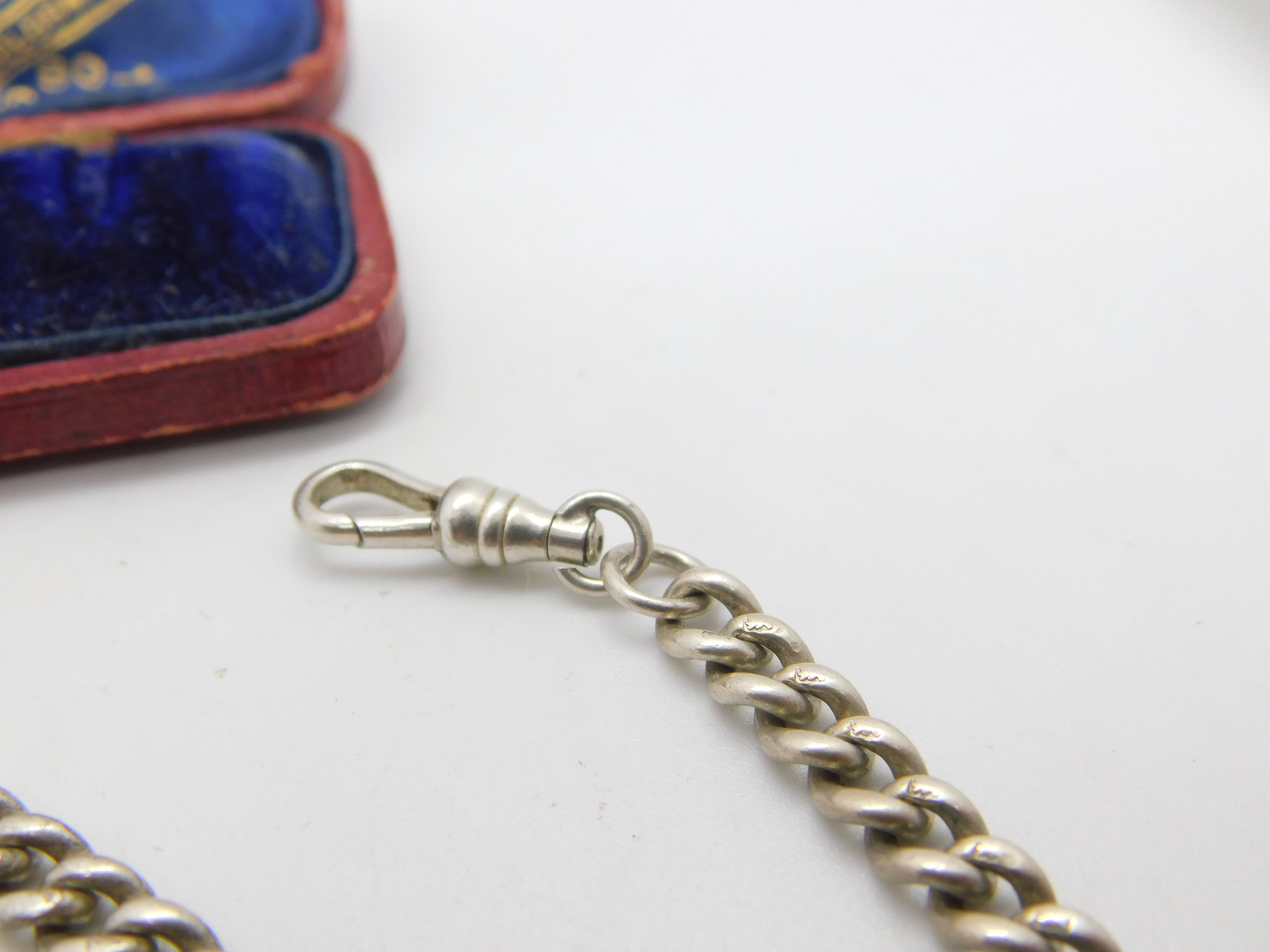 Edwardian Sterling Silver Albert Watch Chain 1902 Birmingham Antique 18" Length