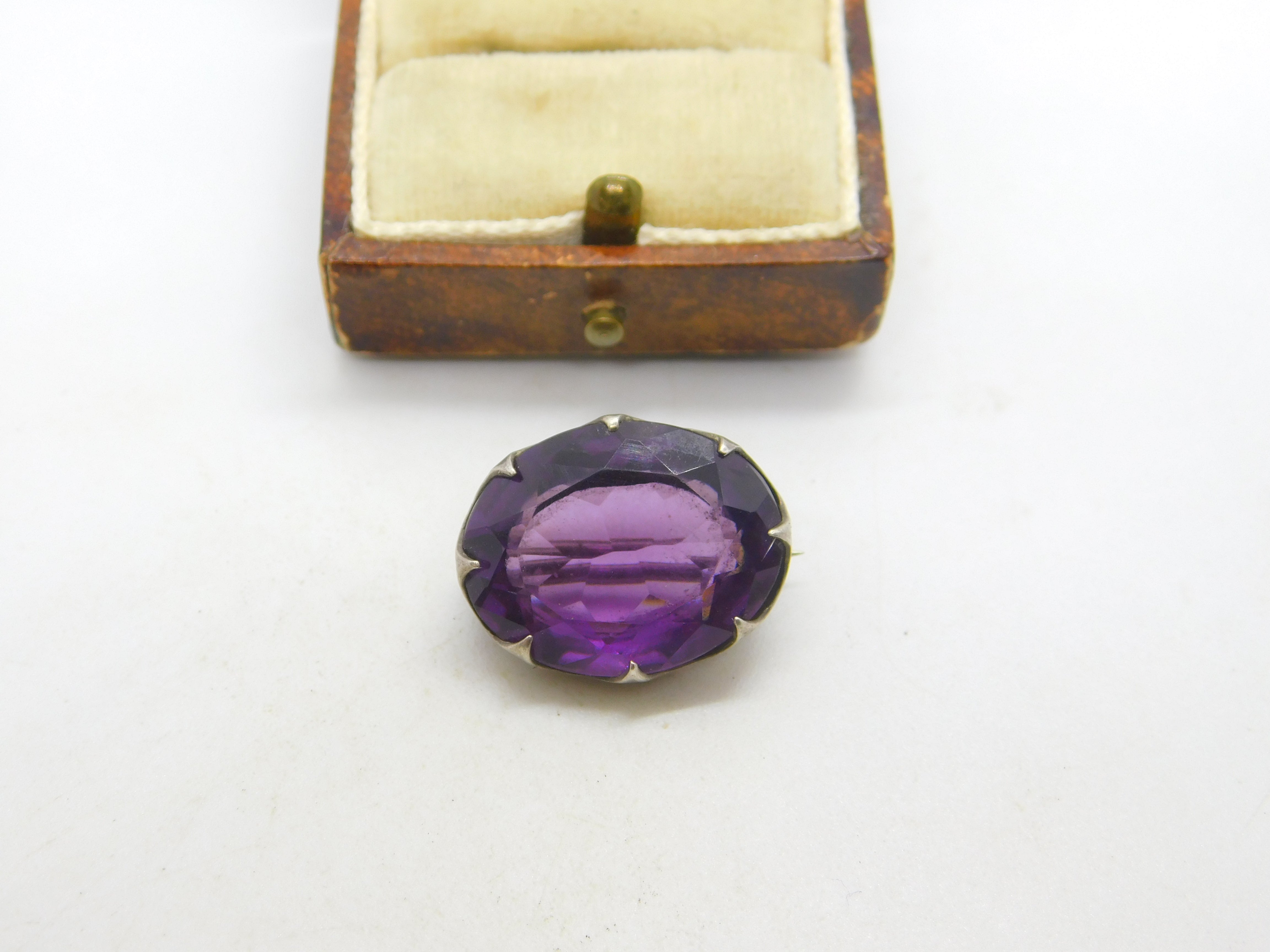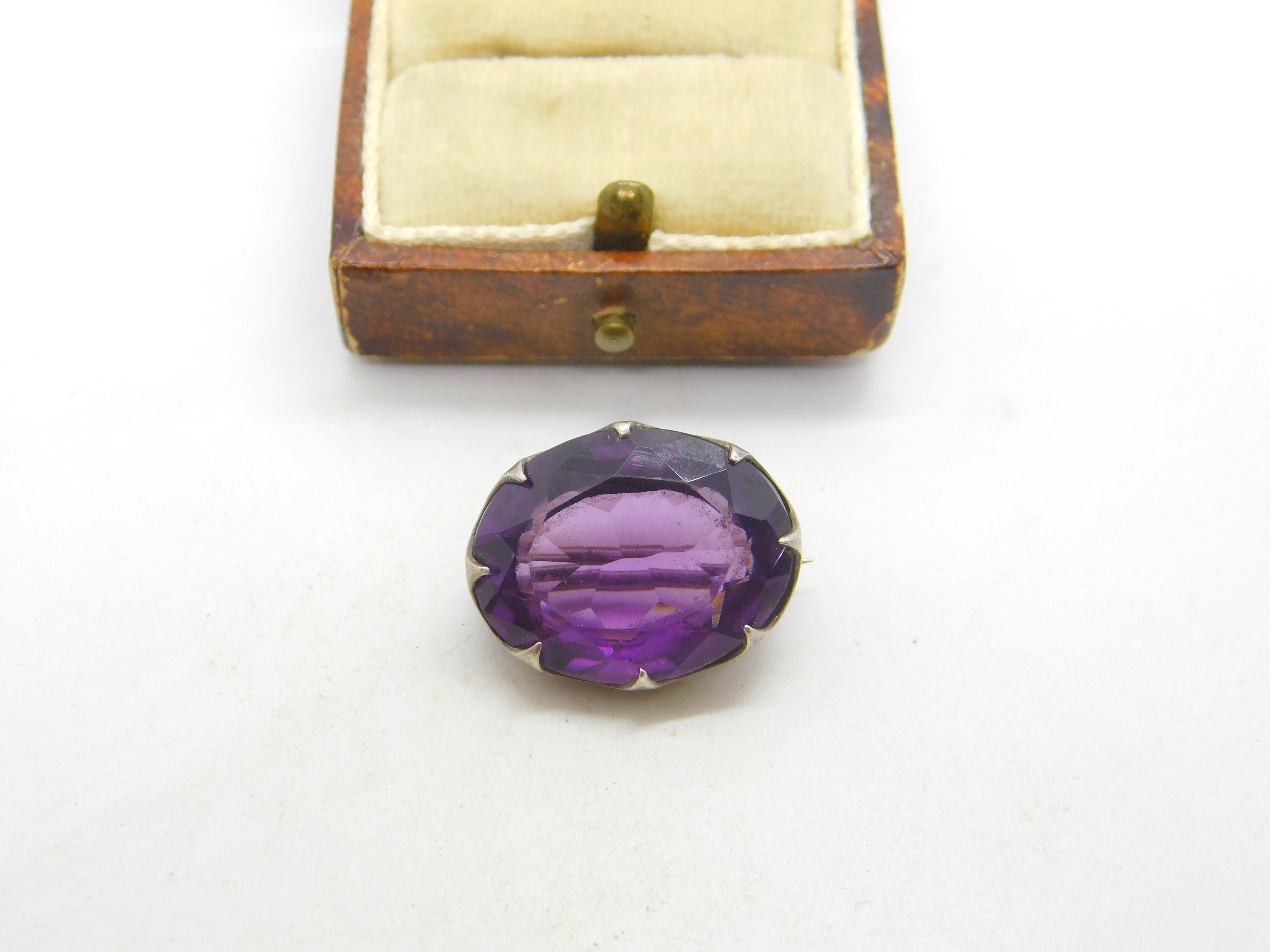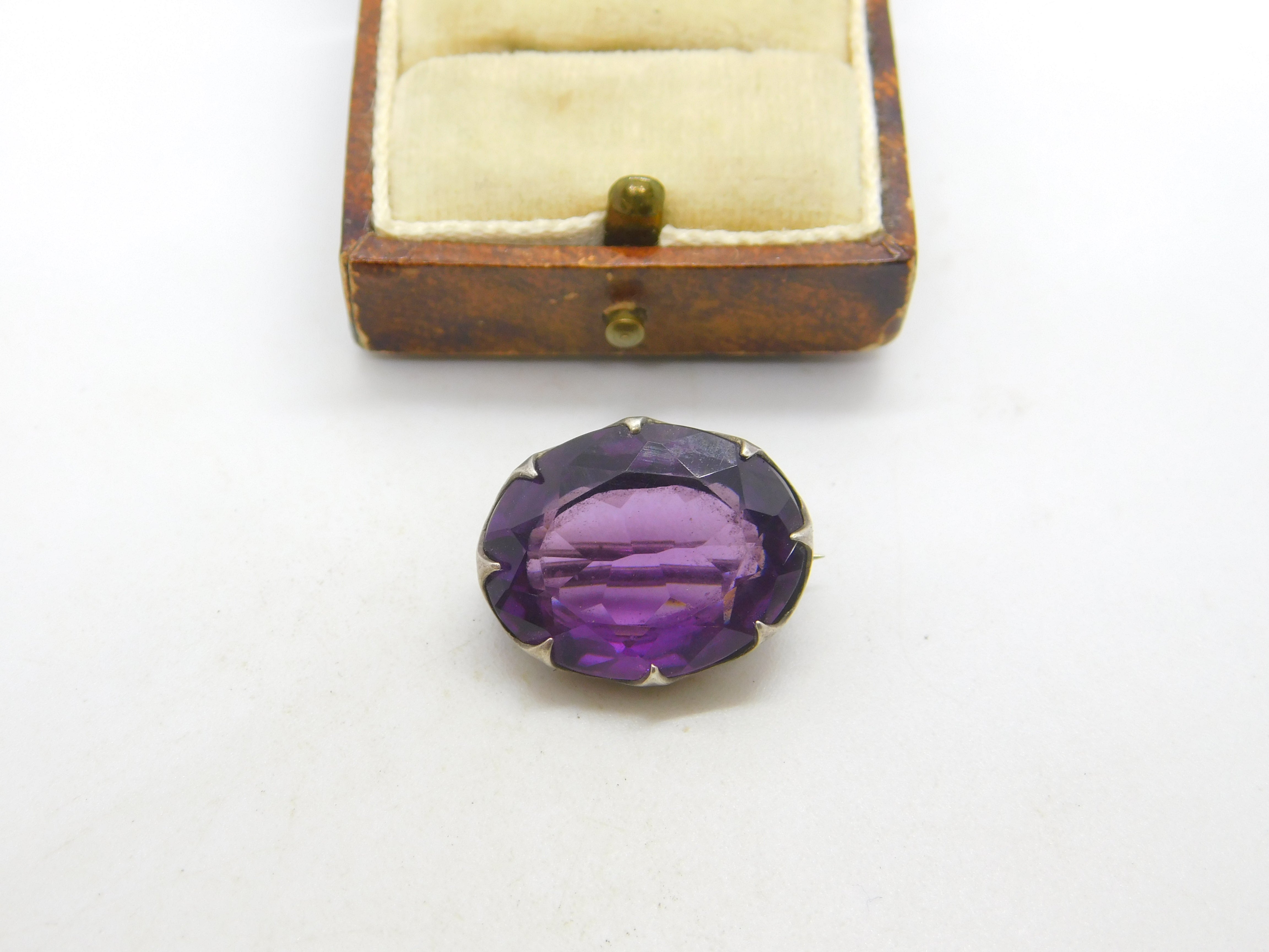 Edwardian Sterling Silver Amethyst Brooch Antique 1906 Chester Charles Horner