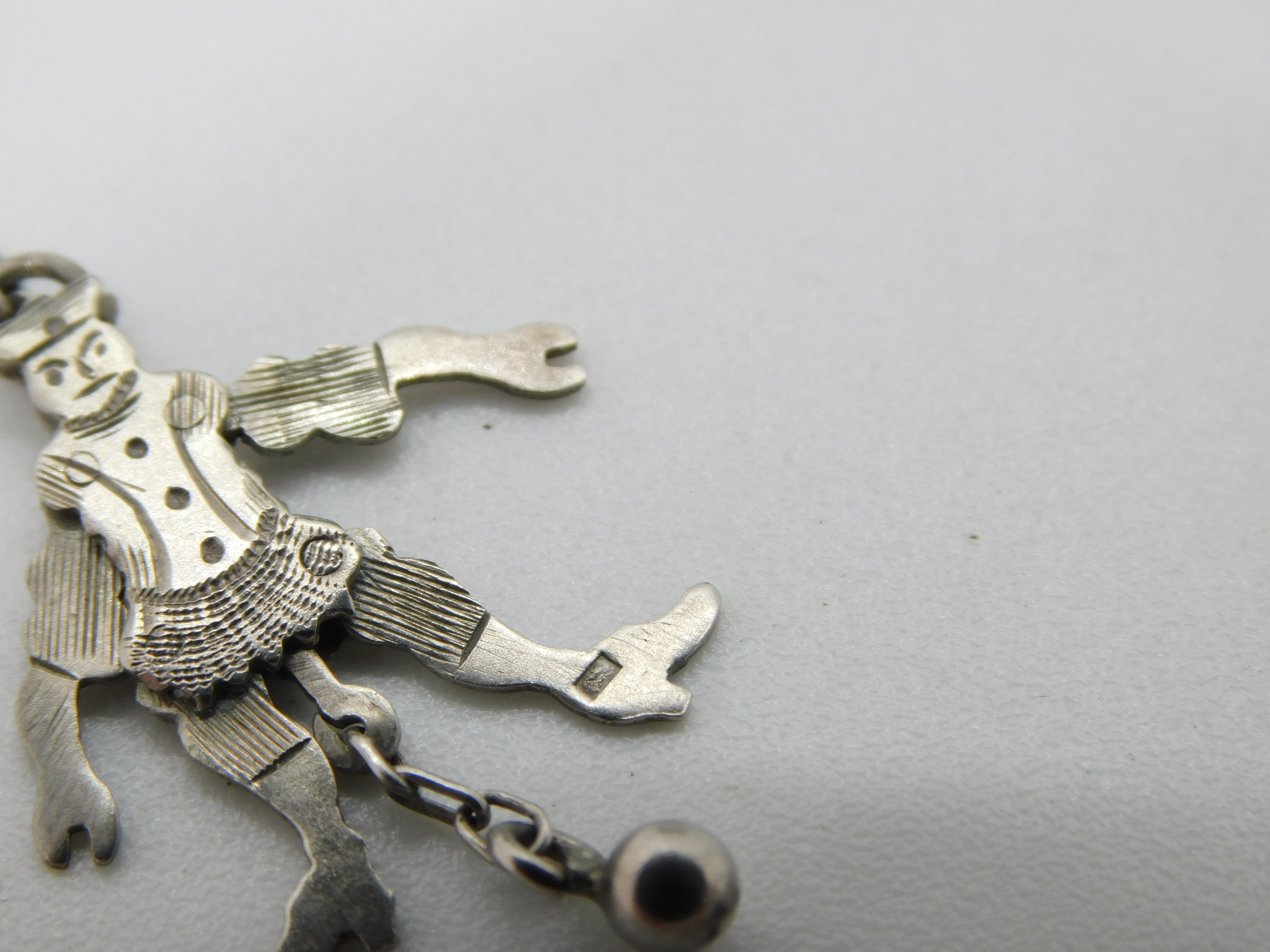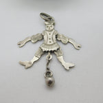 Edwardian Sterling Silver Articulated Clown with Ball Pendant c1910 Antique