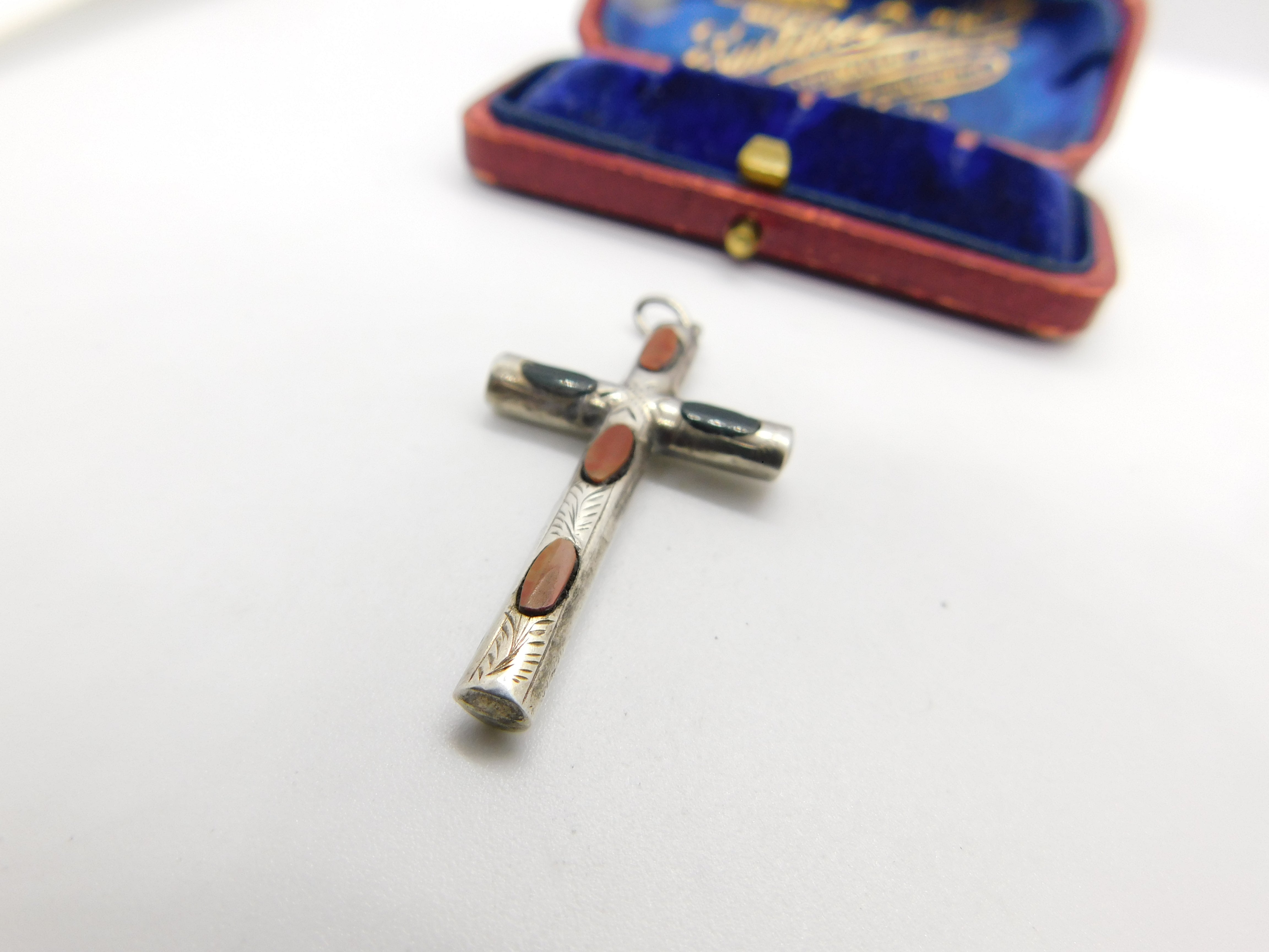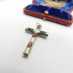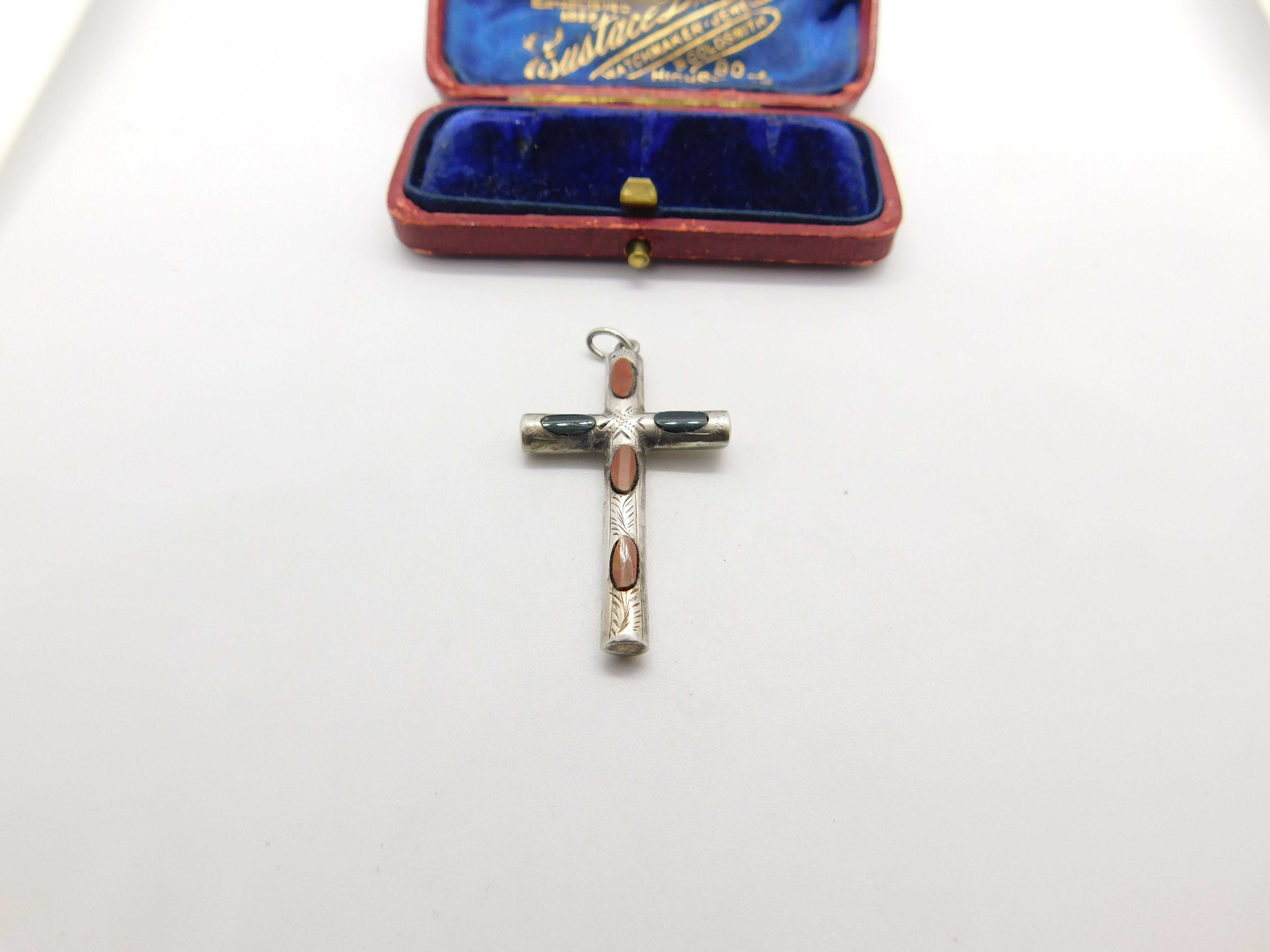 Edwardian Sterling Silver Bloodstone & Agate Cross Pendant Antique 1907 Chester