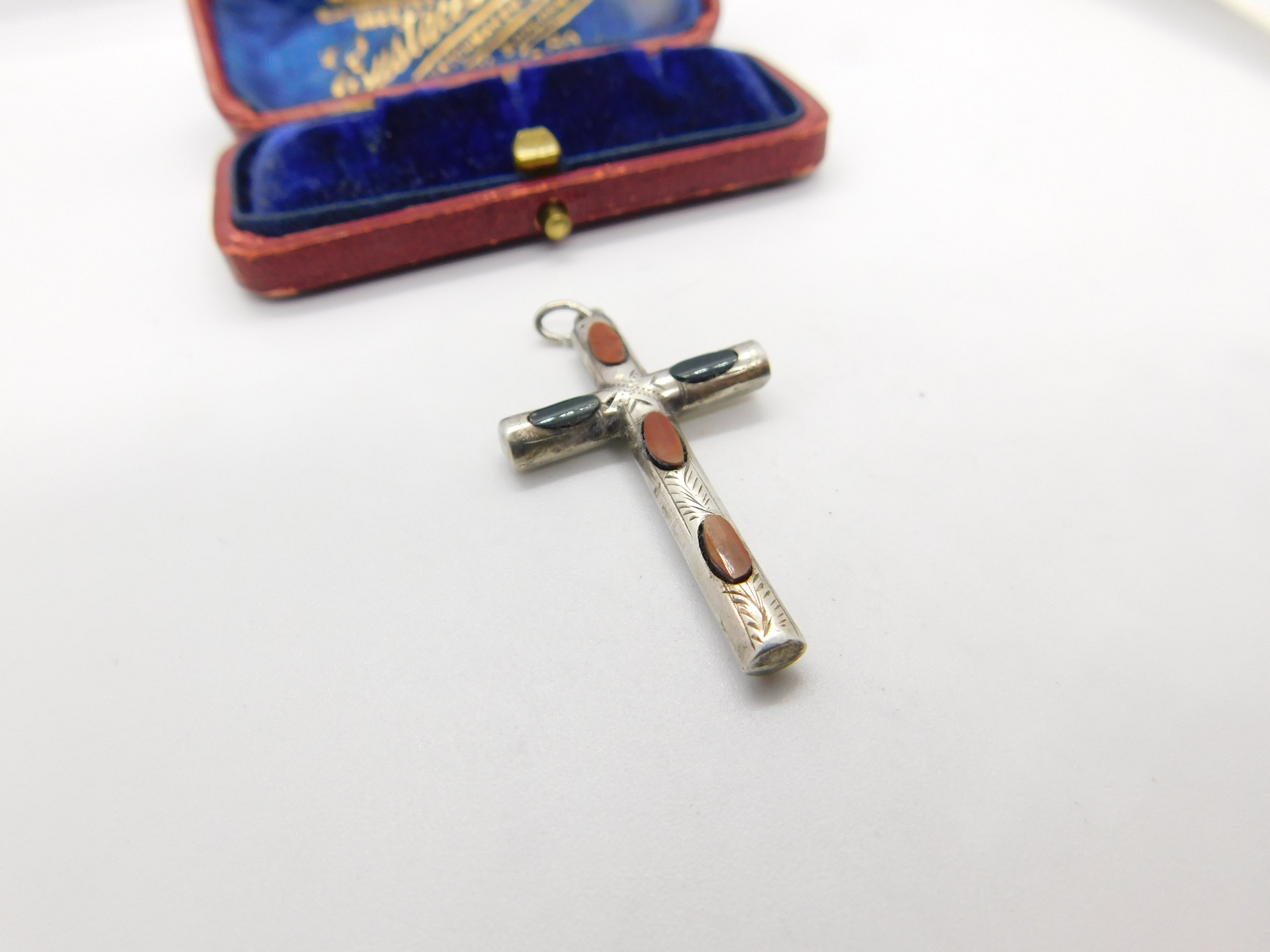 Details: A fantastic and wonderfully designed antique Edwardian sterling silver cross or crucifix pendant set with bloodstone and agate hallmarked Chester 1907 to the reverse. This is a wonderful item that would make a perfect gift or addition to any collection. The BOX pictured is for PRESENTATION ONLY and is NOT included in the listings but used to frame the pictures unless specifically stated otherwise.