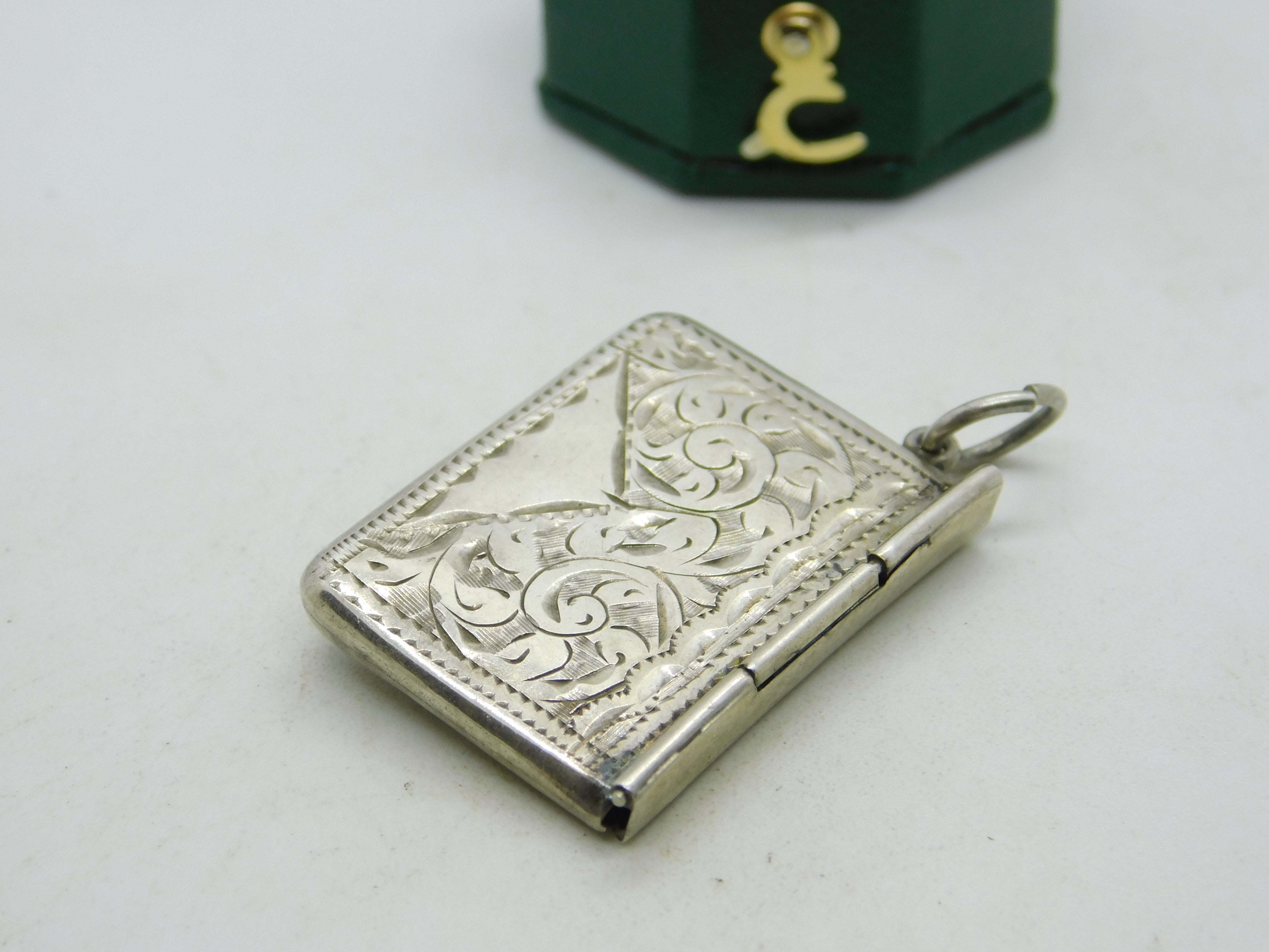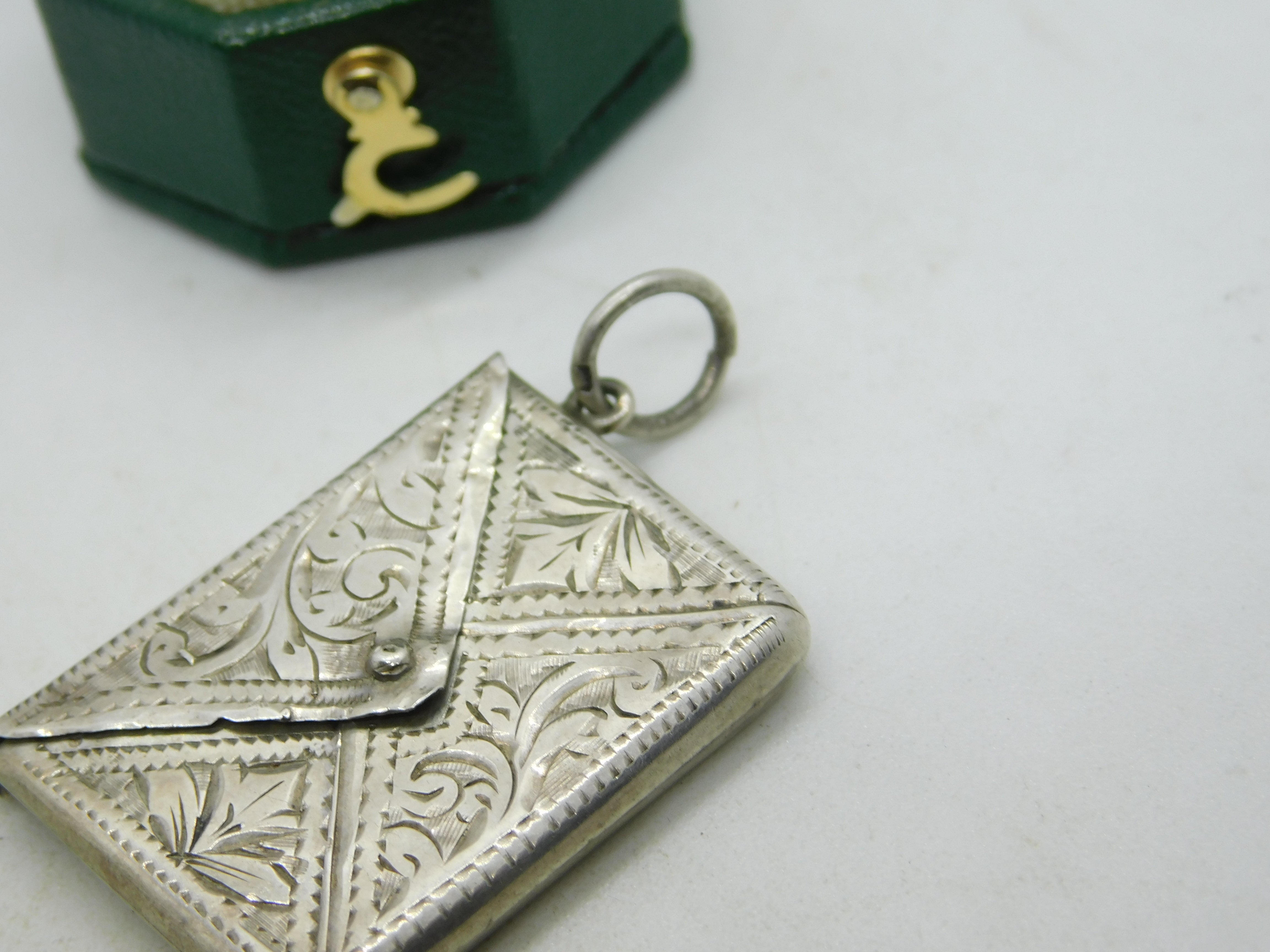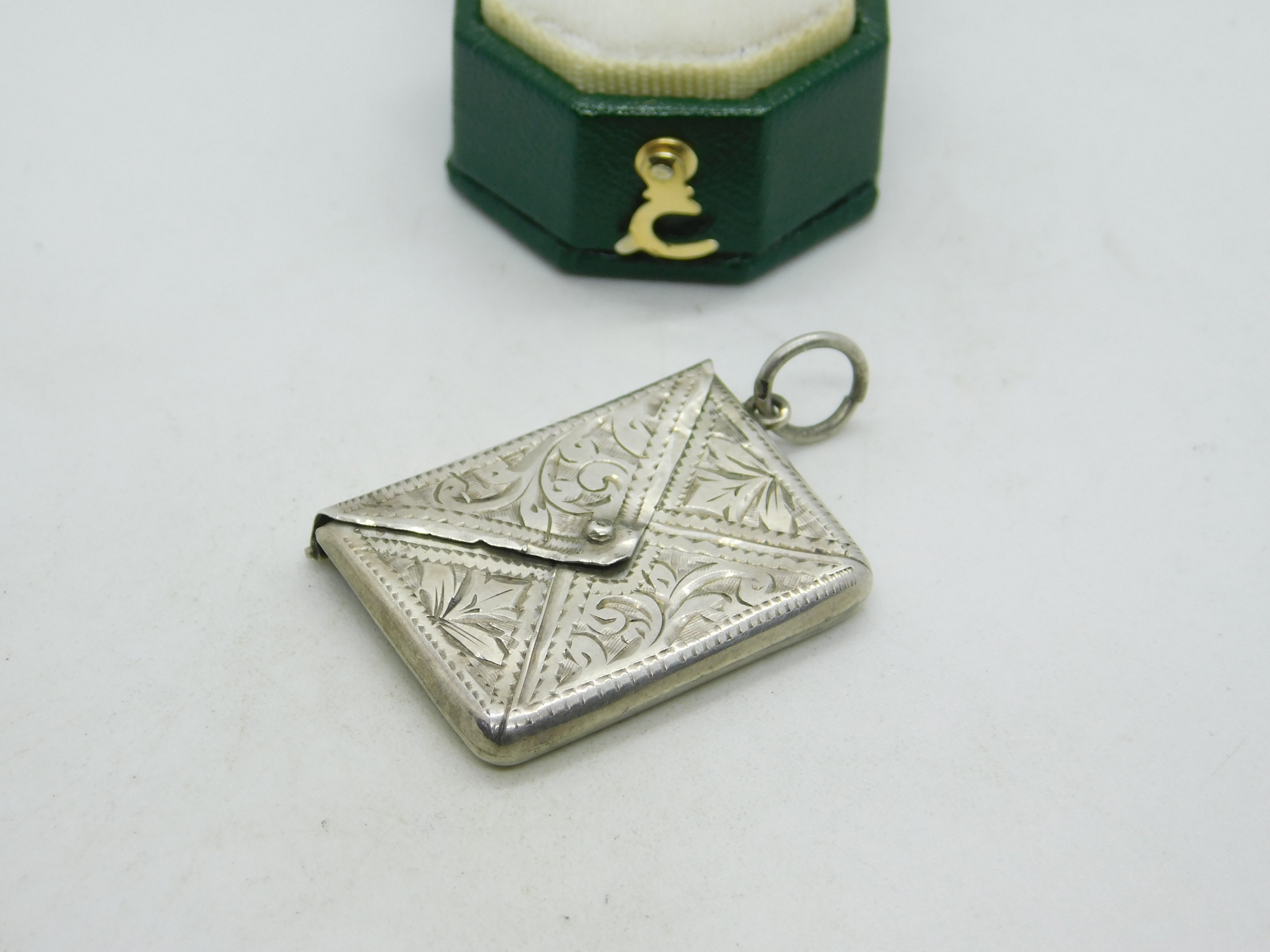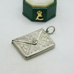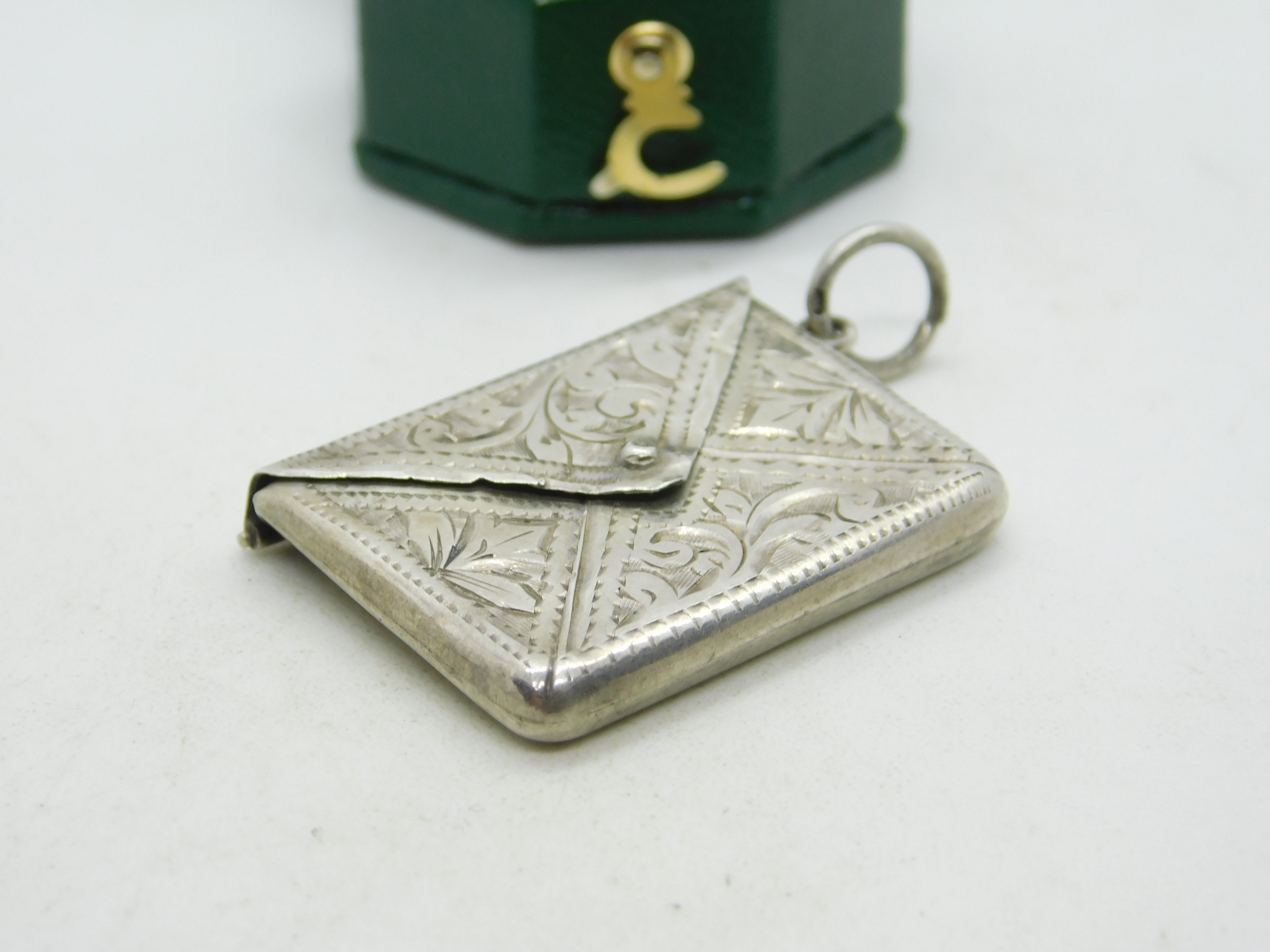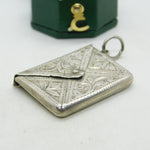 Edwardian Sterling Silver Floral Envelope Stamp Case Fob Antique 1909 Birmingham