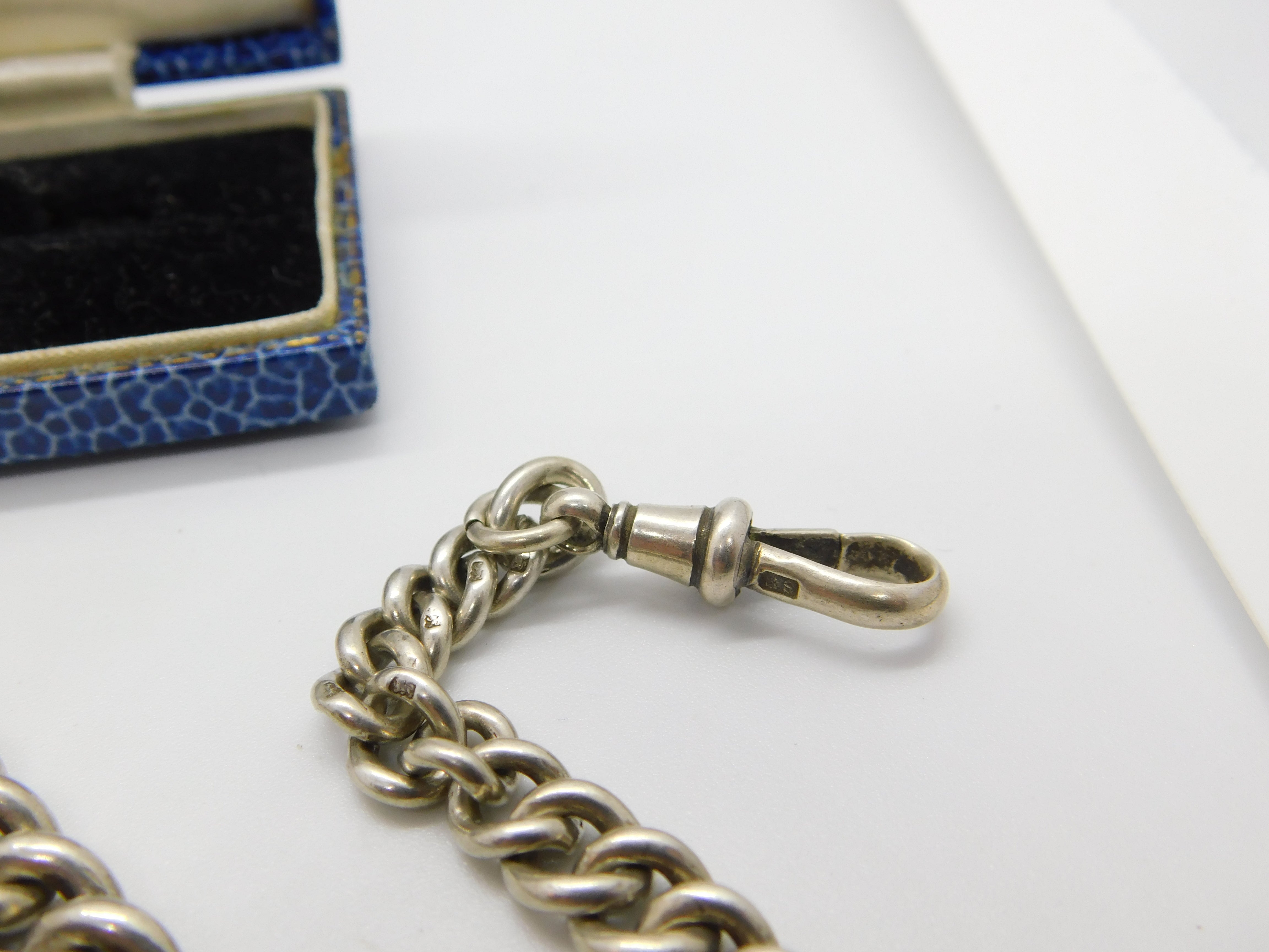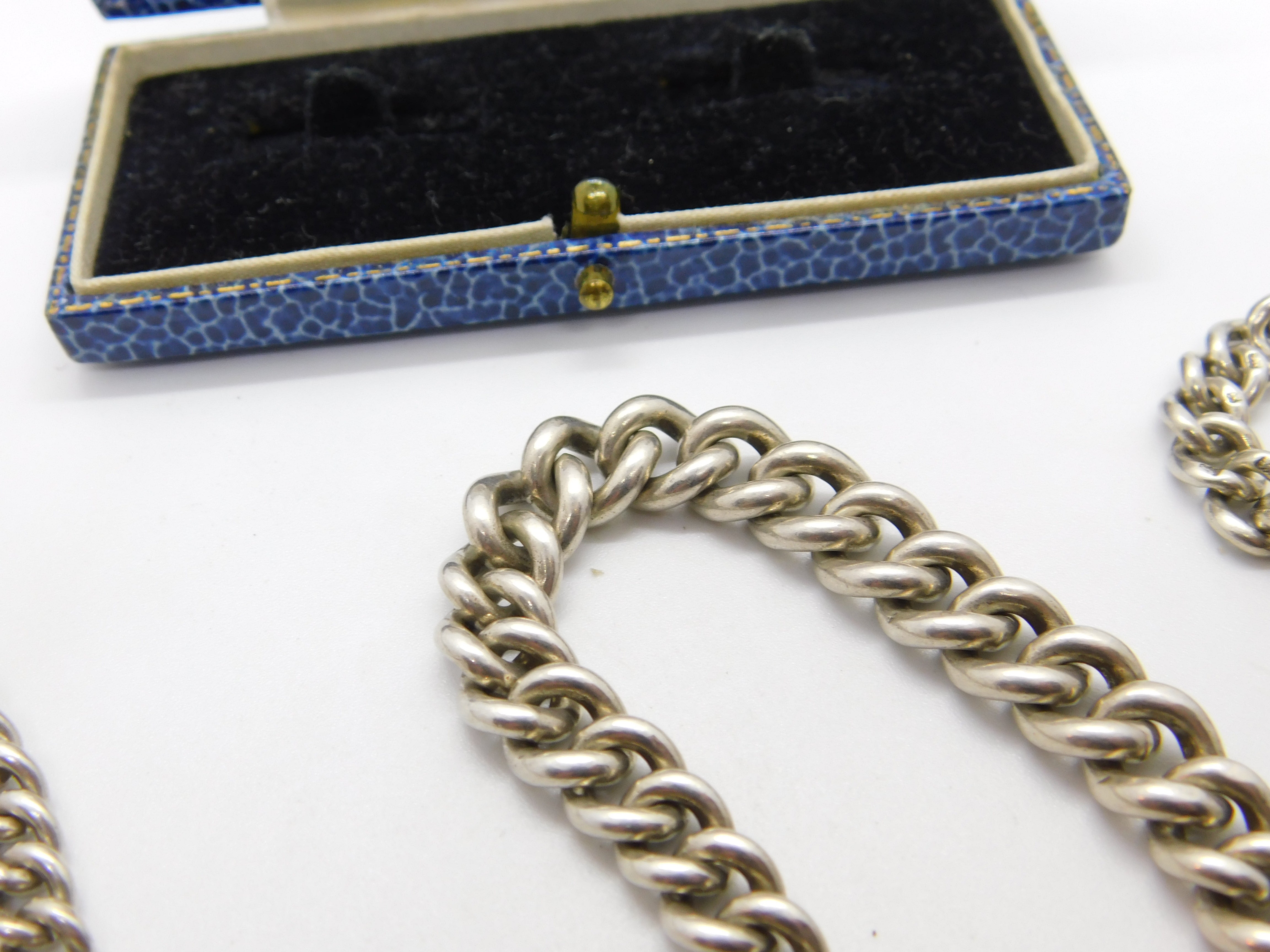 Edwardian Sterling Silver Graduating Albert Watch Chain Antique 1905 Birmingham