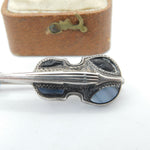 Edwardian Sterling Silver Montrose Agate Scottish Violin Brooch 1908 Antique