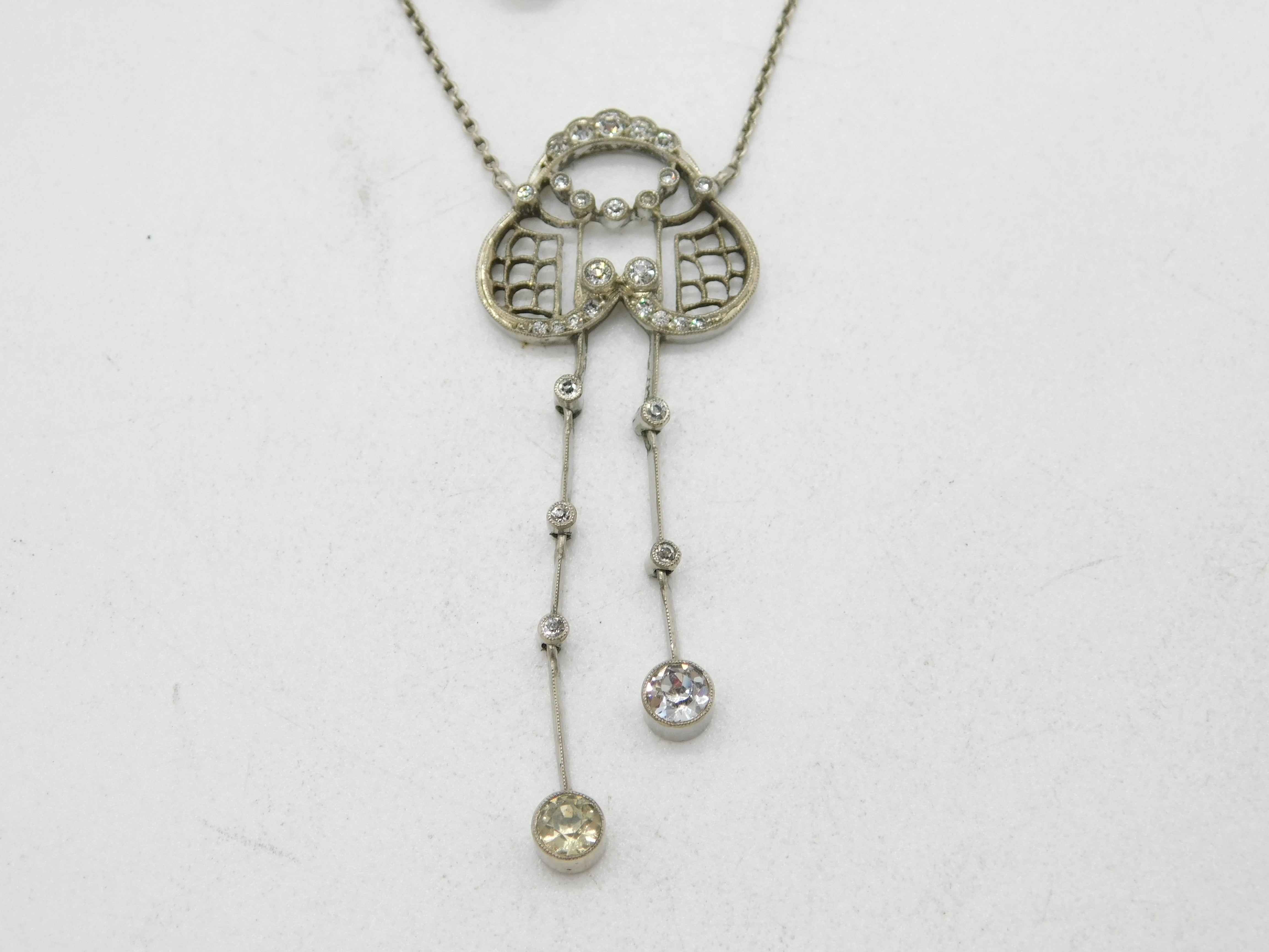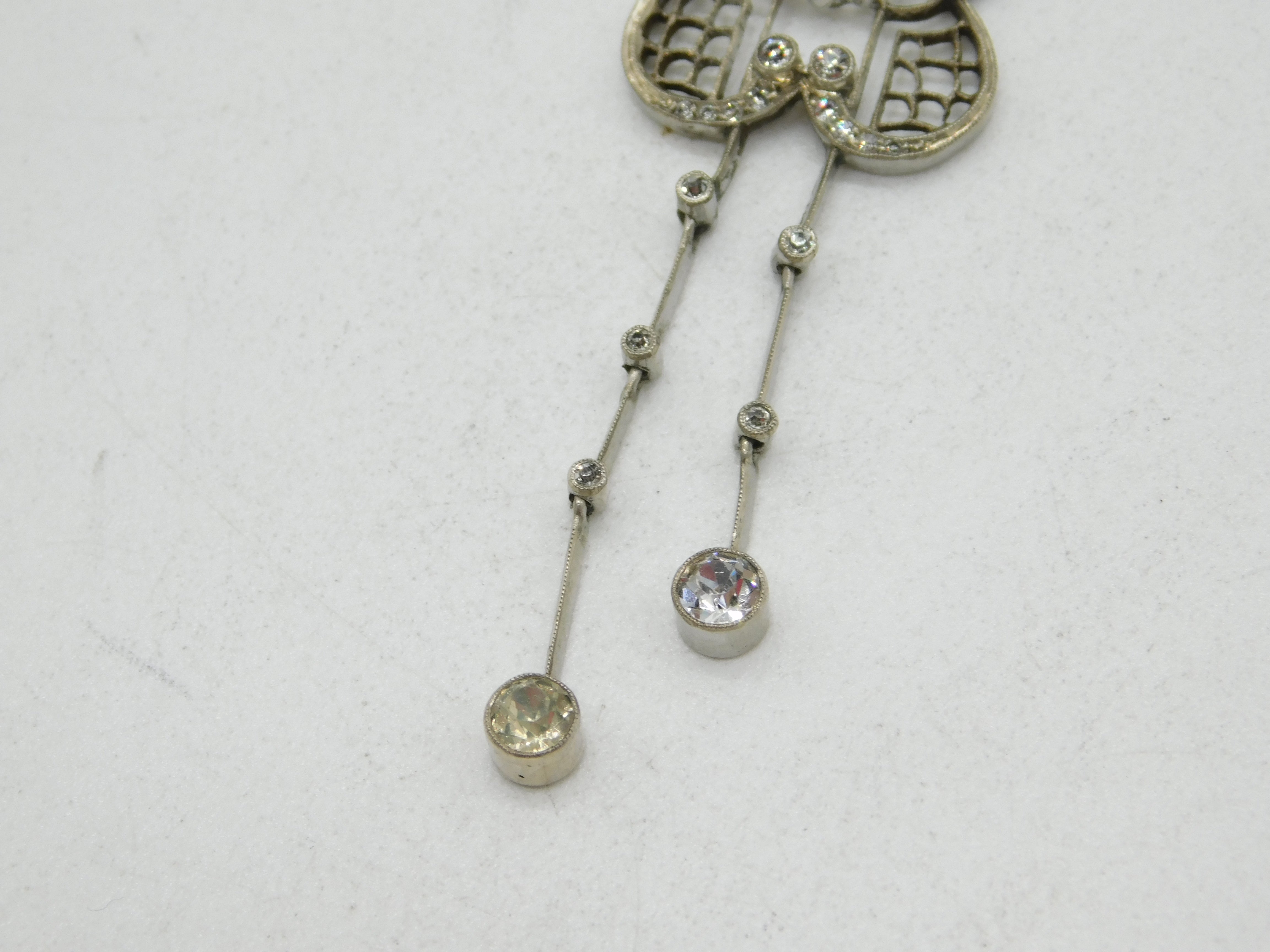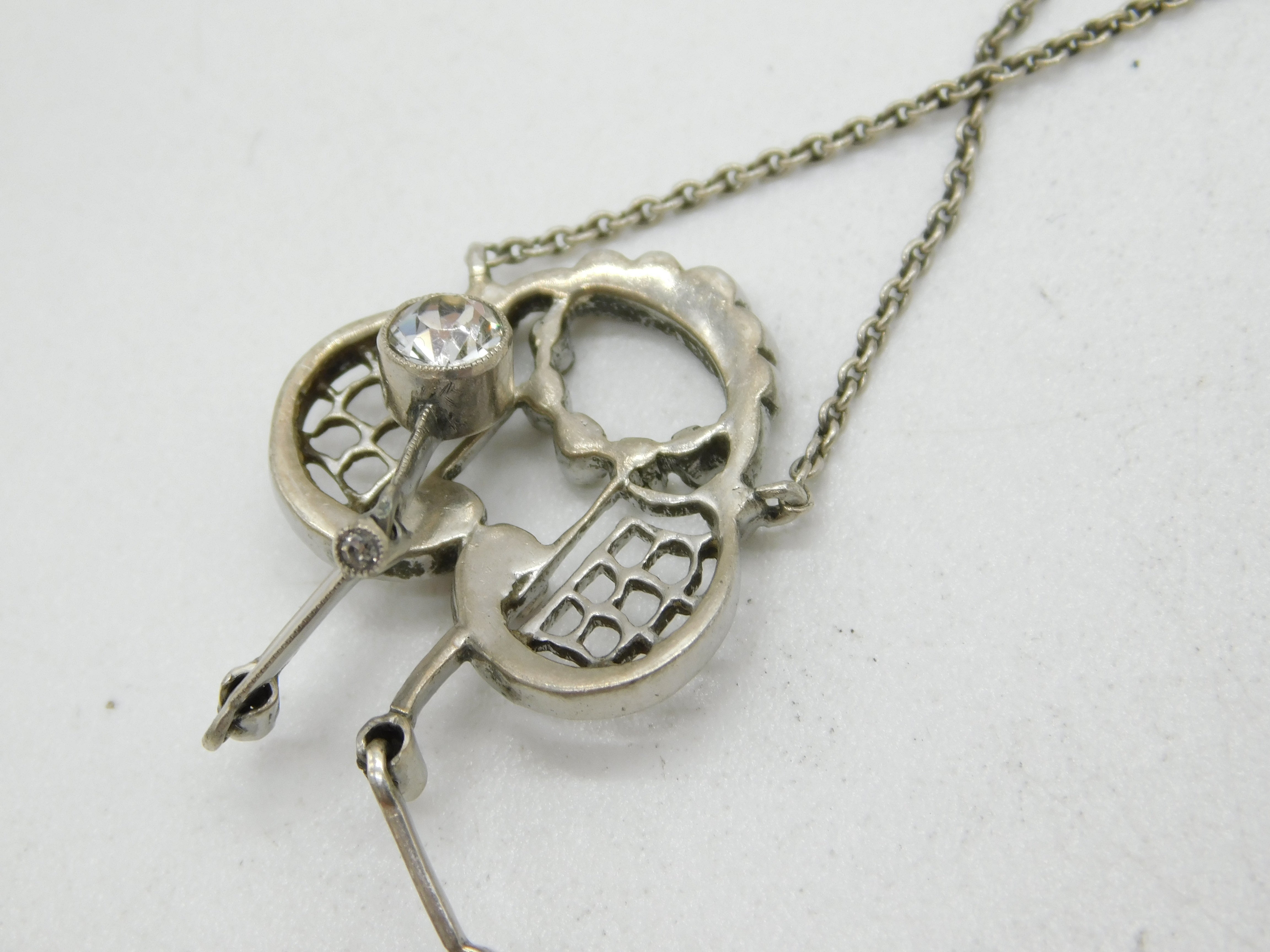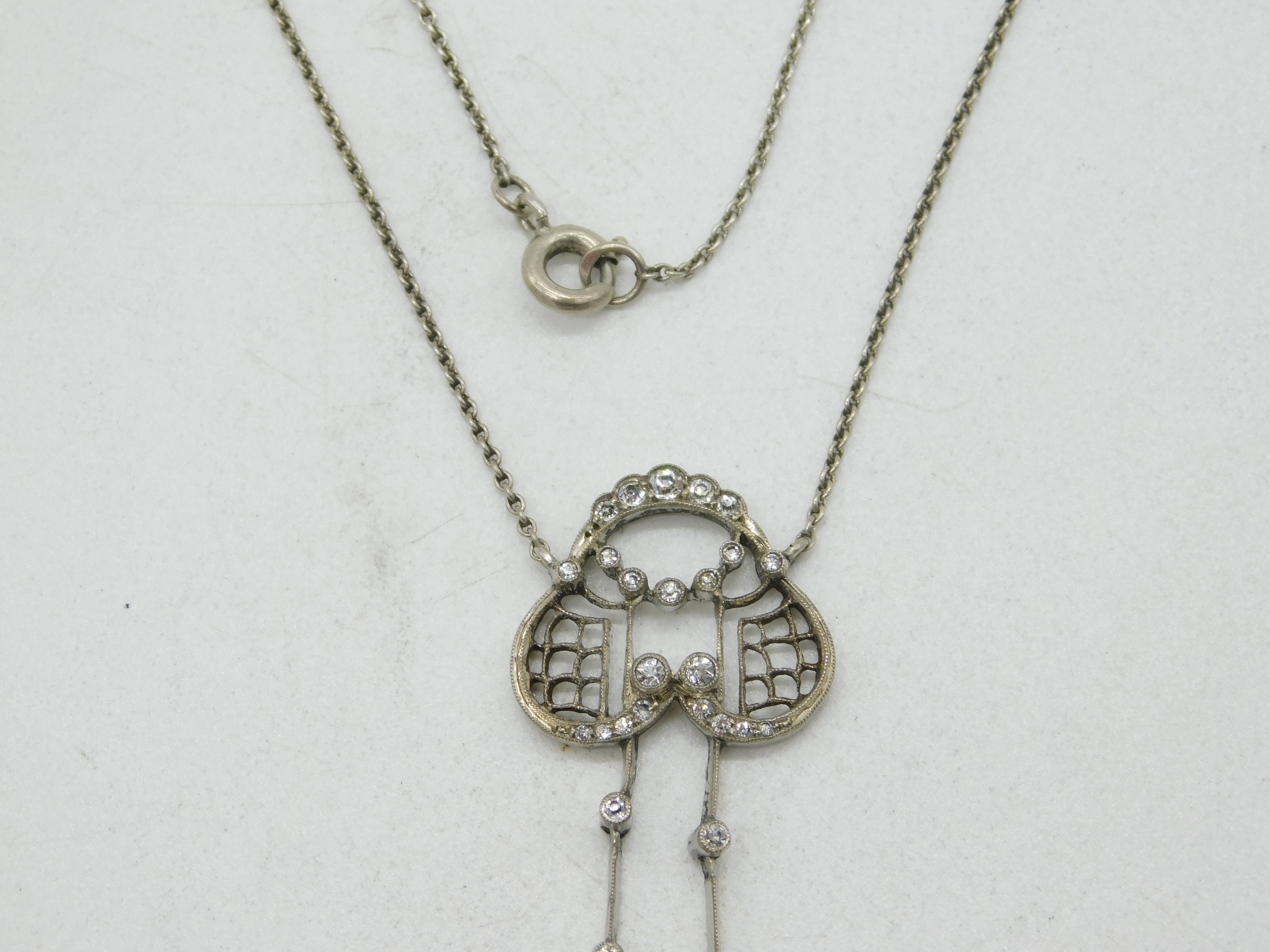 Details: A fantastic and wonderfully designed antique Edwardian sterling silver paste set lavalier drop pendant necklace with lovely detailing c1910, the silver has been XRF tested. This is a wonderful item that would make a perfect gift or addition to any collection. We are more than happy to provide XRF reports for items upon request.