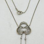 Edwardian Sterling Silver Paste Set Lavalier Drop Necklace Antique c1910