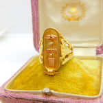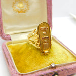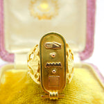 Egyptian 21ct Yellow Gold Hieroglyphics Signet Ring Antique c1920 Art Deco