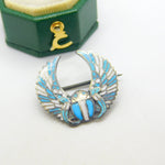 Egyptian .800 Silver & Blue-White Enamel Winged Scarab Beetle Brooch Antique c1940