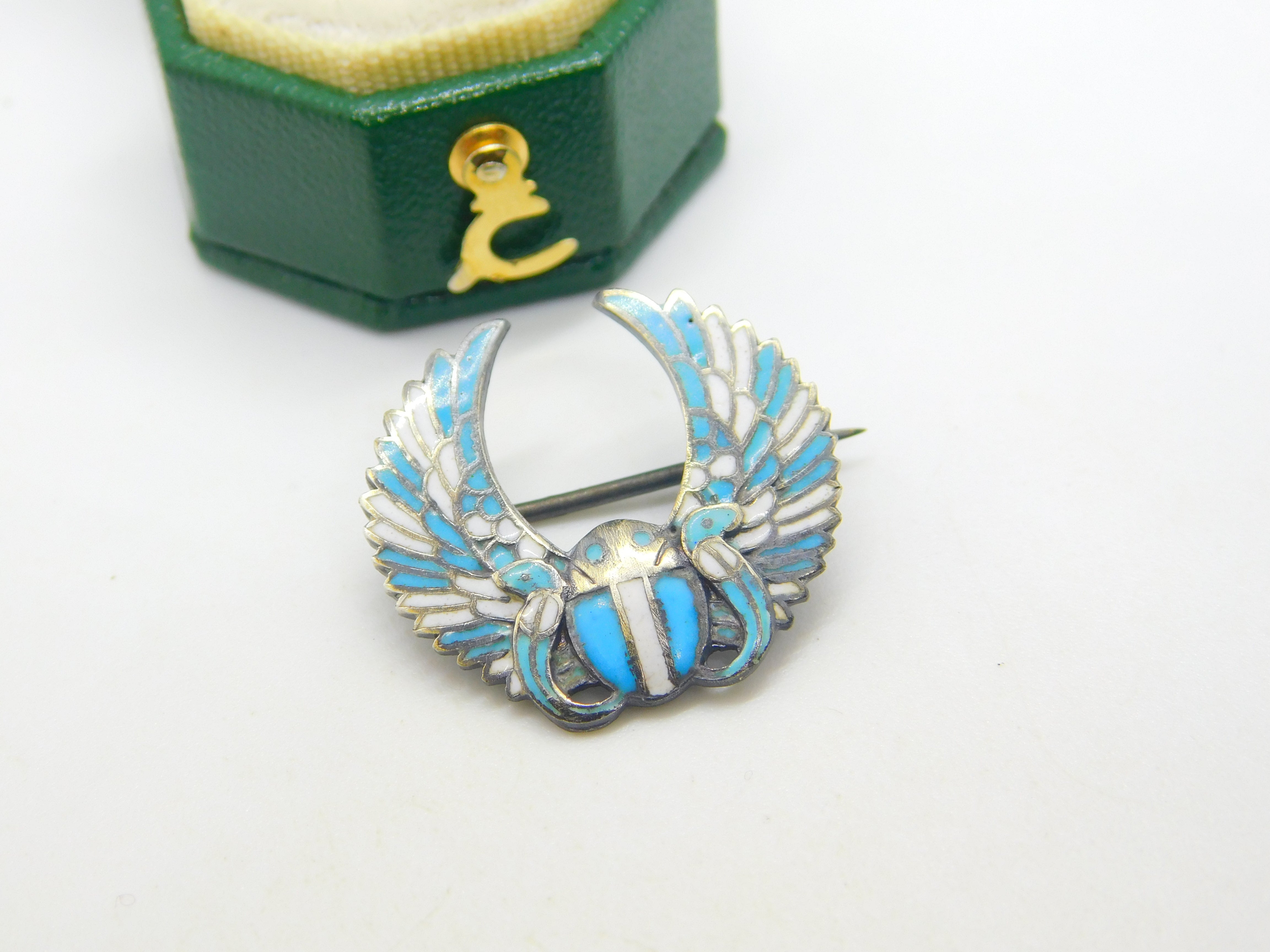 Details: A fantastic and wonderfully designed antique art deco Egyptian 800 grade silver & blue-white enamel winged scarab brooch with lovely detailing hallmarked to the reverse c1940. This is a wonderful item that would make a perfect gift or addition to any collection. The BOX pictured is for PRESENTATION ONLY and is NOT included in the listings but used to frame the pictures unless specifically stated otherwise.