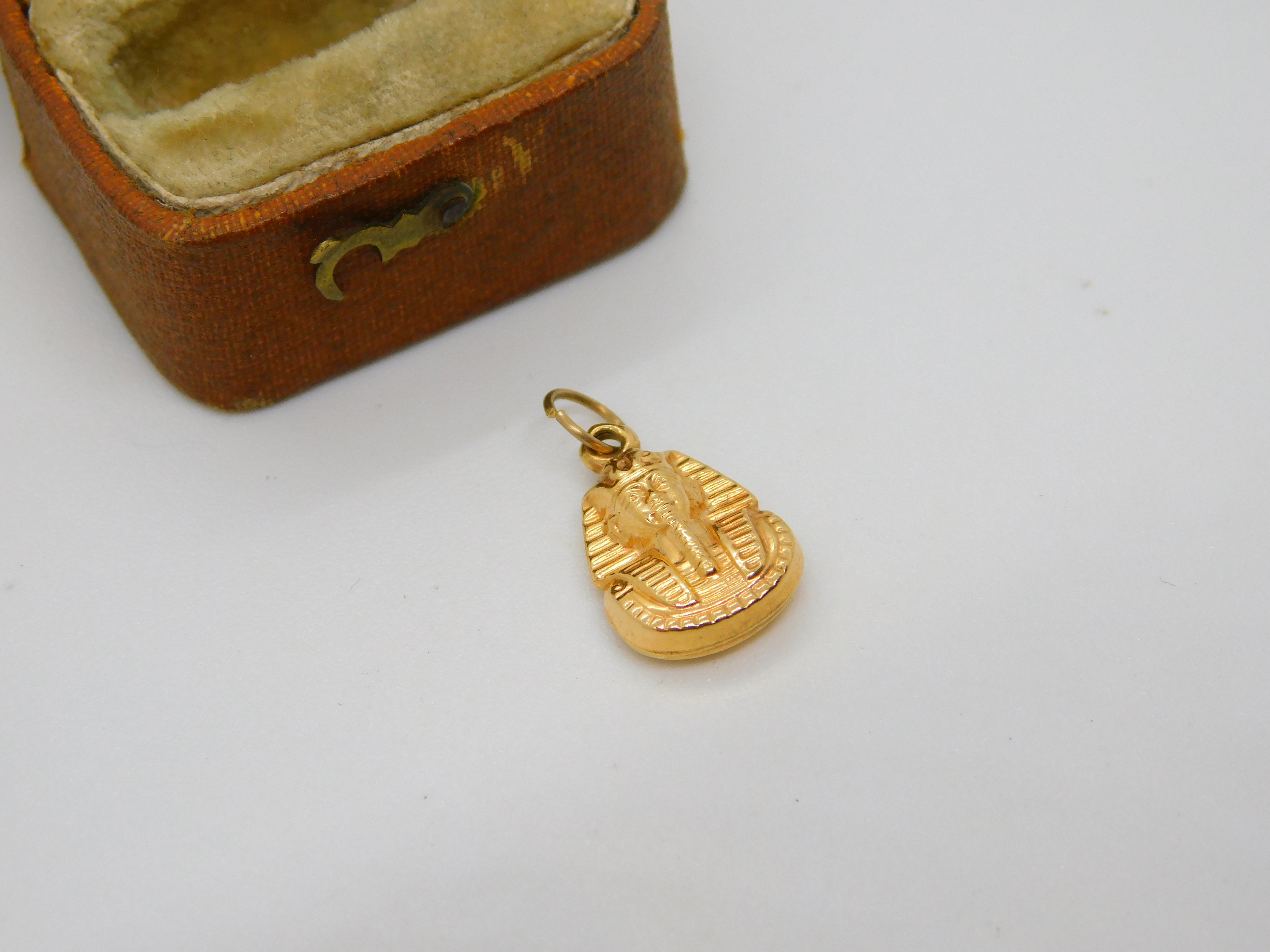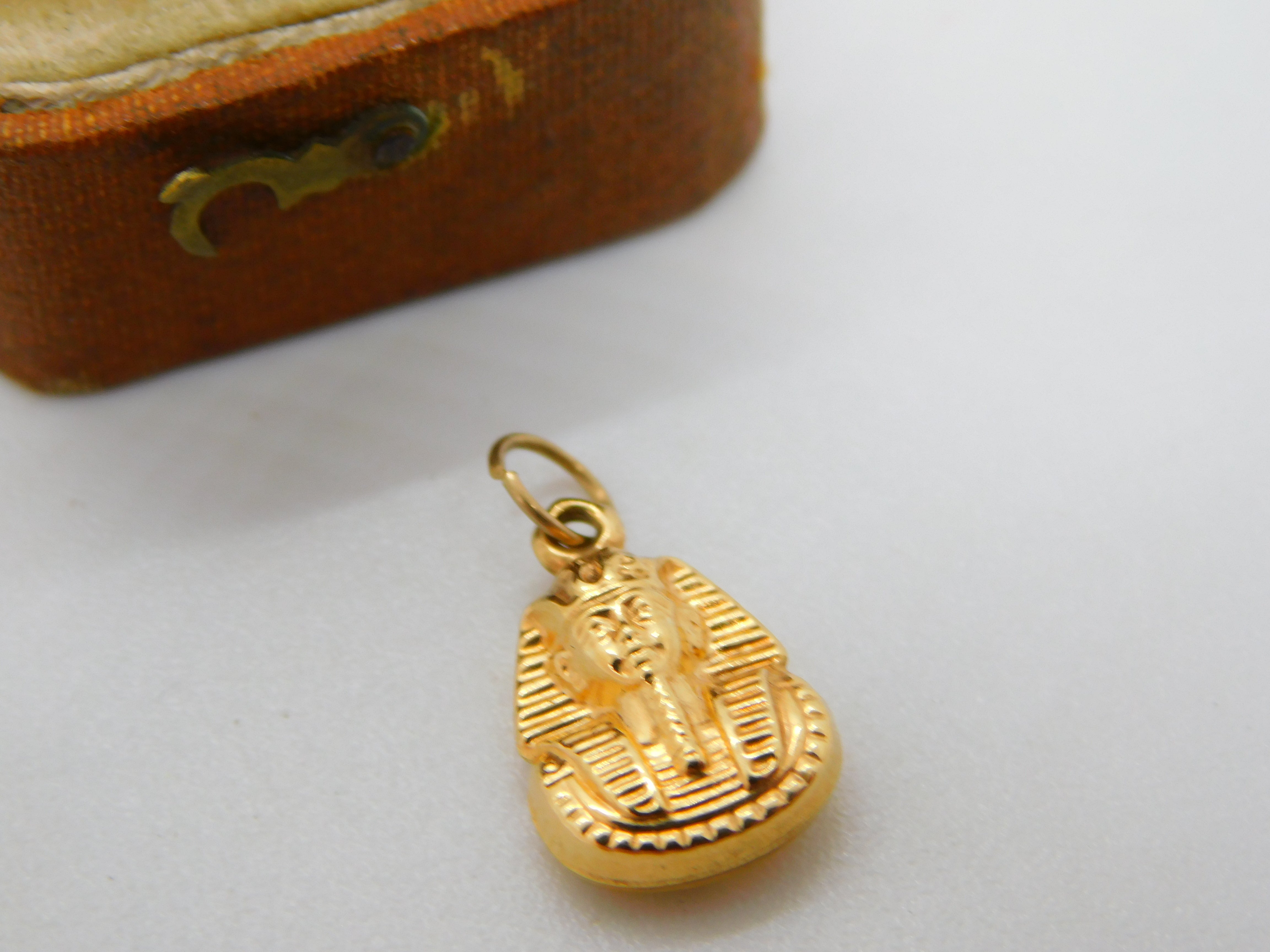 Egyptian 9ct Yellow Gold Pharaoh Tutankhamun Charm Pendant Vintage c1970