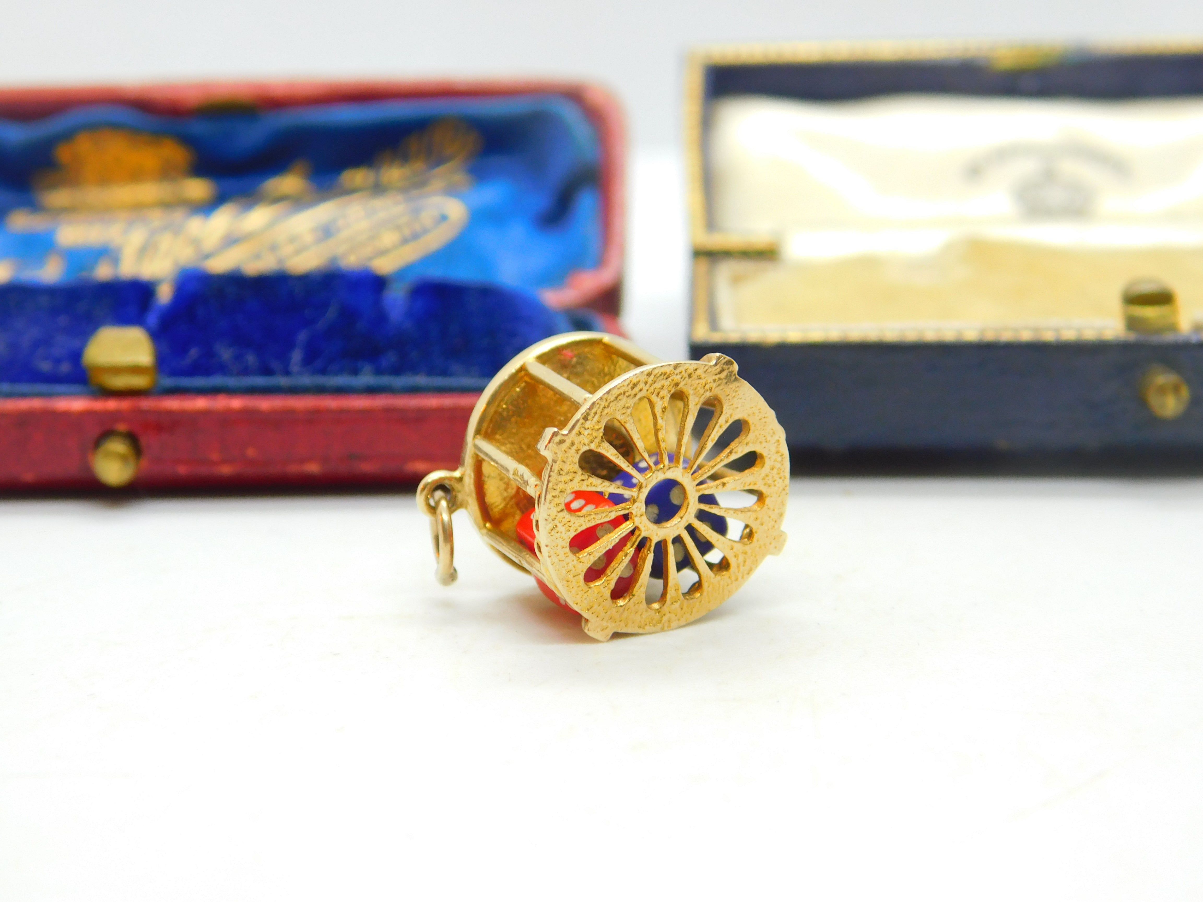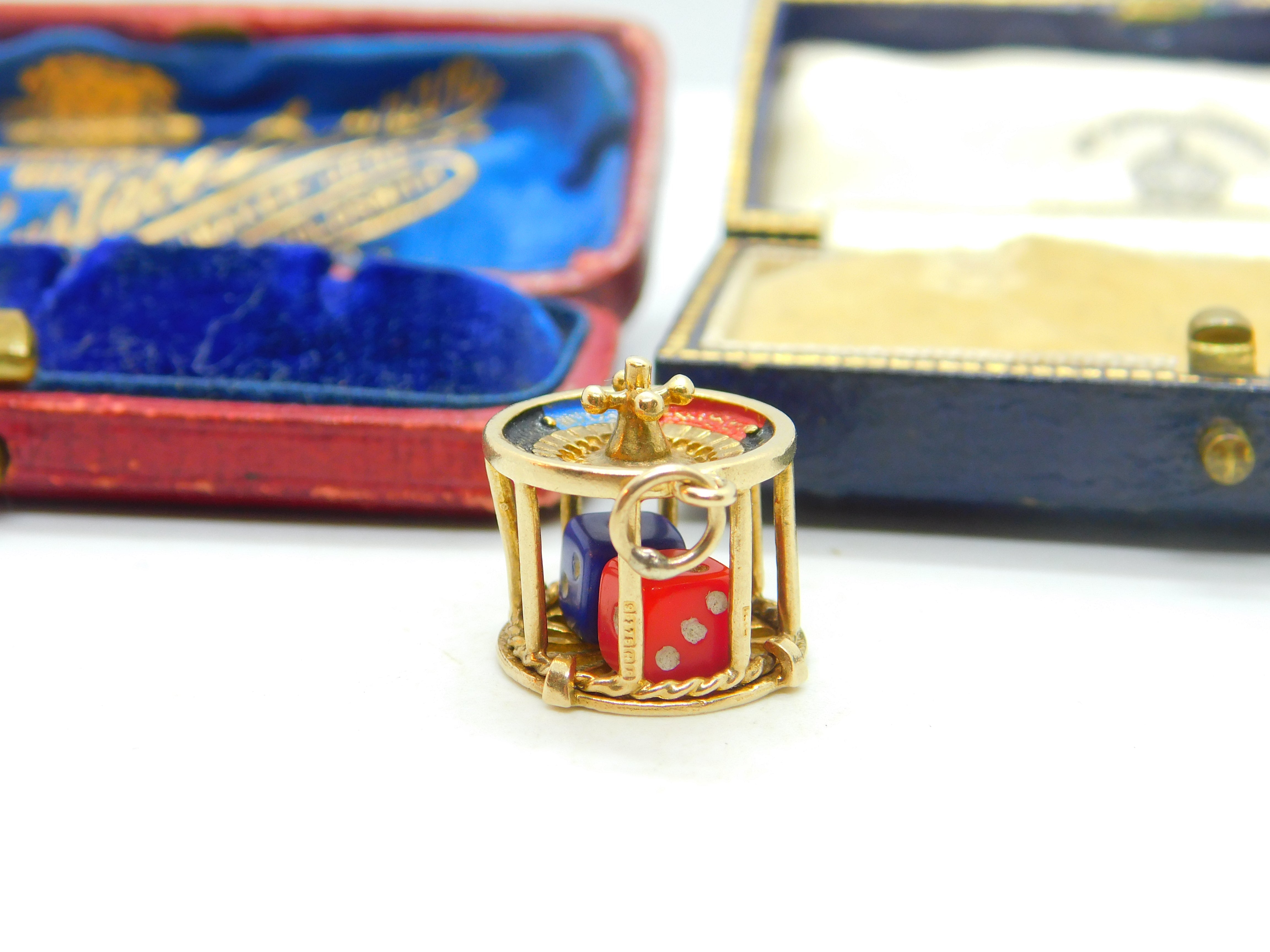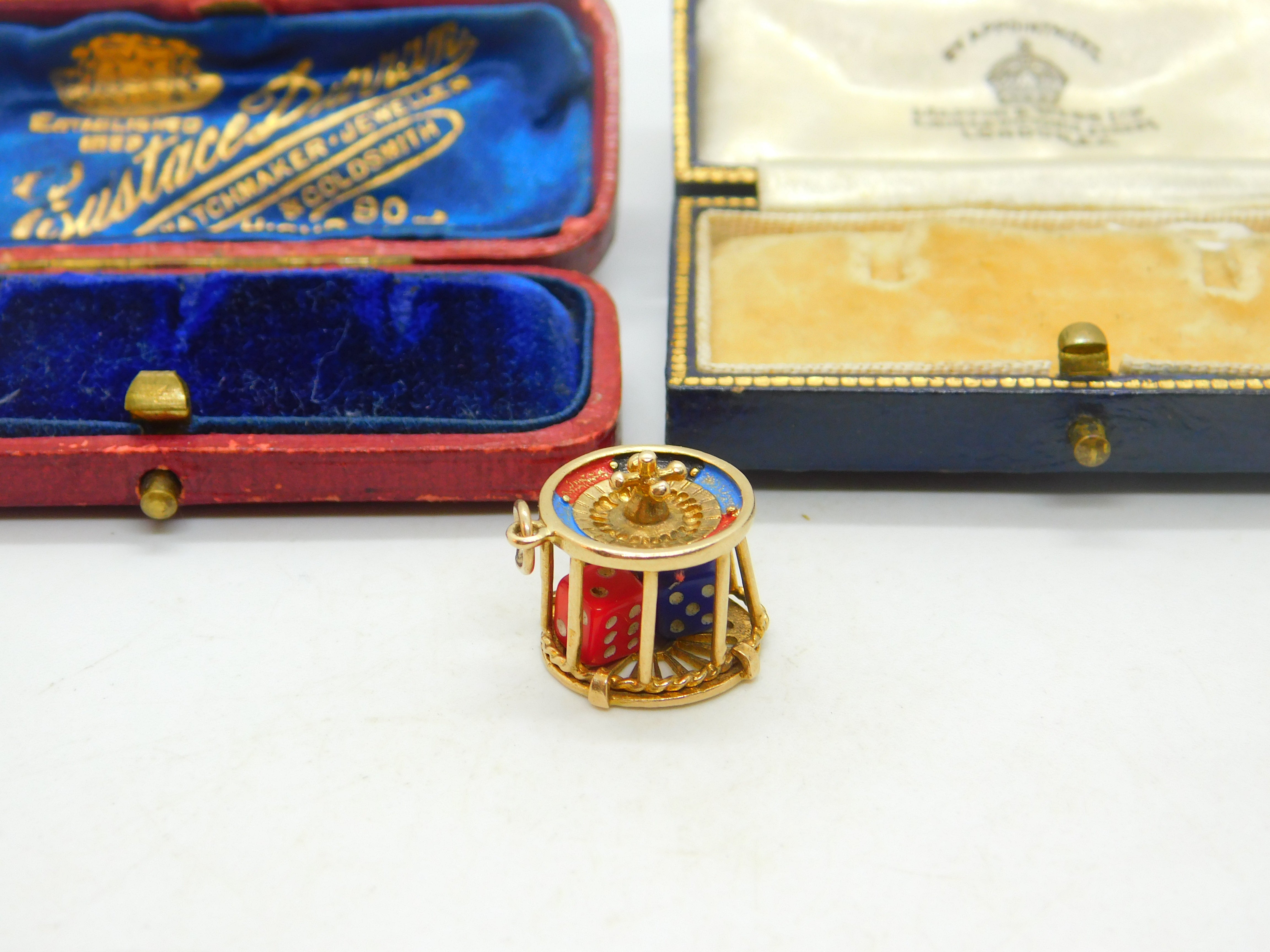 Enamel Roulette Wheel with Dice English 9ct Gold Charm Pendant Vintage 1966