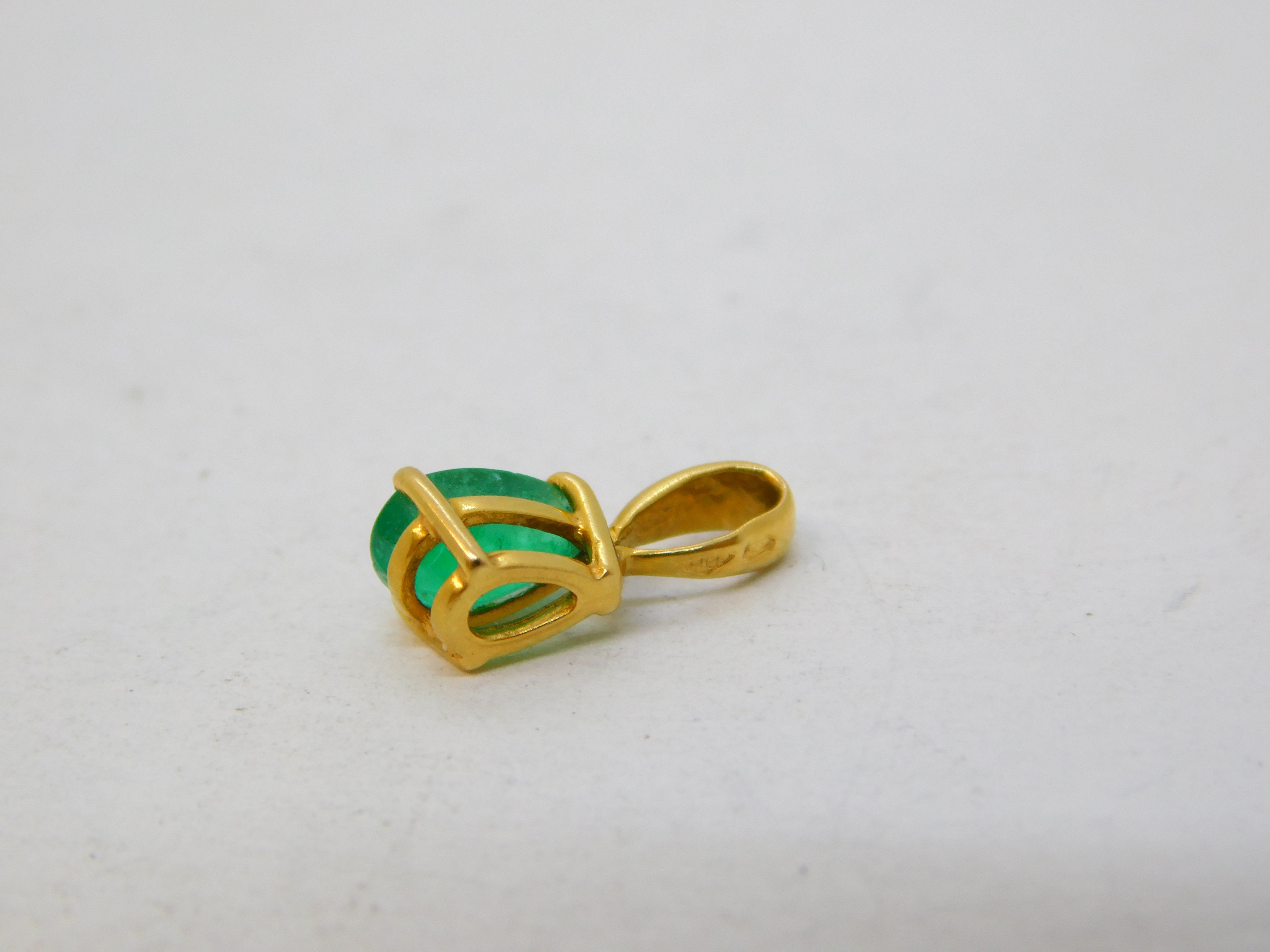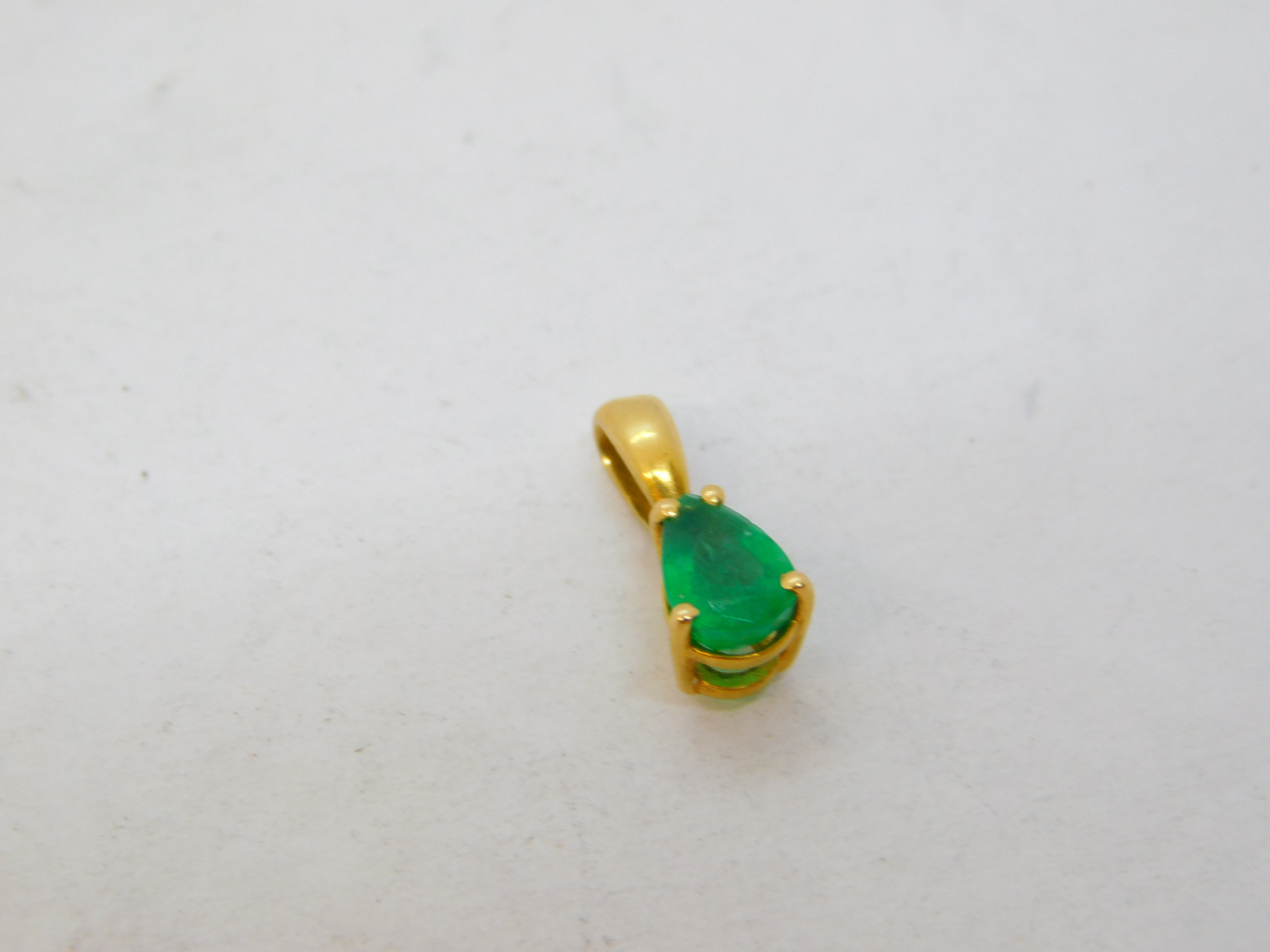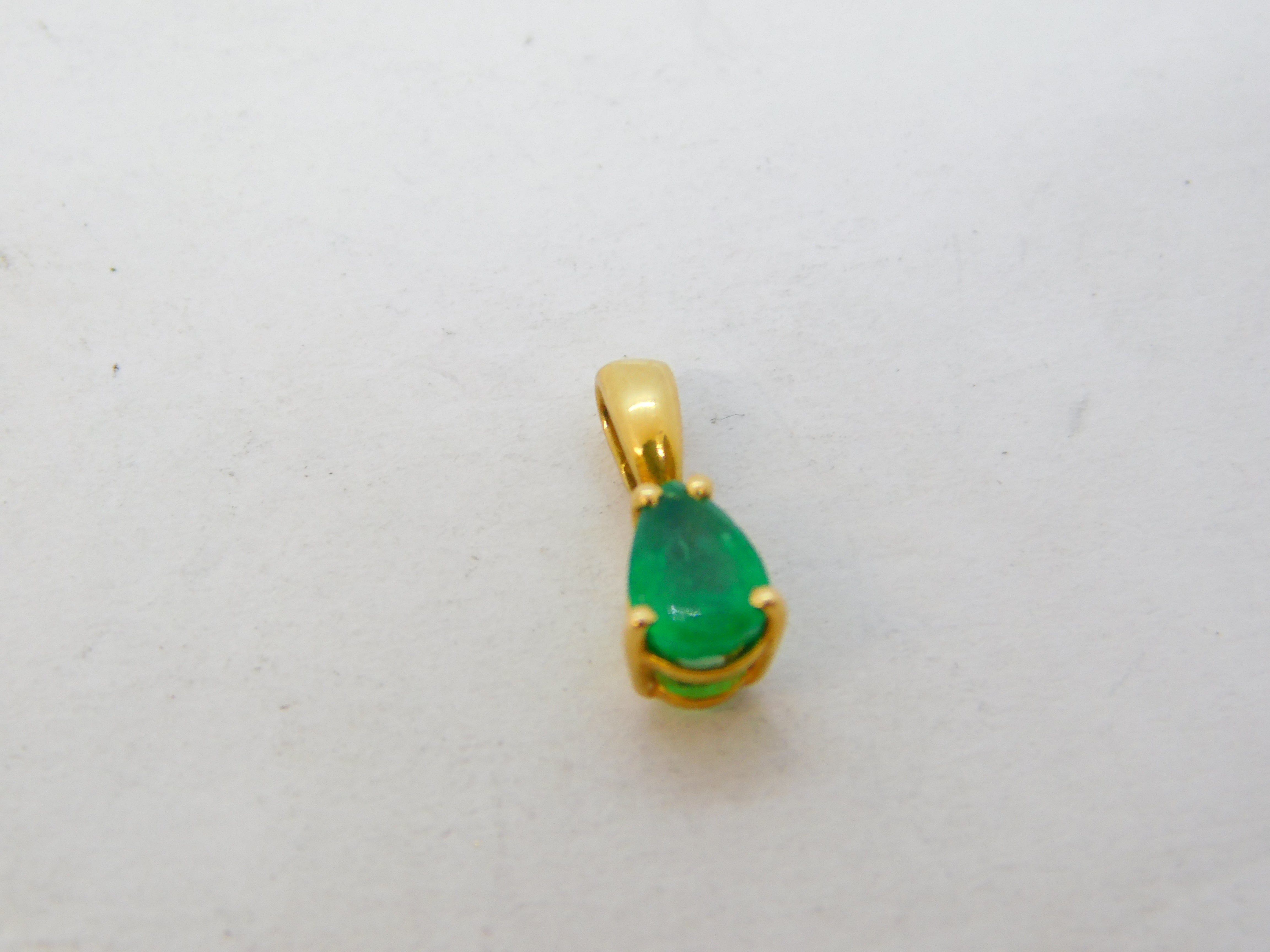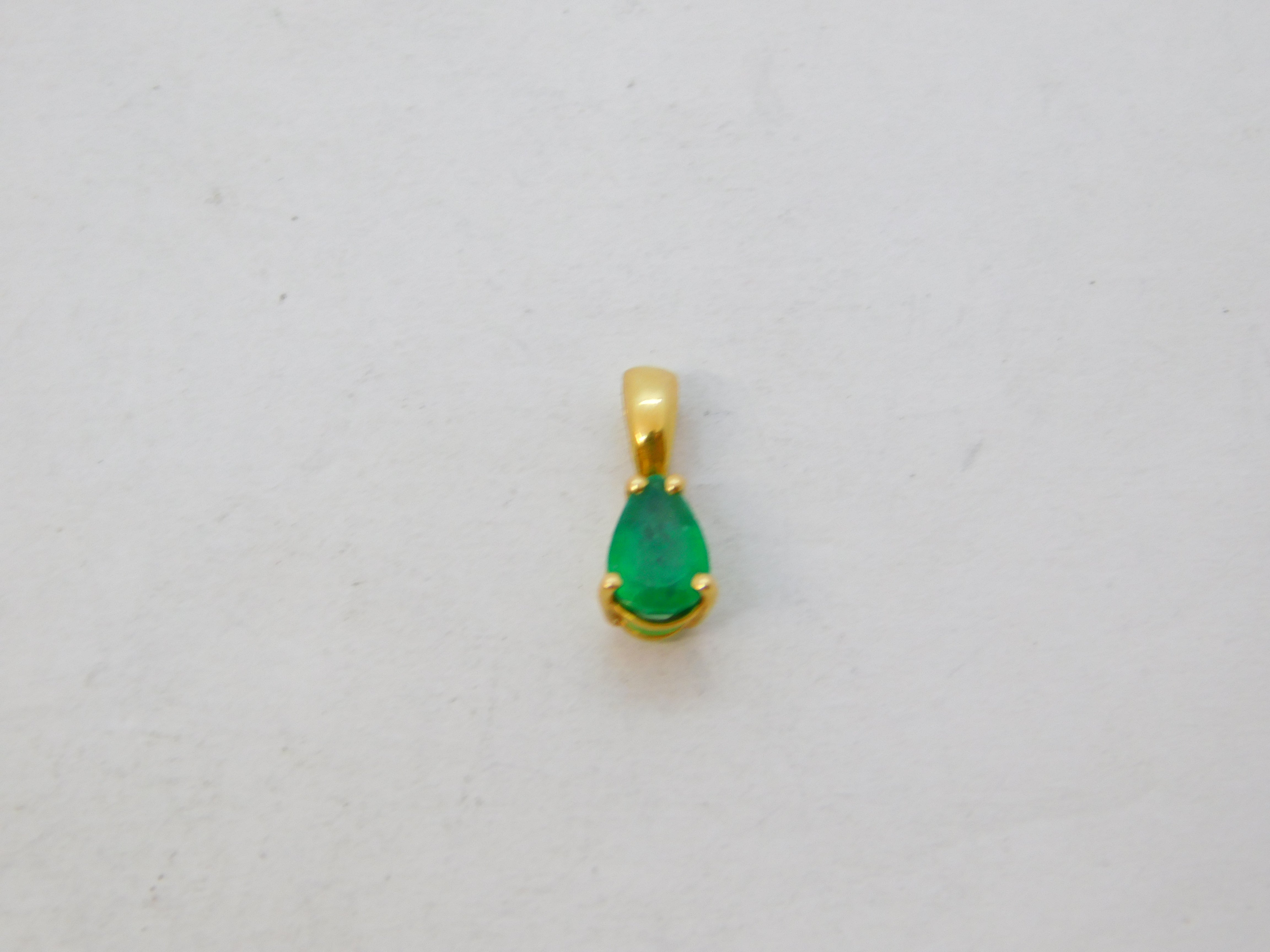 French 18ct Yellow Gold 0.3ct Pear Cut Emerald Drop Pendant Vintage c1960
