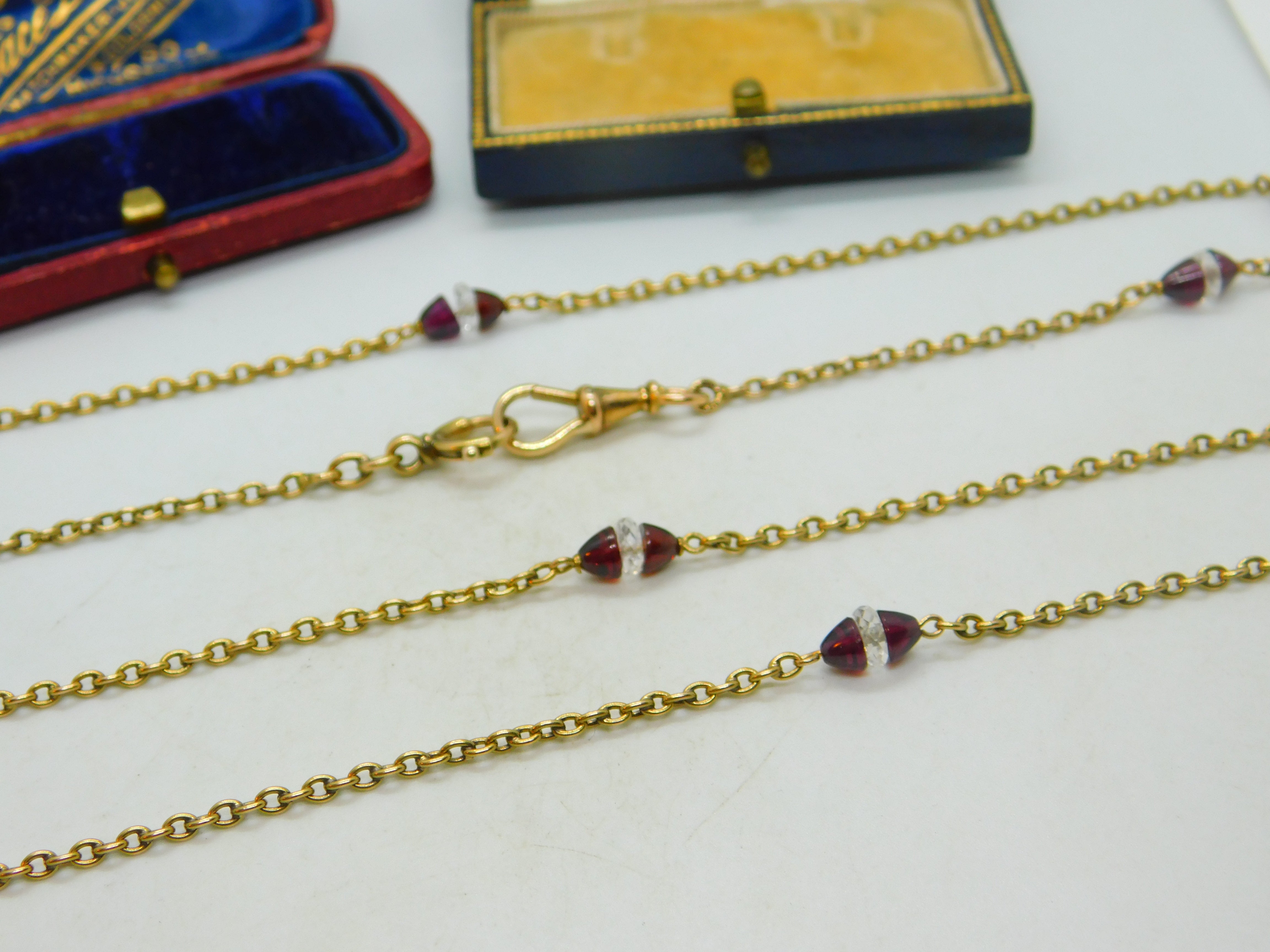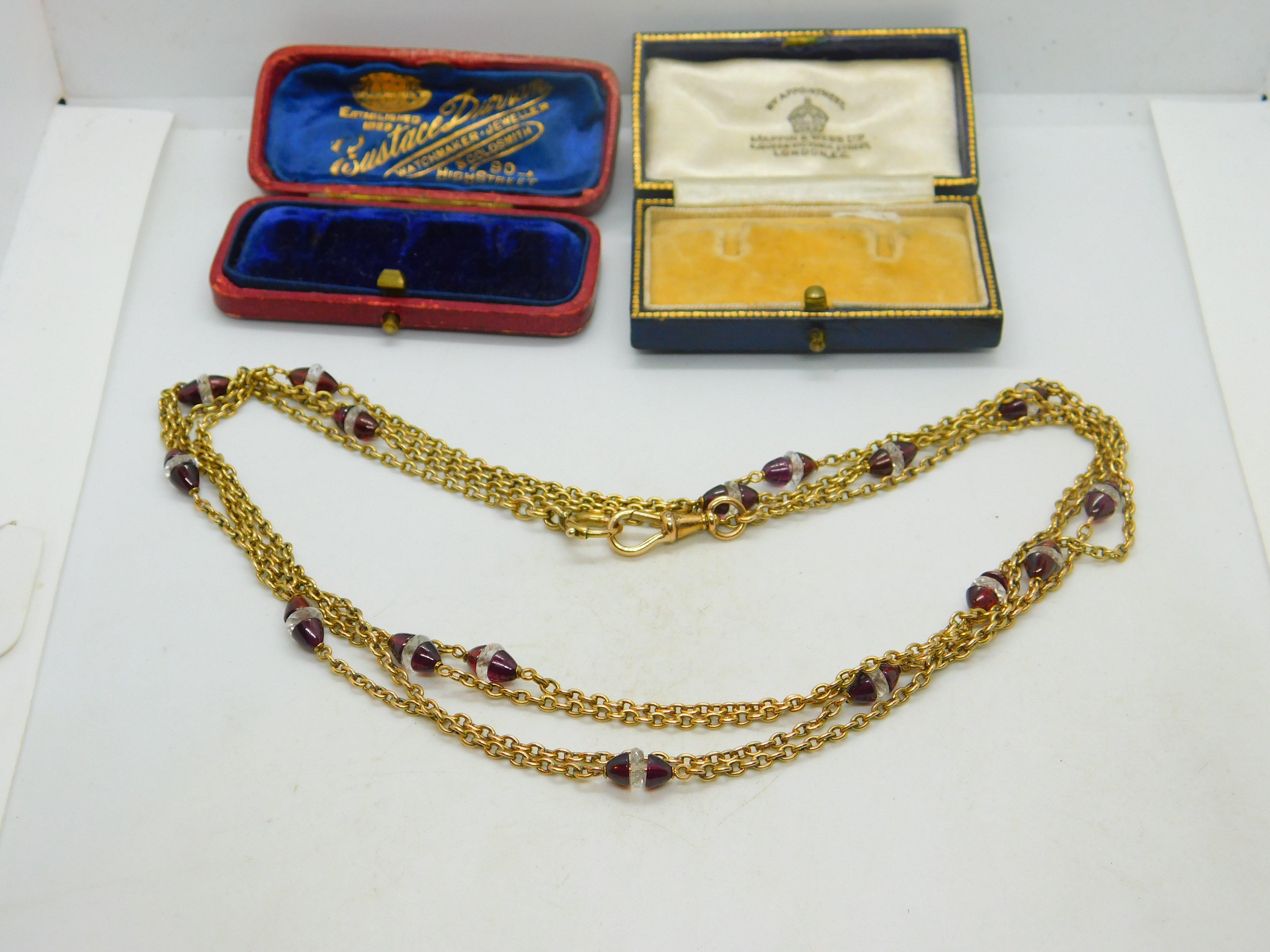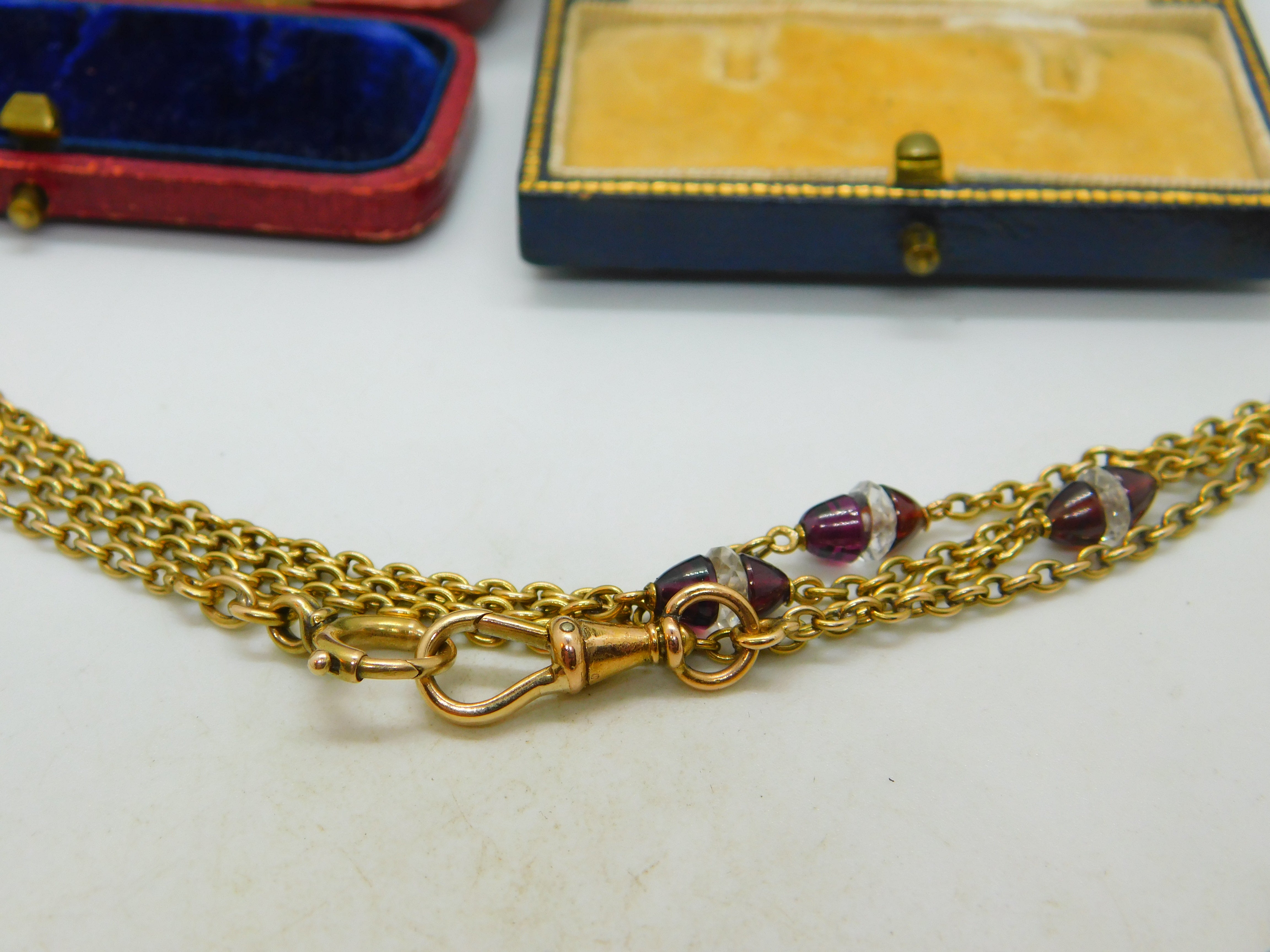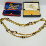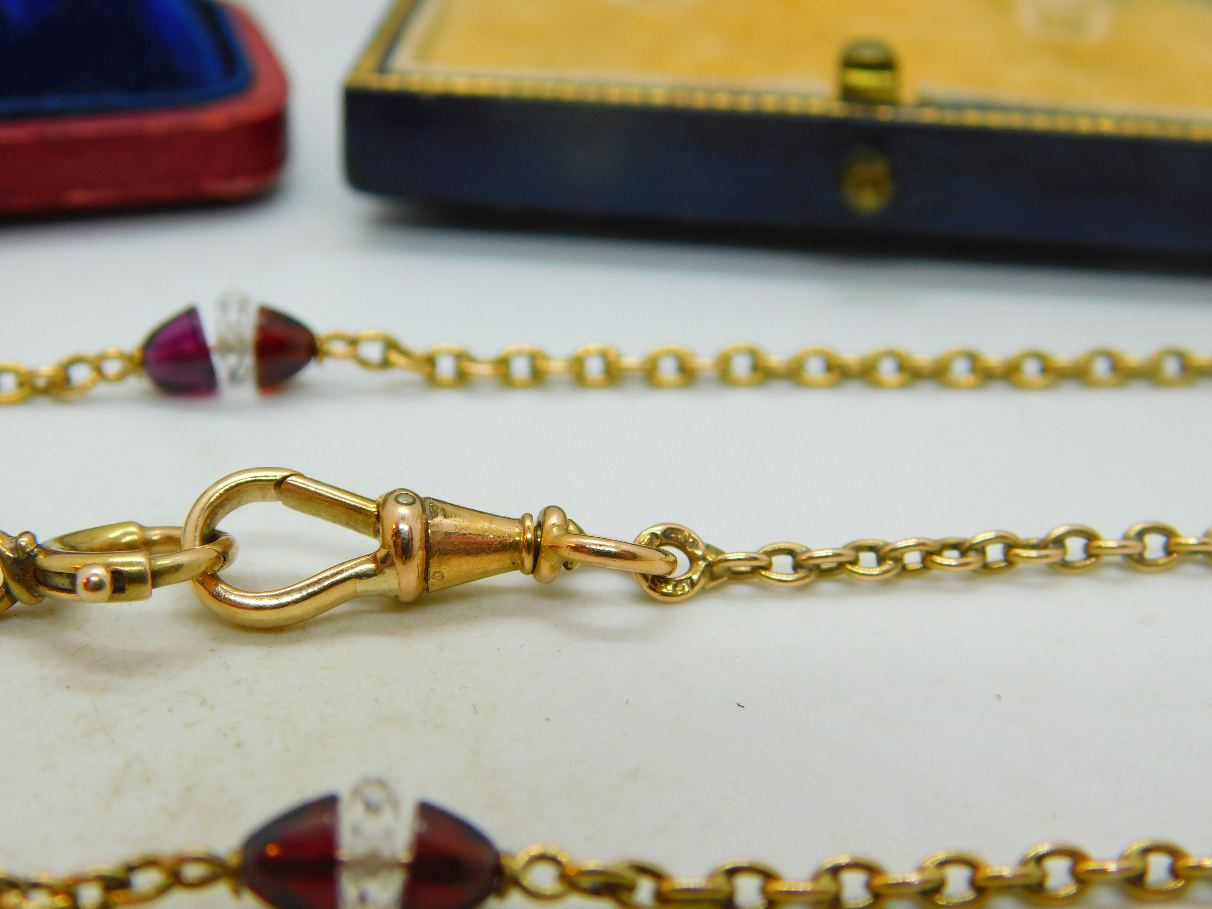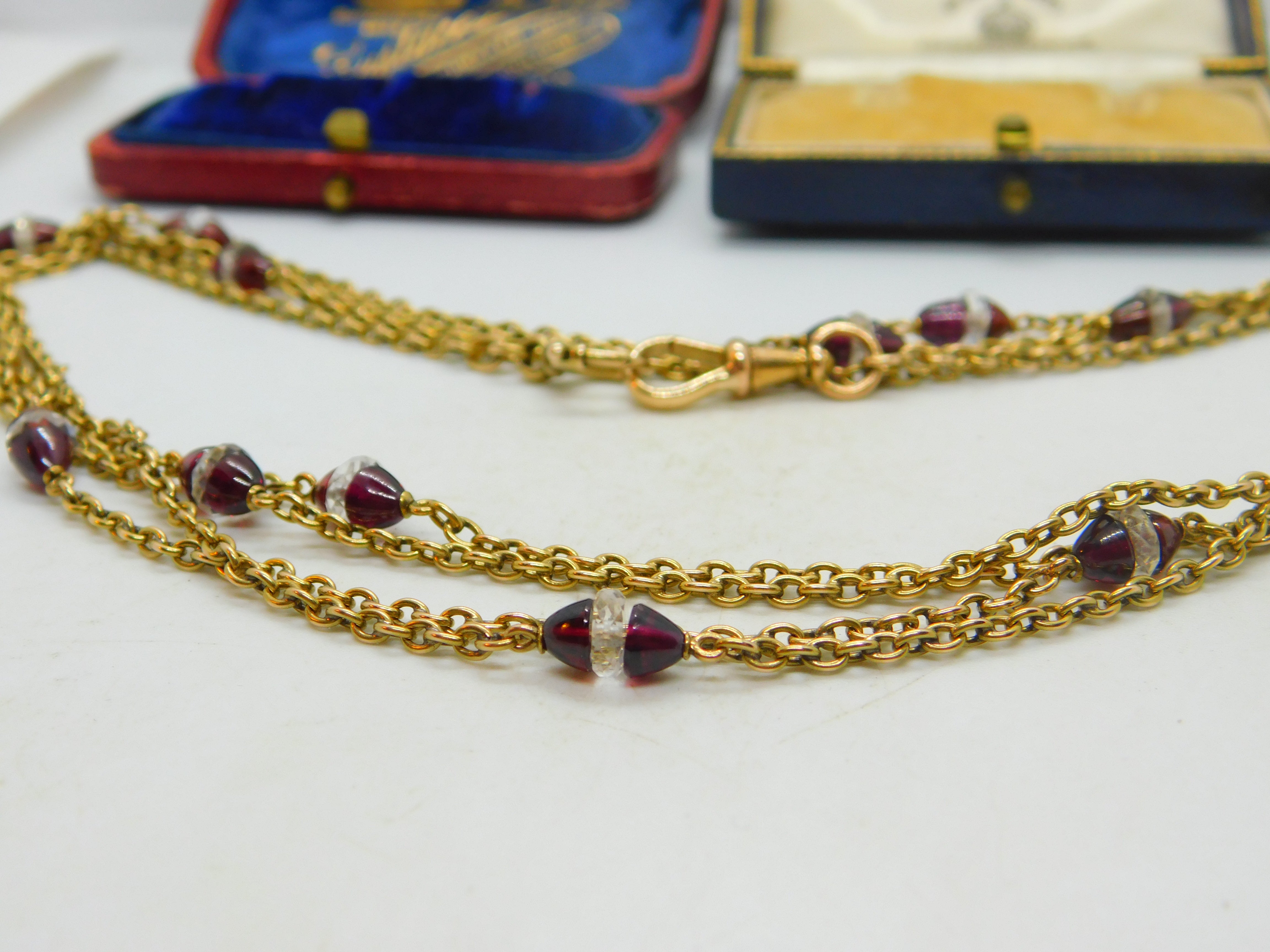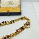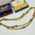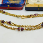 Garnet Rock Crystal 14ct Yellow Gold Long Guard Chain Necklace 160 cm Antique