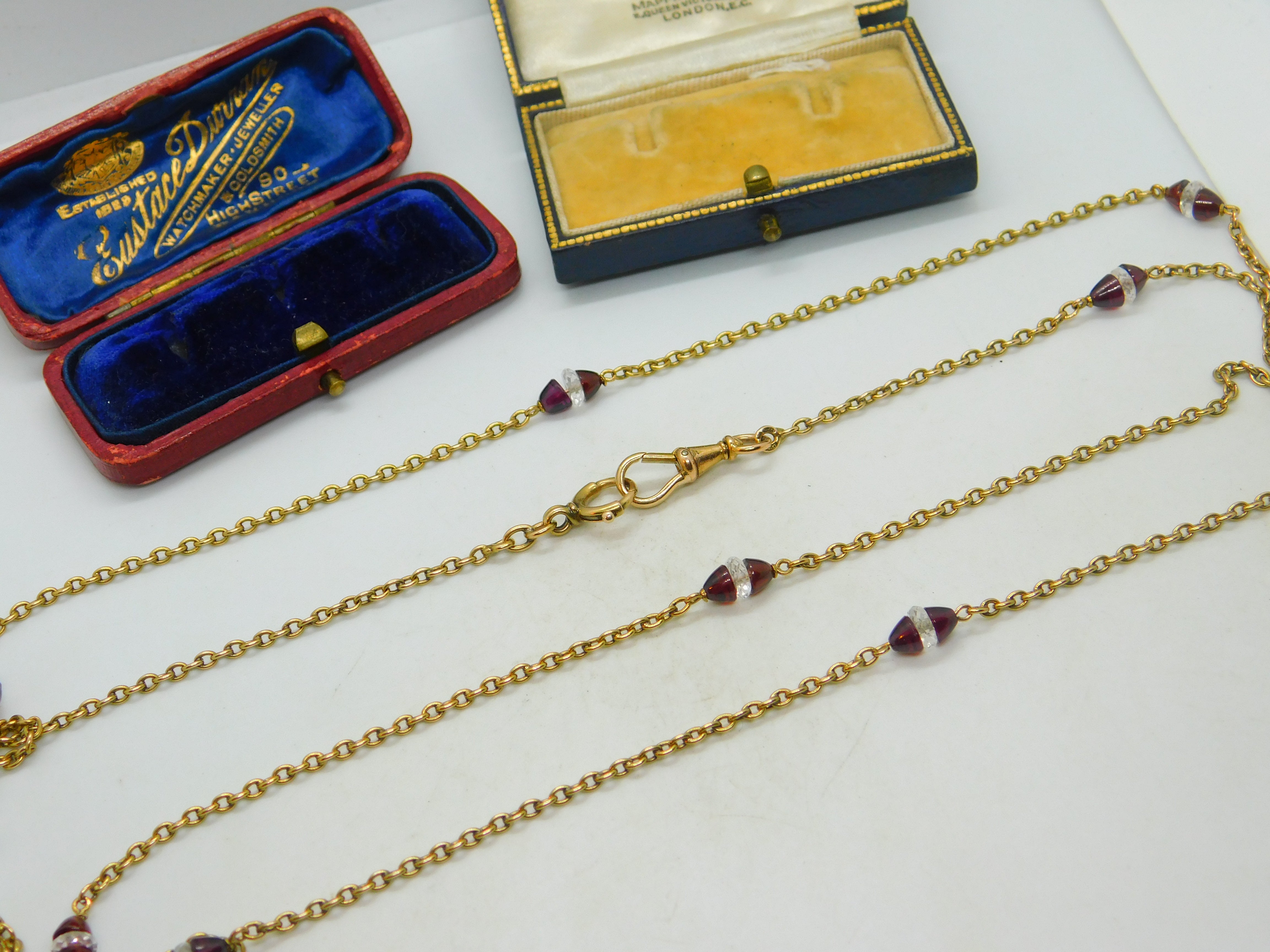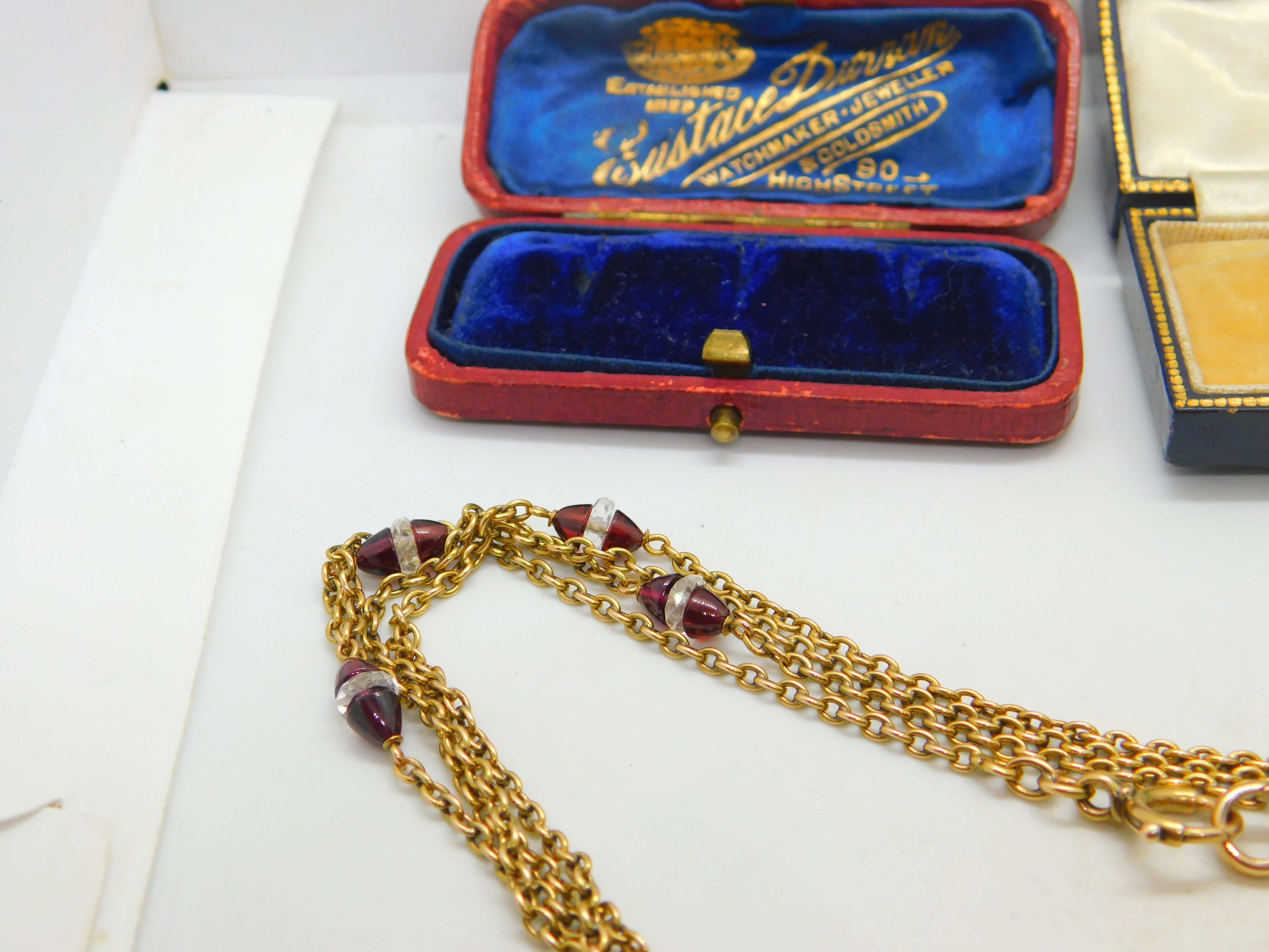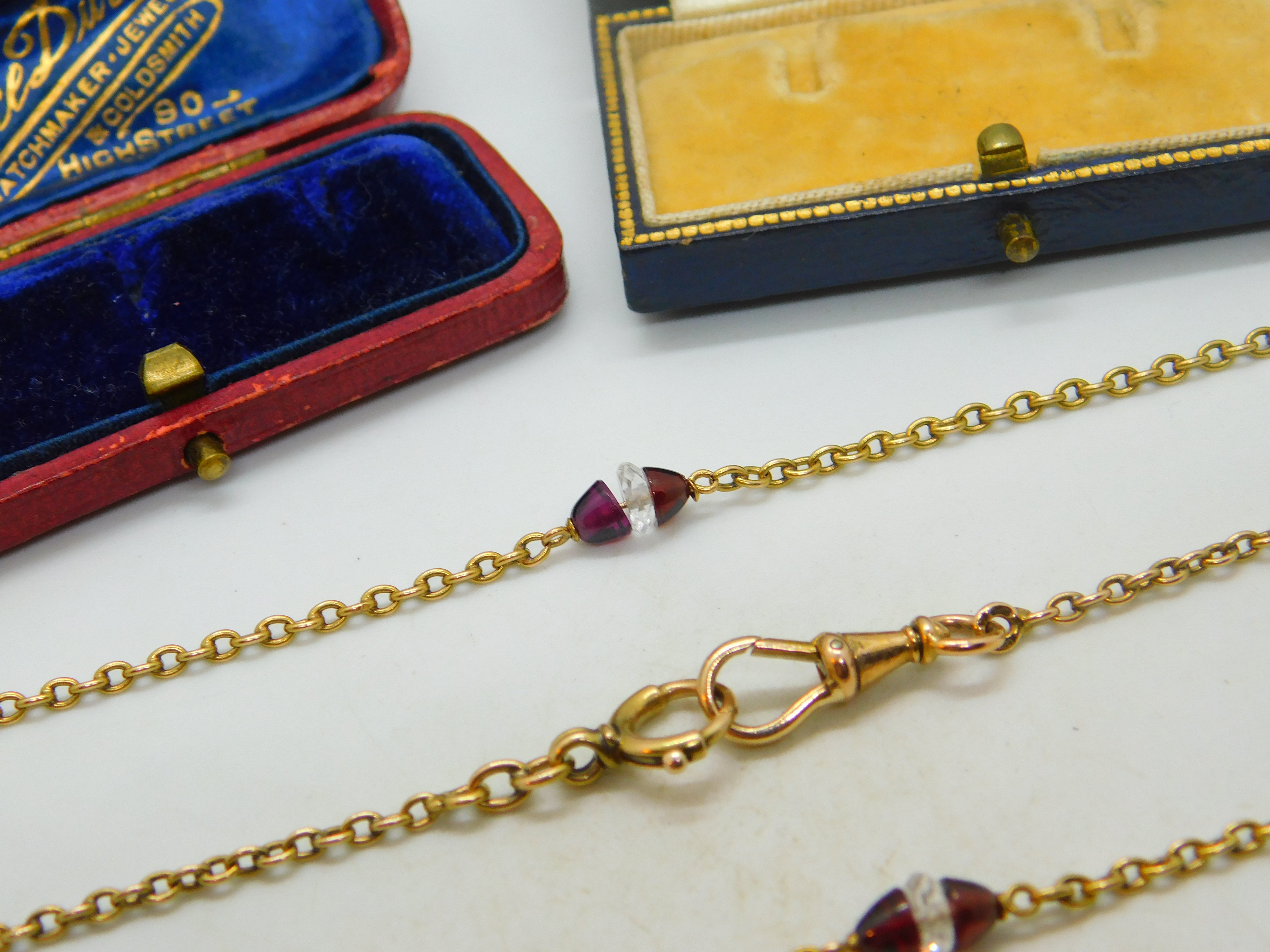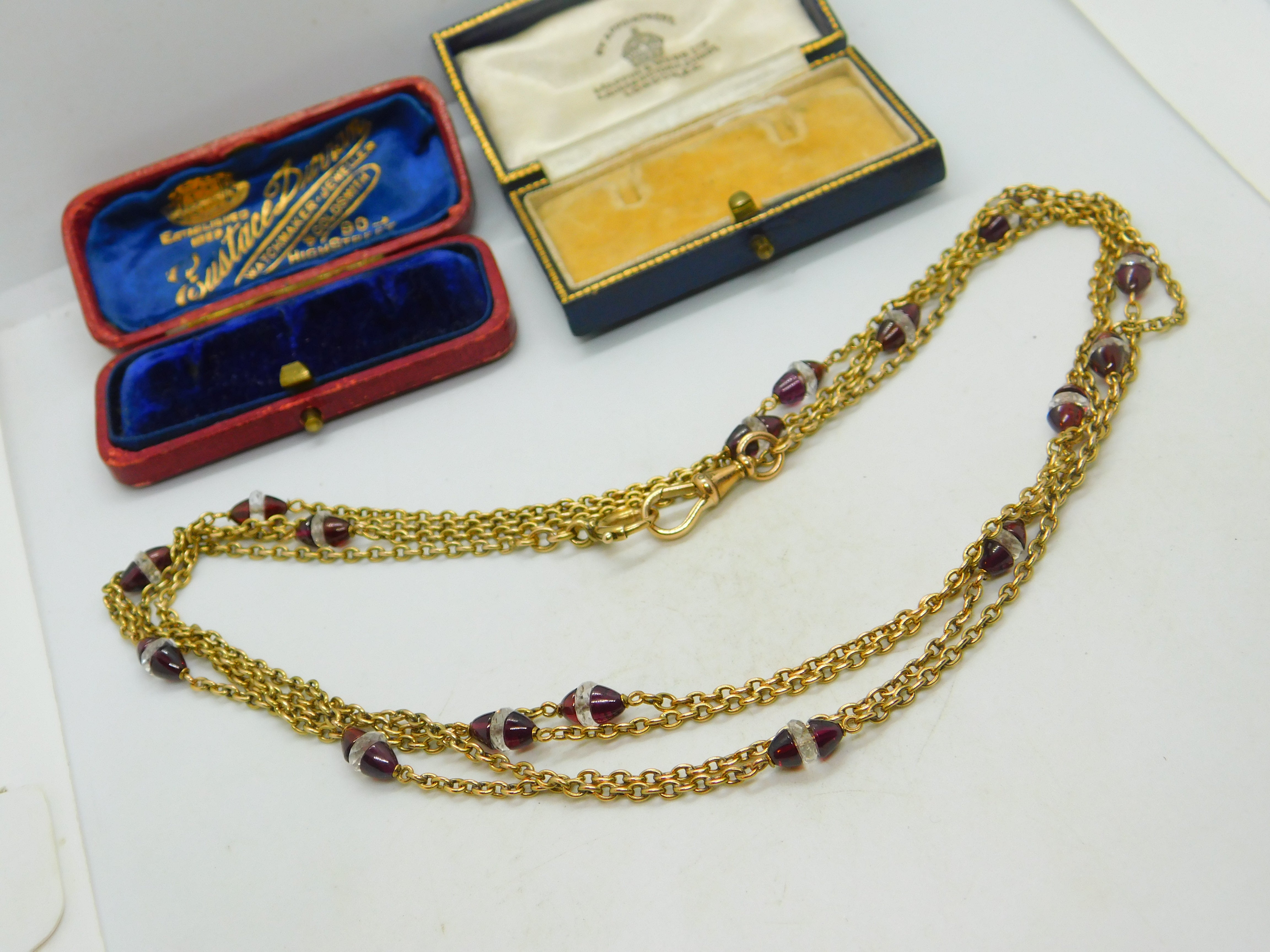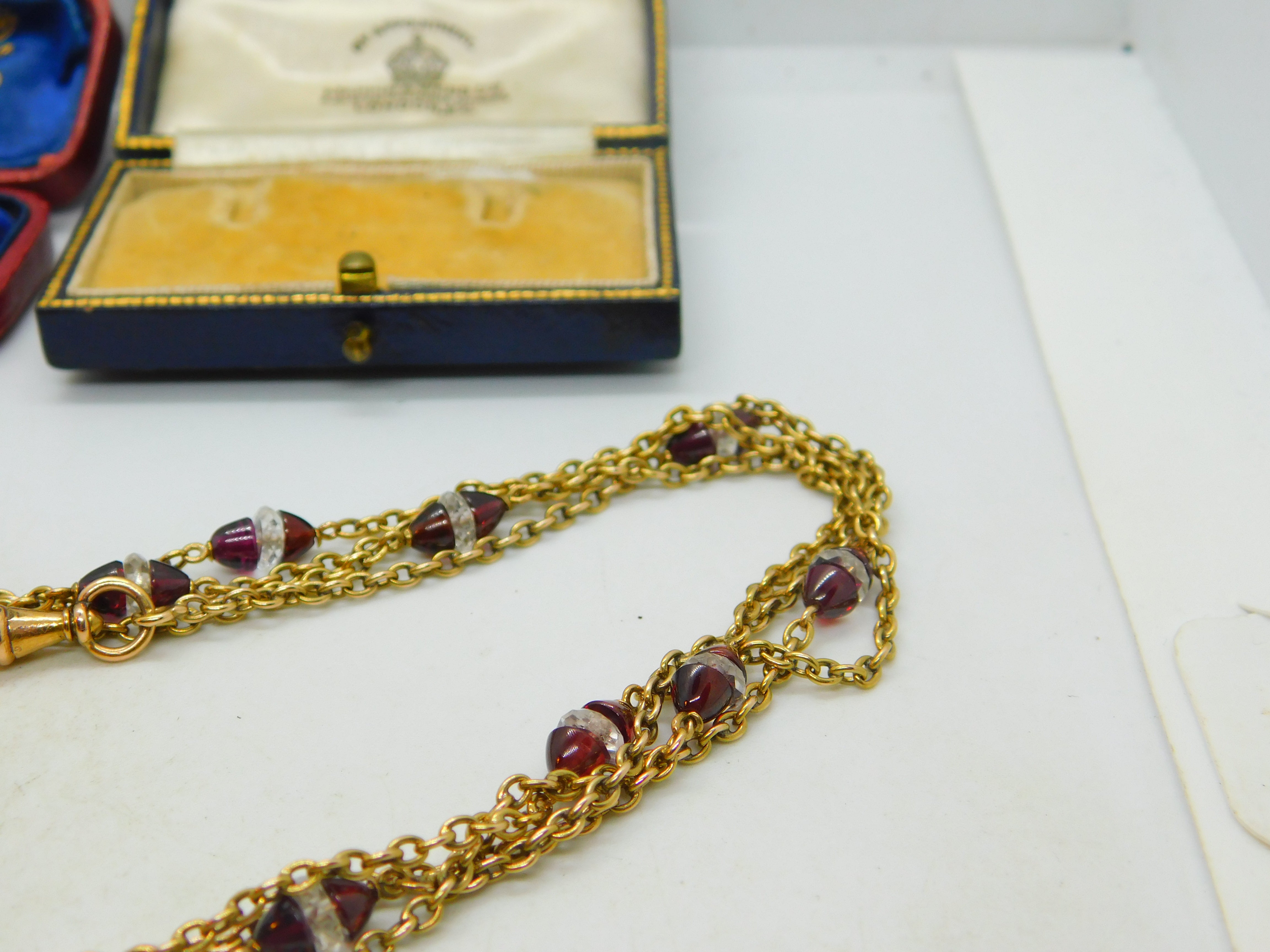 Garnet Rock Crystal 14ct Yellow Gold Long Guard Chain Necklace 160 cm Antique