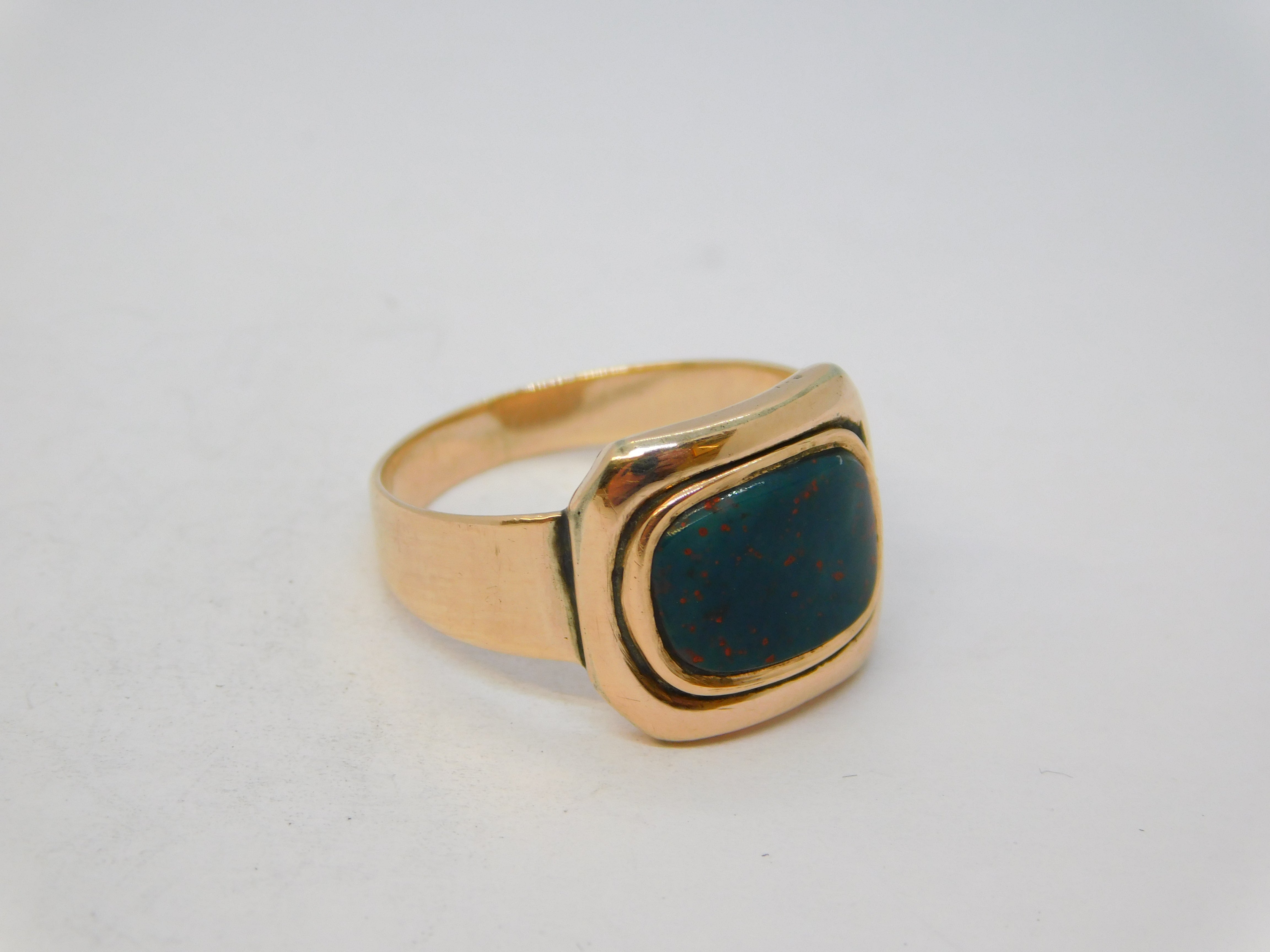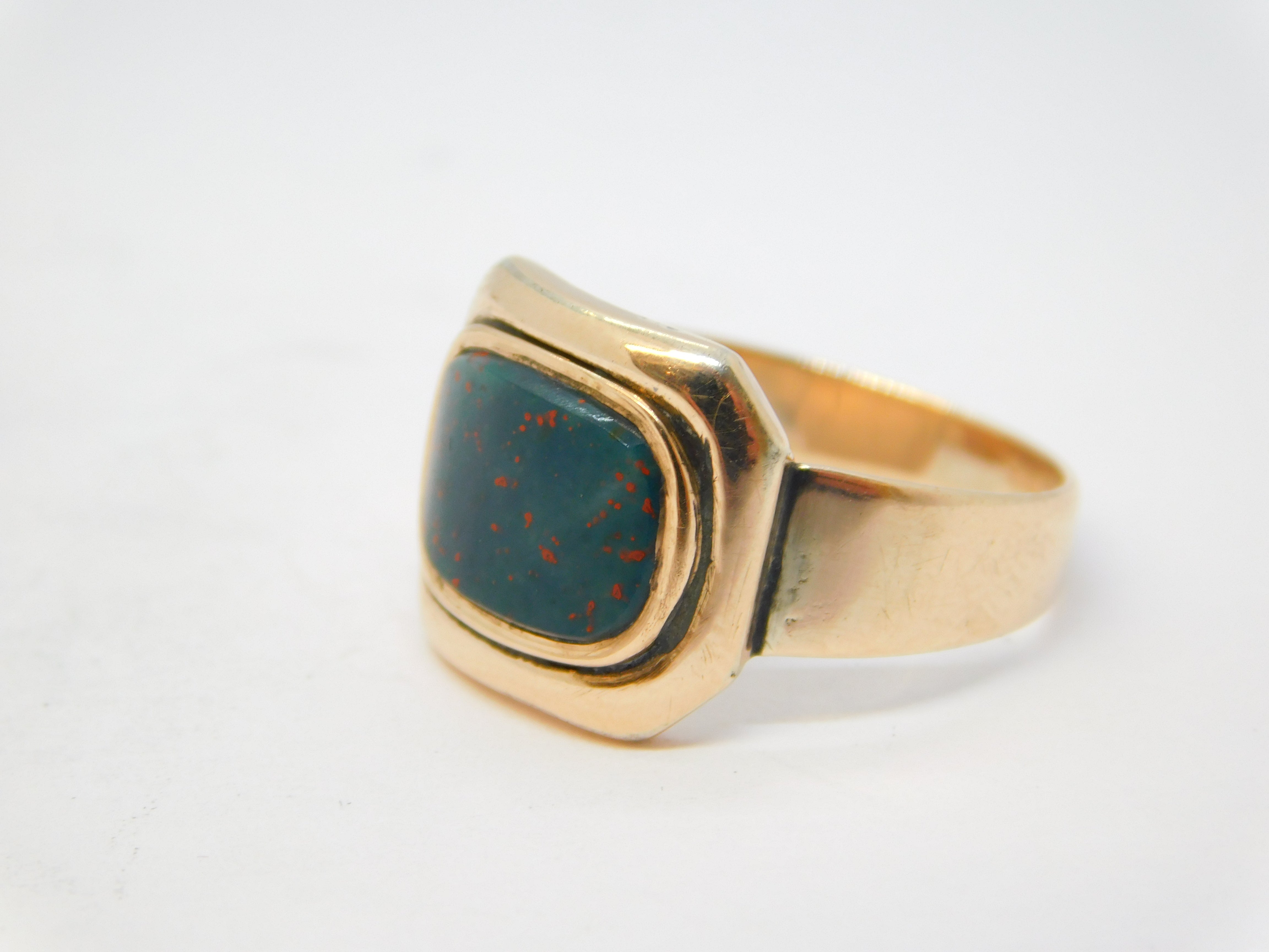 George III 9ct Rose Gold Bloodstone Set Mourning Ring Antique c1800