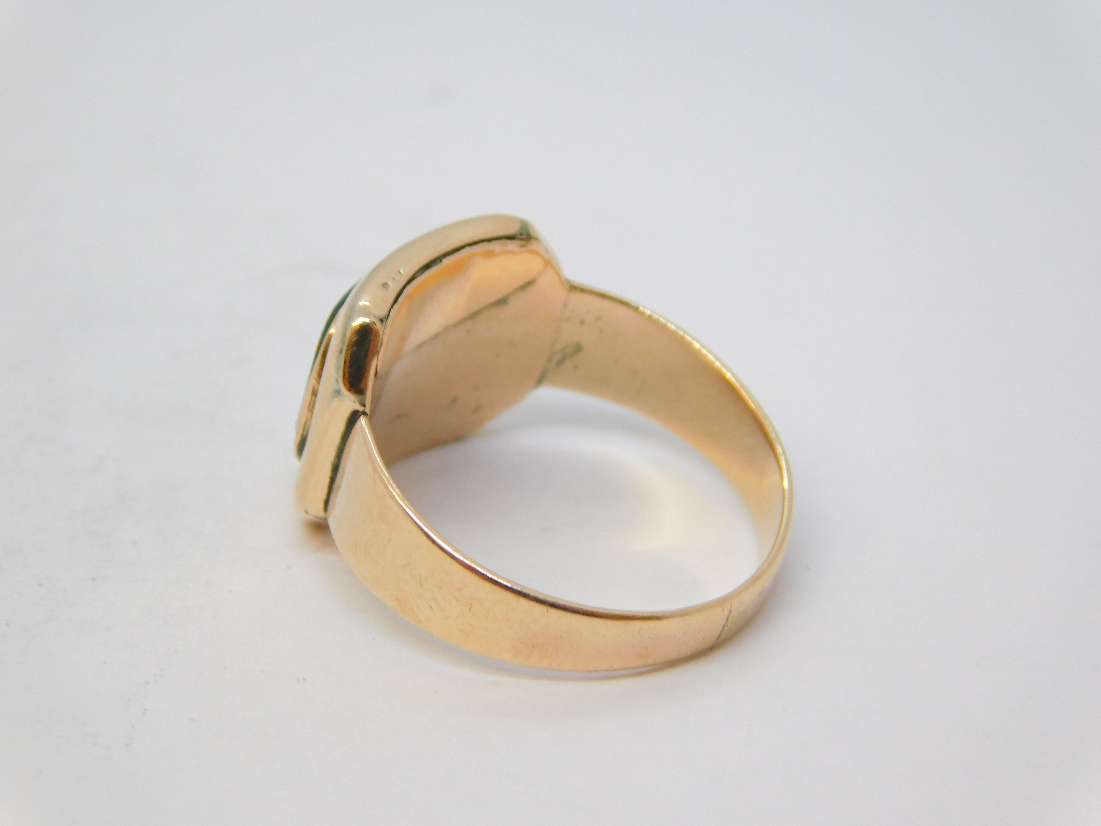 Details: A fantastic and wonderfully designed antique georgian 9ct rose gold mourning ring or signet ring set with a central bloodstone panel c1800, the gold has been XRF tested as it is unmarked, minor repair to the reverse of the ring. This is a wonderful item that would make a perfect gift or addition to any collection.