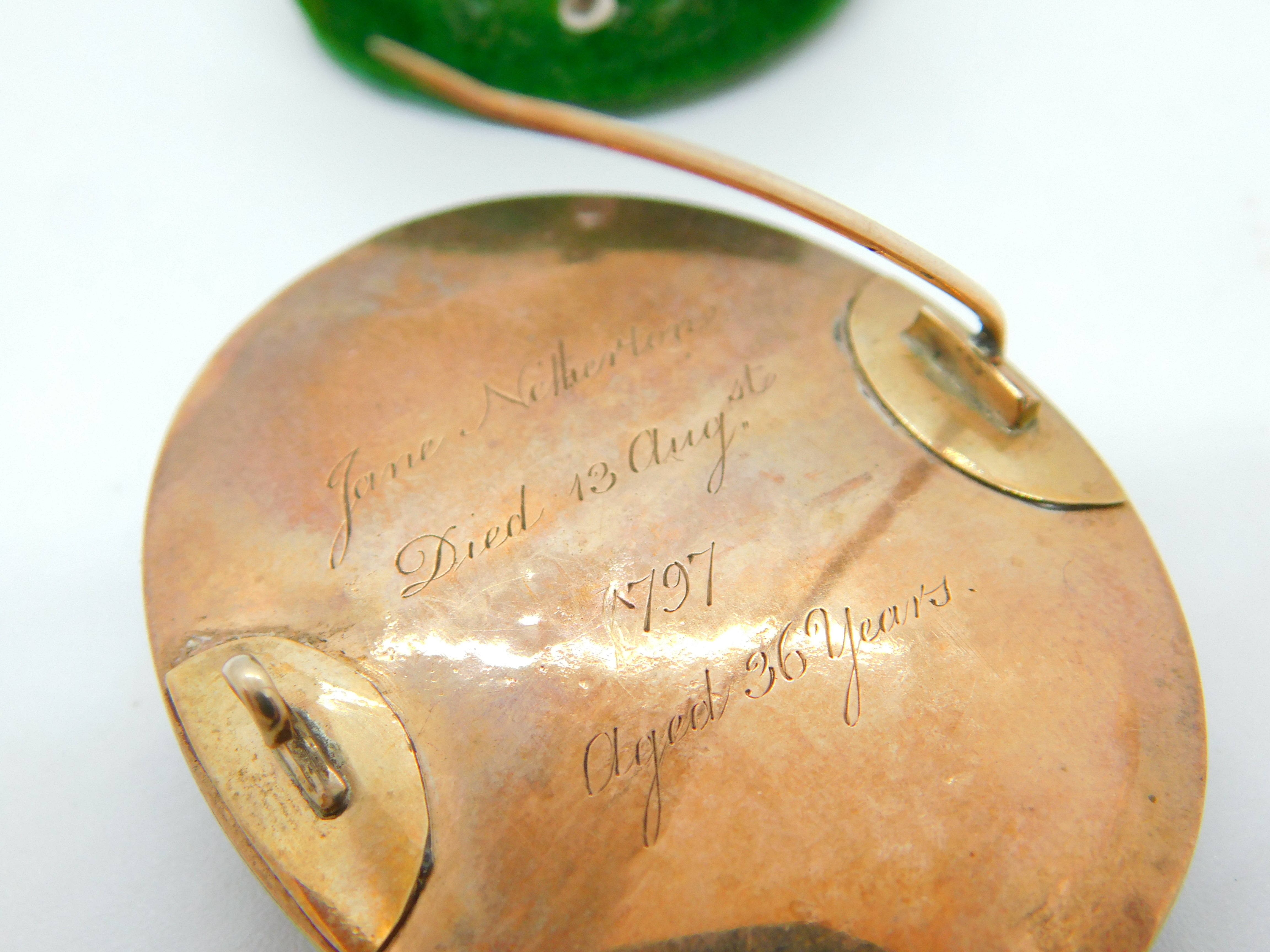 George III 9ct Rose Gold, Enamel, Mourning Brooch 'Jane Neitherton' Antique 1797