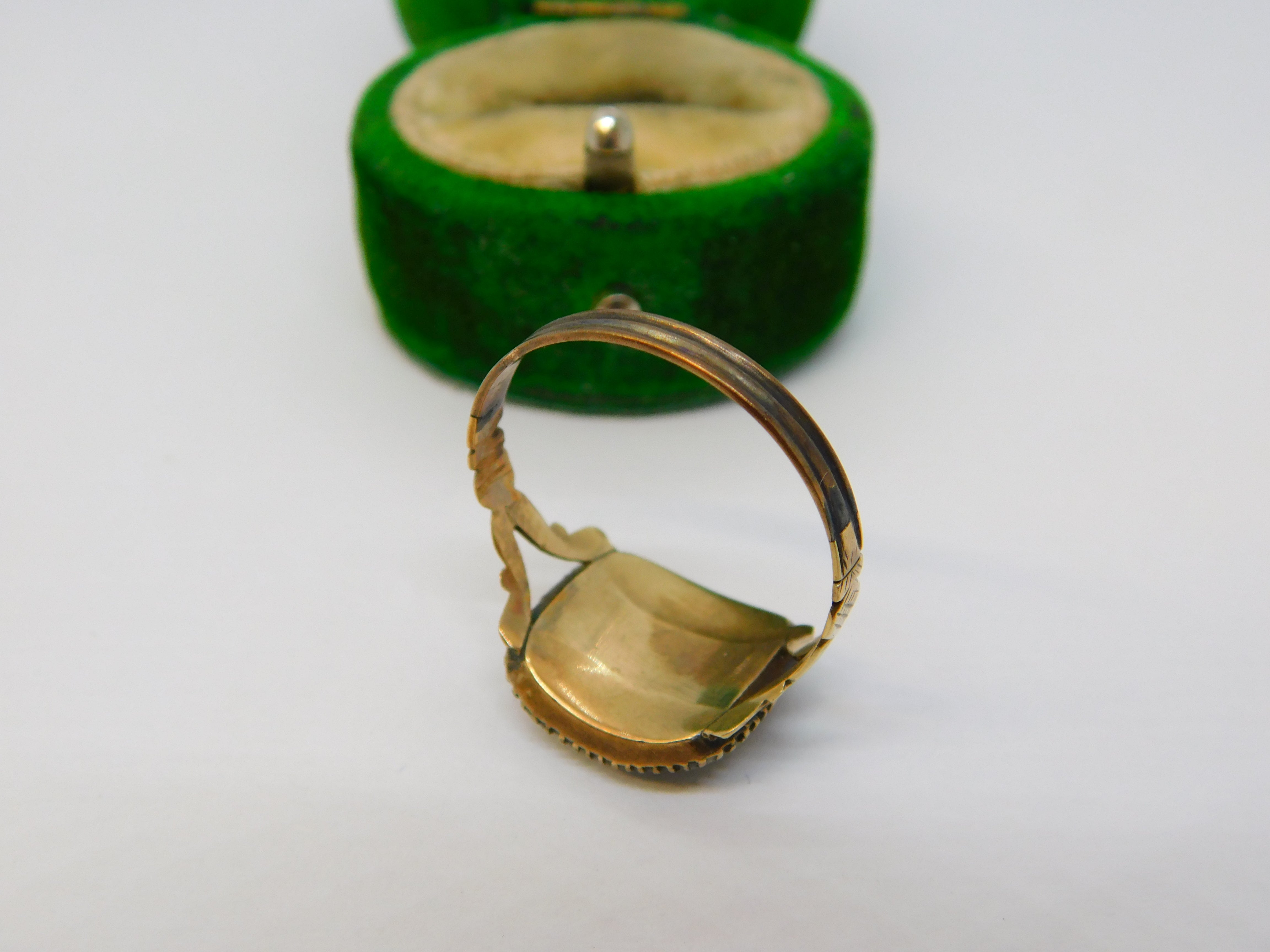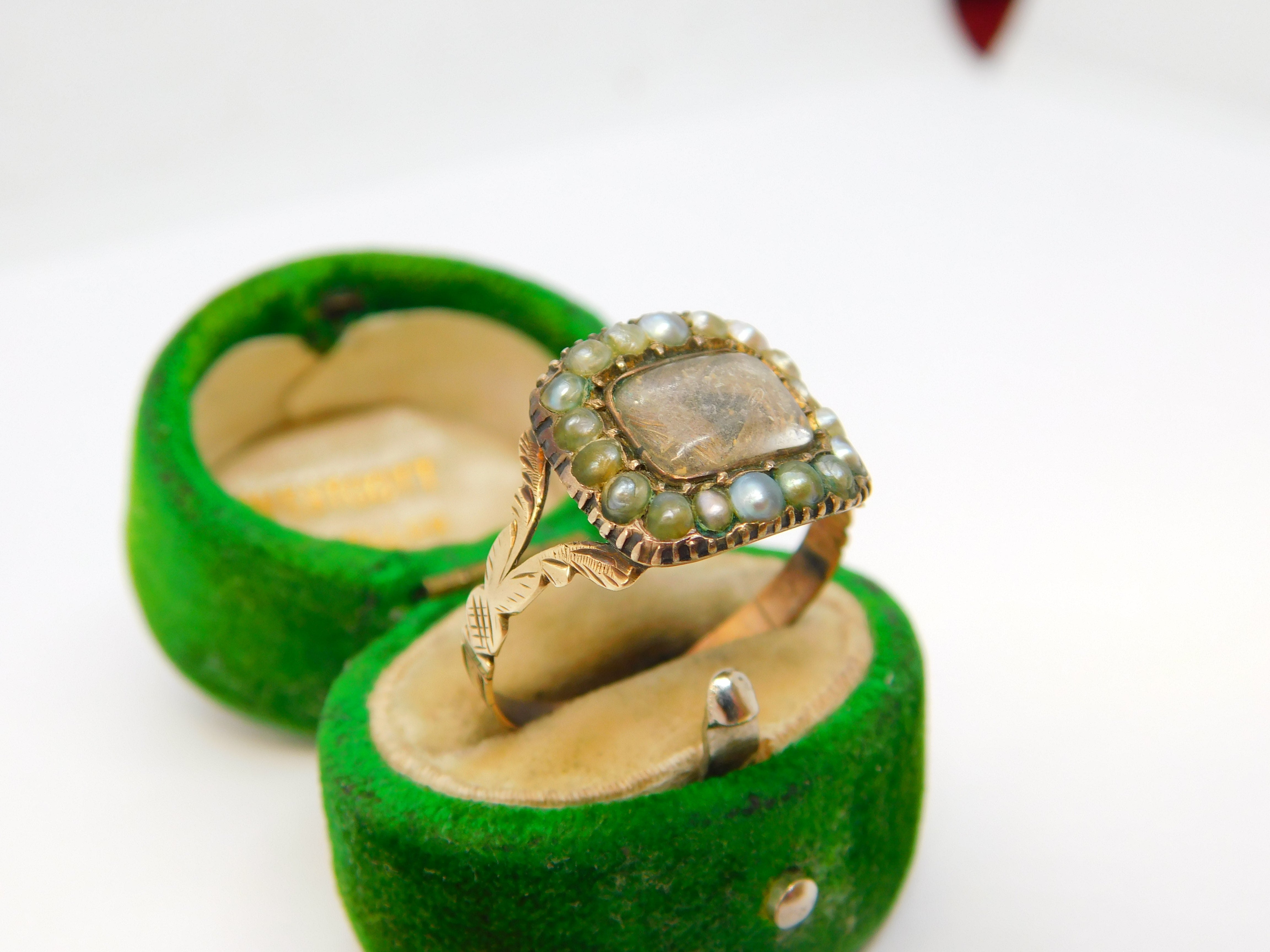 George III 9ct Rose Gold, Seed Pearl & Hair Set Mourning Ring Antique c1800