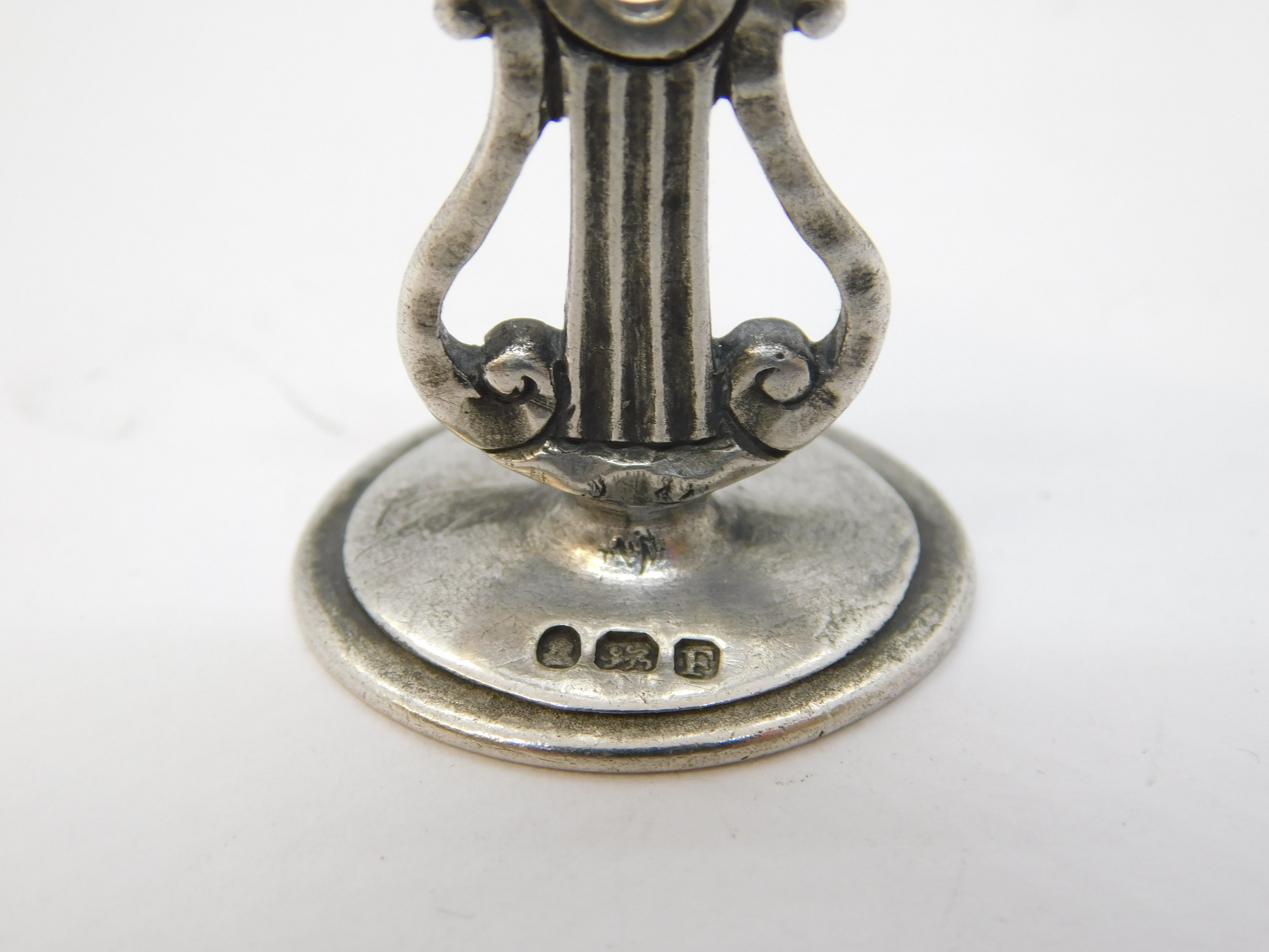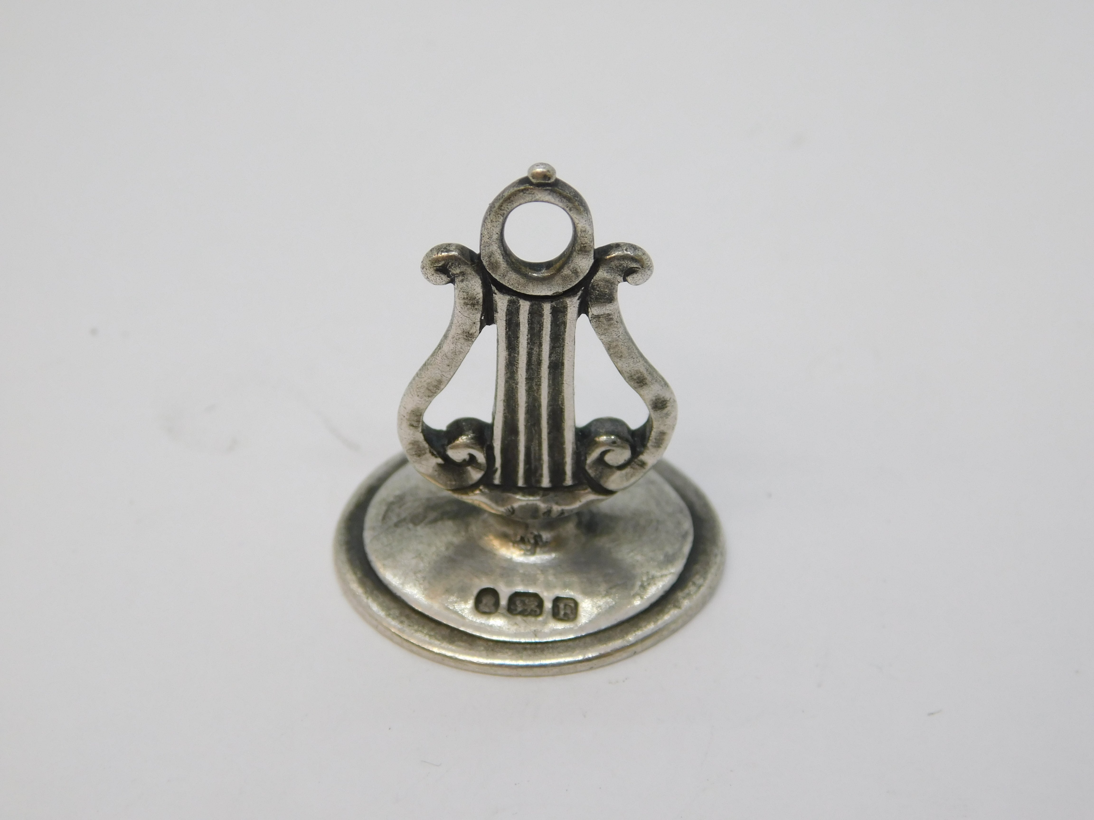 George III Sterling Silver Novelty Harp Form Monogram Fob Seal Antique 1801 London
