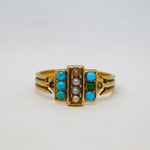 George IV 15ct Yellow Gold, Seed Pearl & Turquoise Dress Ring Antique c1830