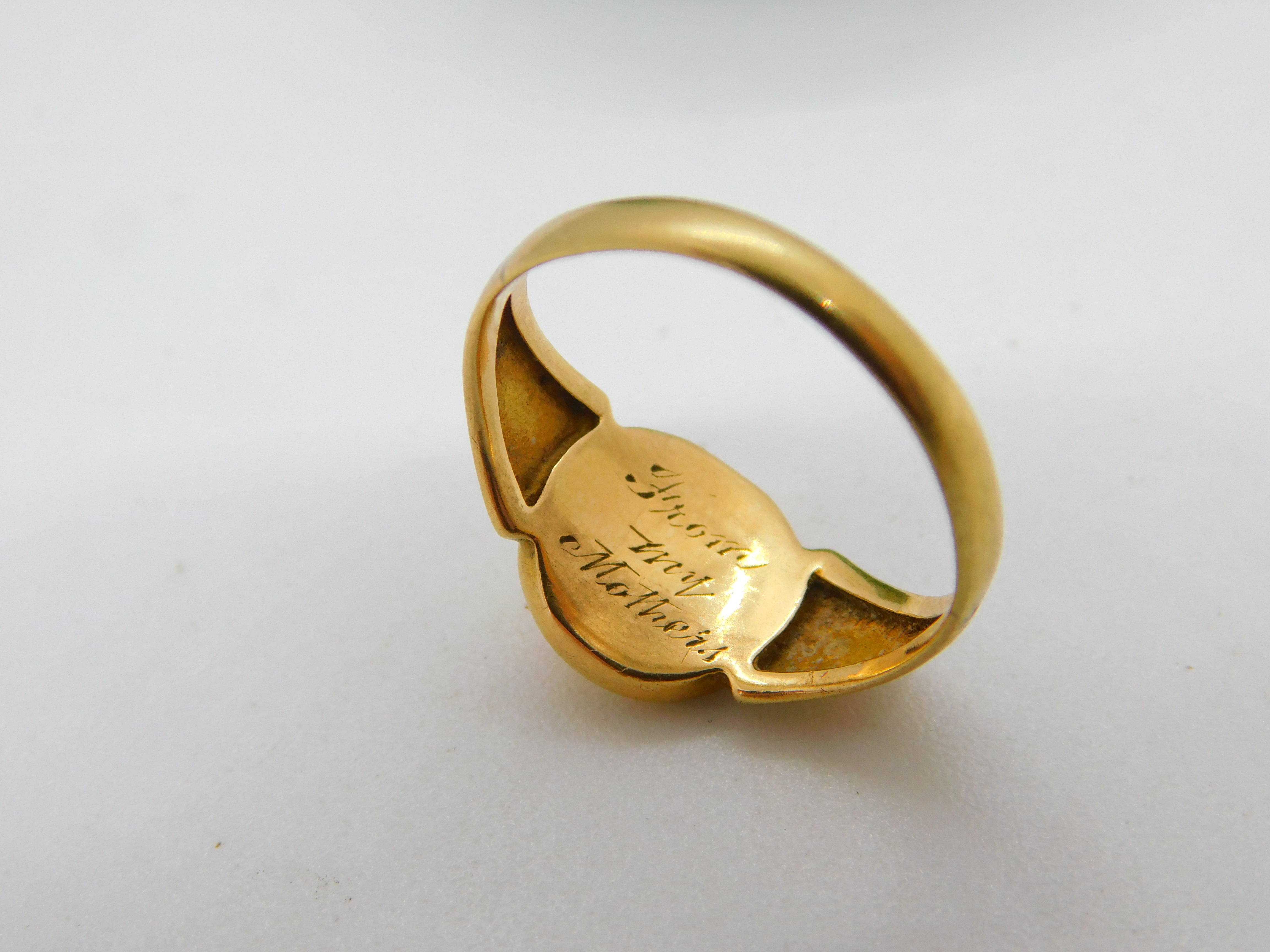 George IV 18ct Yellow Gold 'From My Mother' Mourning Signet Ring Antique c1830