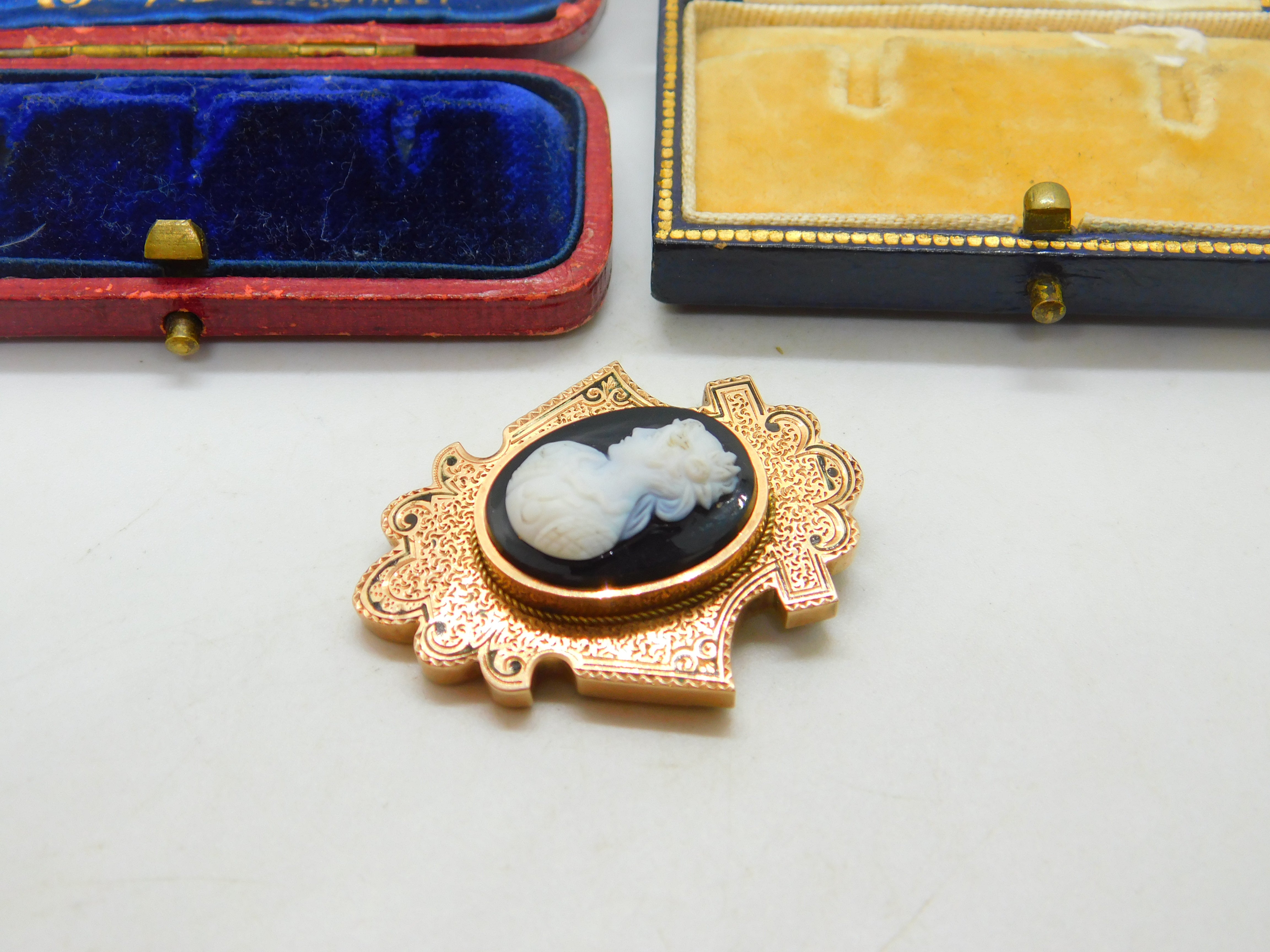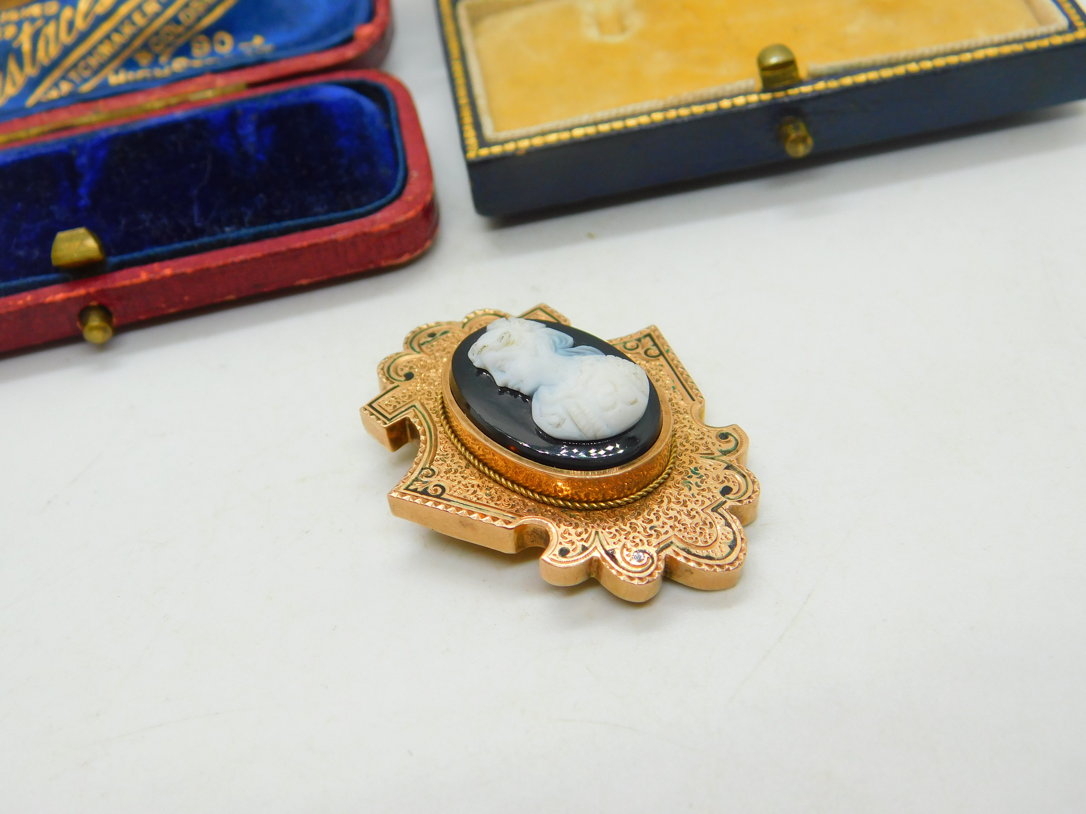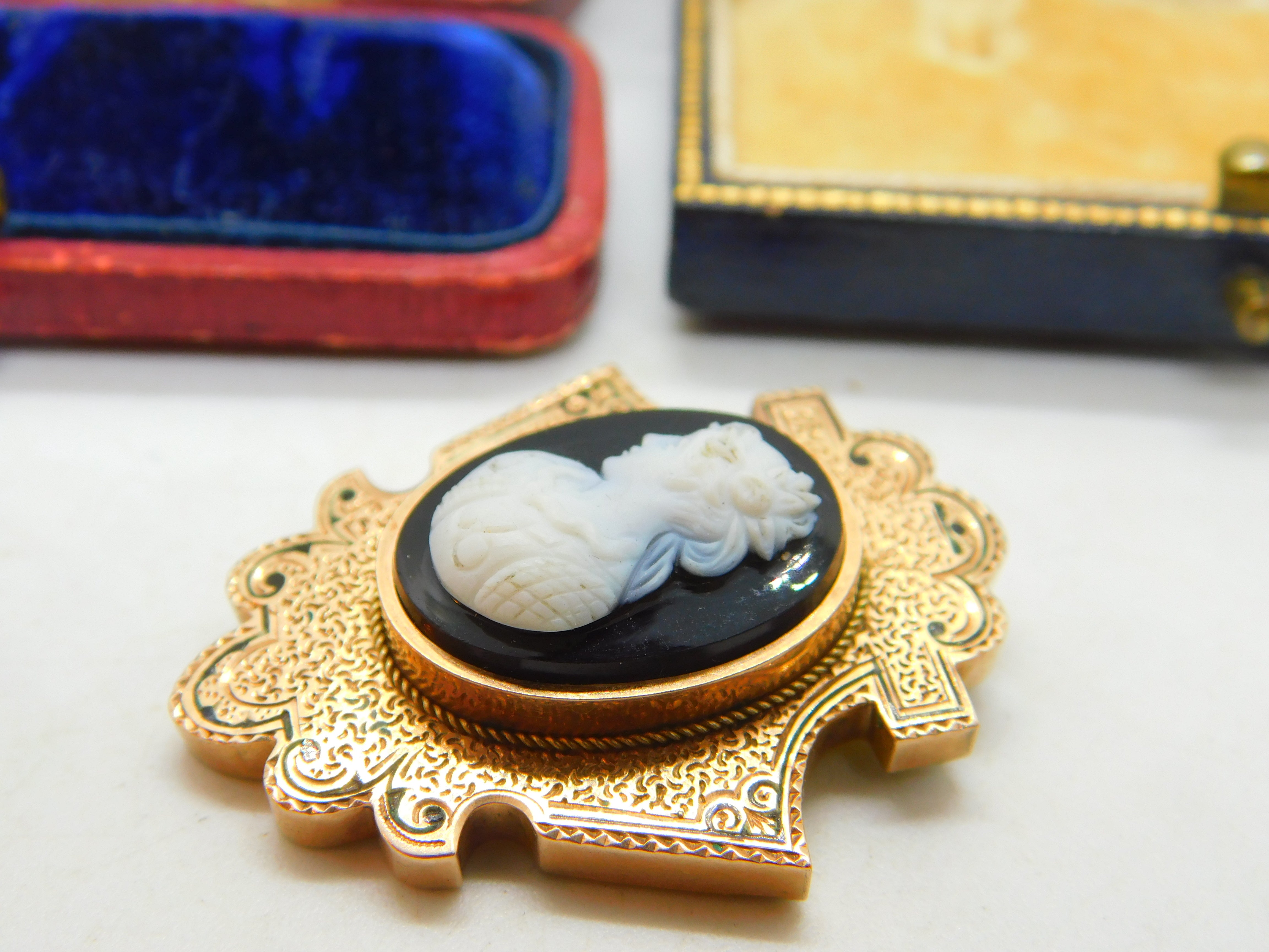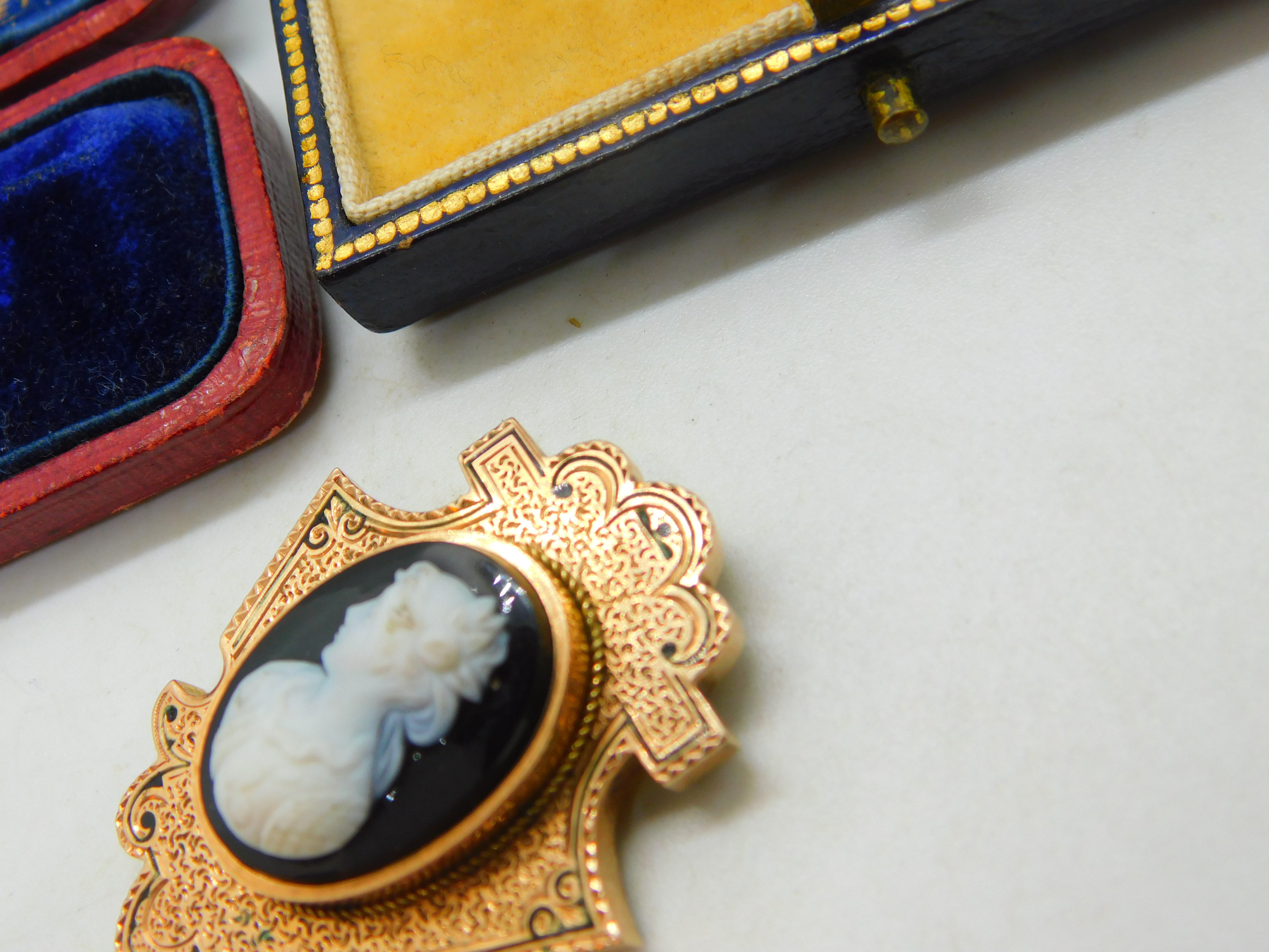 Details: A superbly unique antique Georgian 15ct yellow gold mourning pendant set with black enamel and a stunning high relief central cameo of a lady c1820. The gold has been tested as it is not marked and parts of the black enamel surround are missing but an excellent example. This is a wonderful item that would make a perfect gift or addition to any collection. The item is in good condition, all our items are quality conditioned prior to listings however some may have age related signs of wear commensurate with their antique status; please refer to the photos provided as they further inform condition. Please do not hesitate to enquire if you have any questions regarding the product. The box pictured is for presentation and is not included in the listings unless specifically stated otherwise.