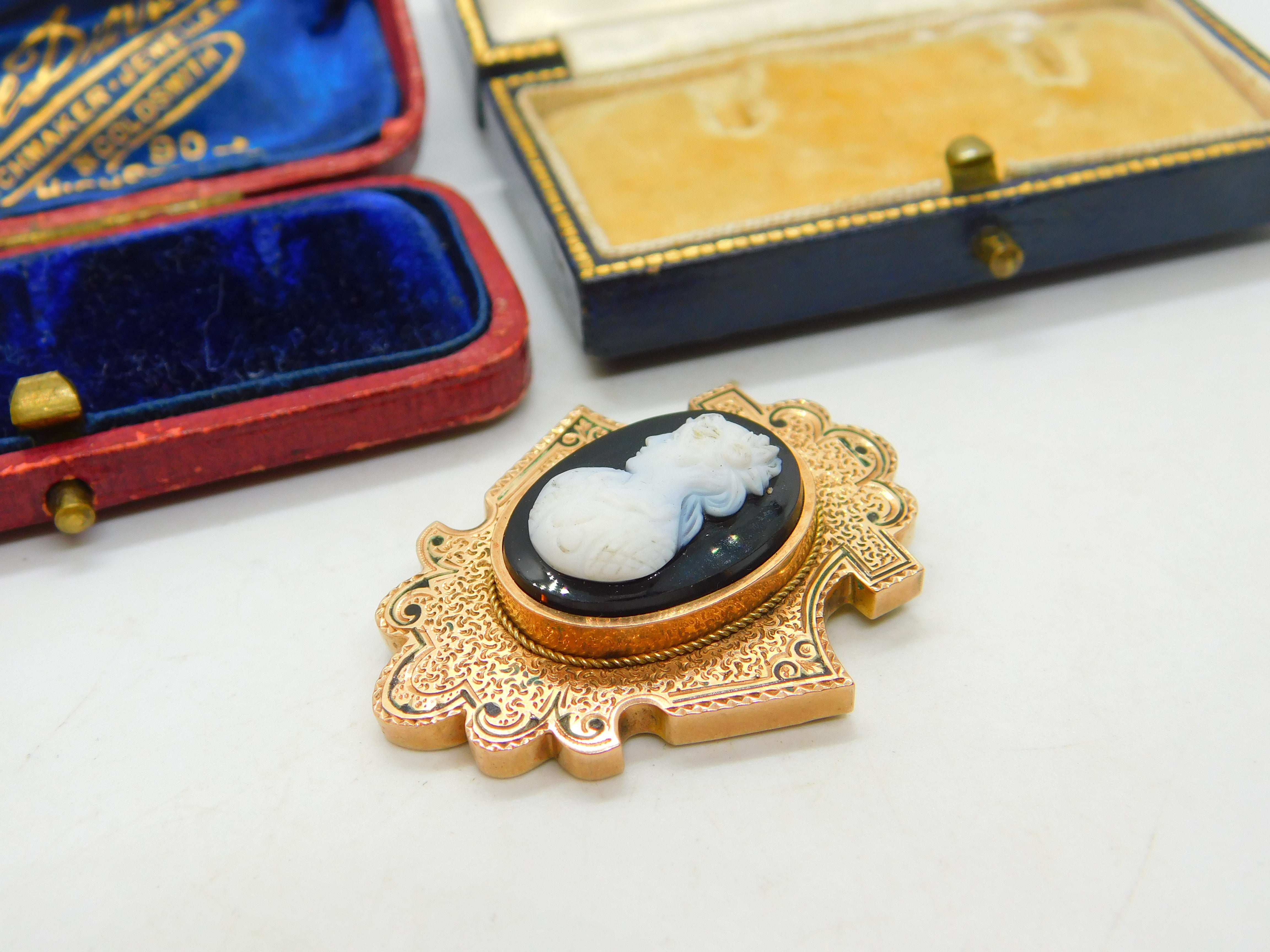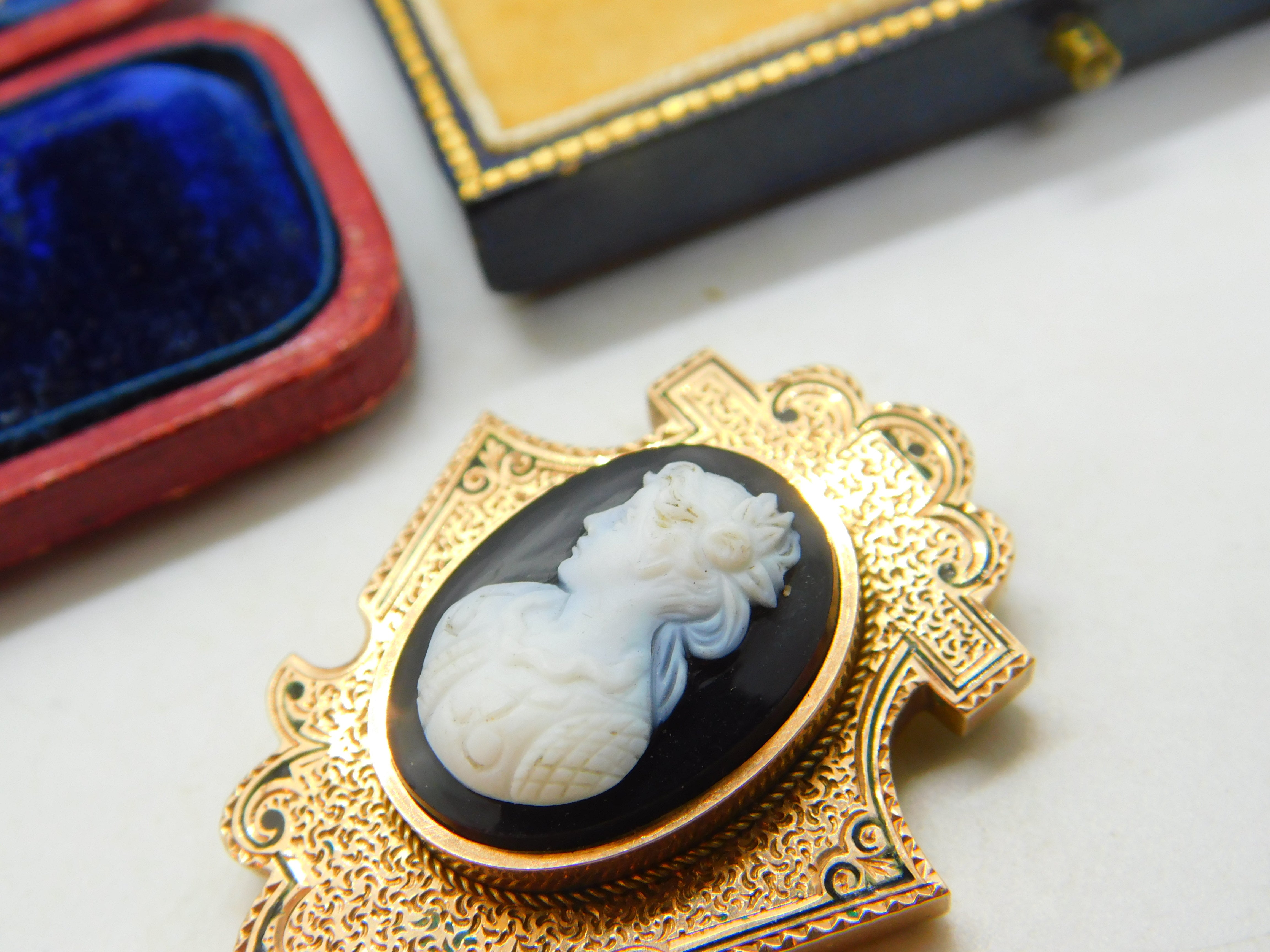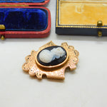 Georgian 15ct Gold Black Enamel High Relief Cameo Mourning Pendant Antique c1820