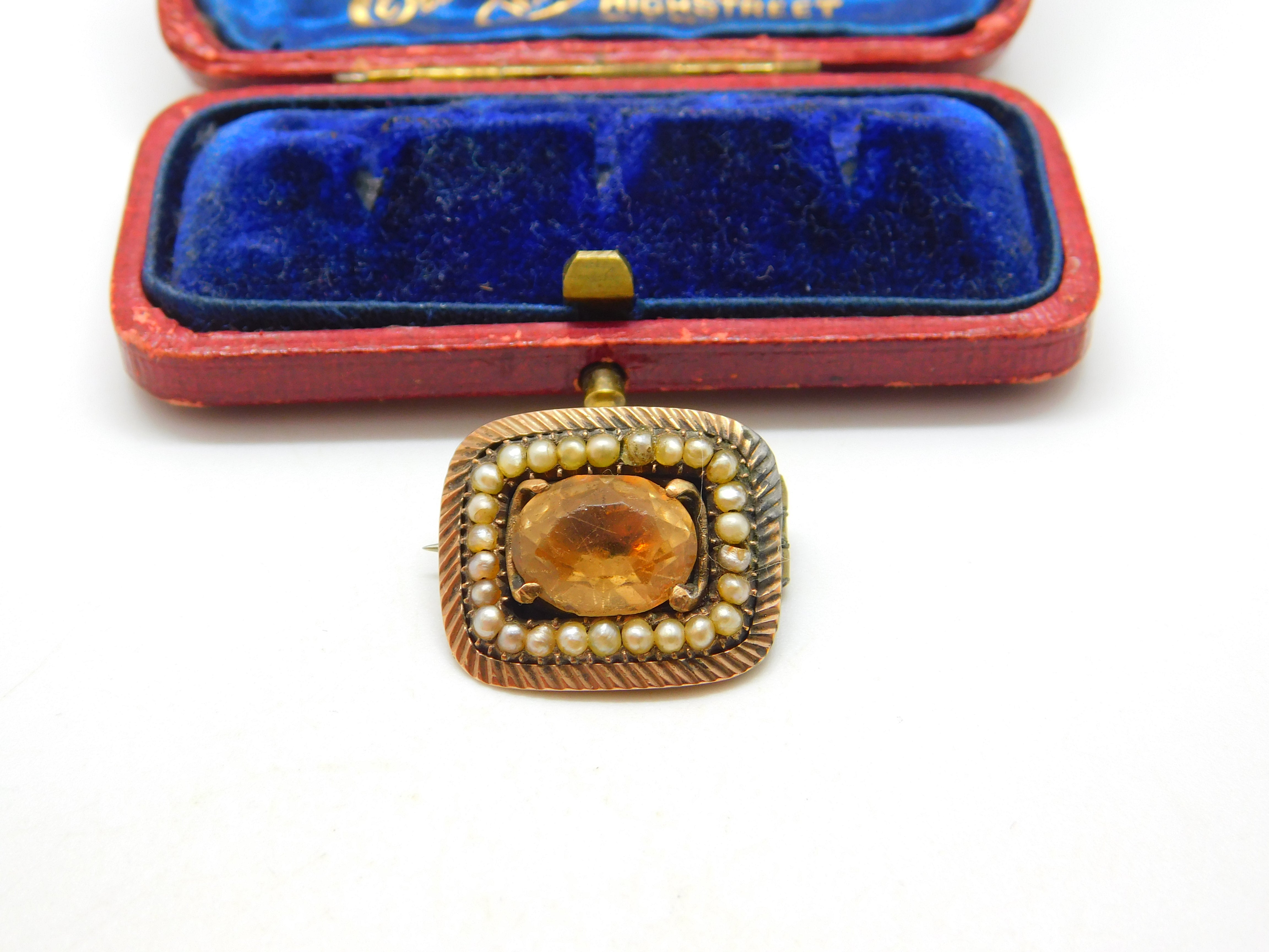 Georgian 9ct Gold, Pearl & Citrine 'In Memory of William Last' Mourning Brooch Antique 1835