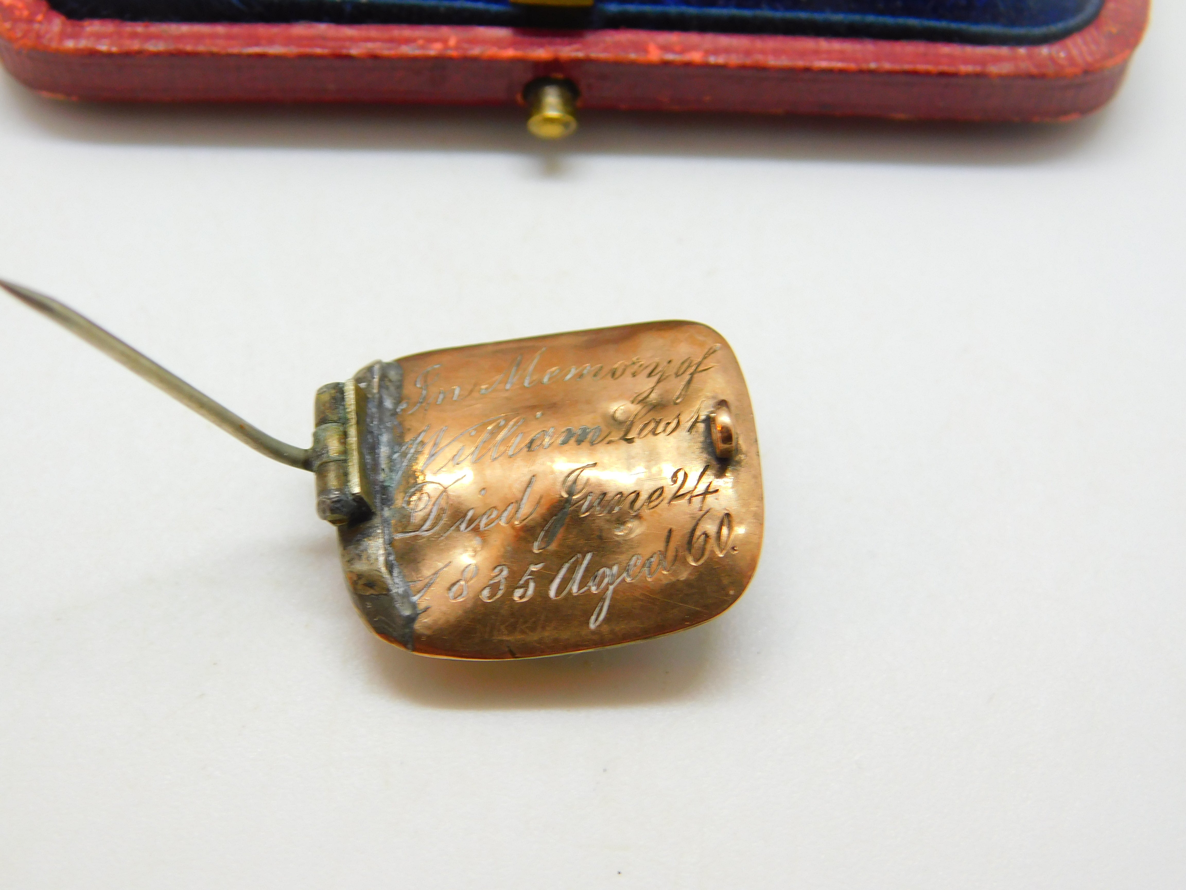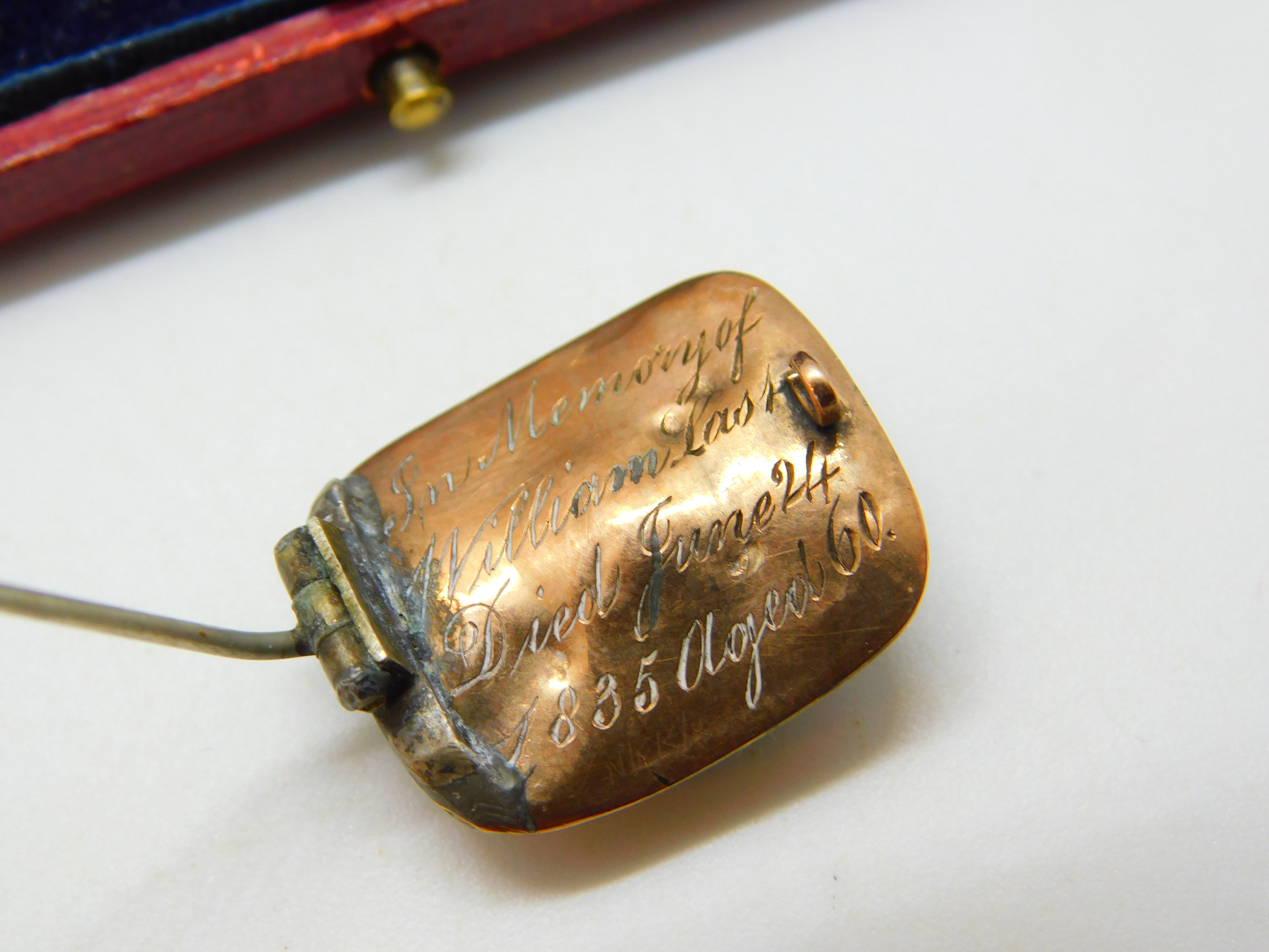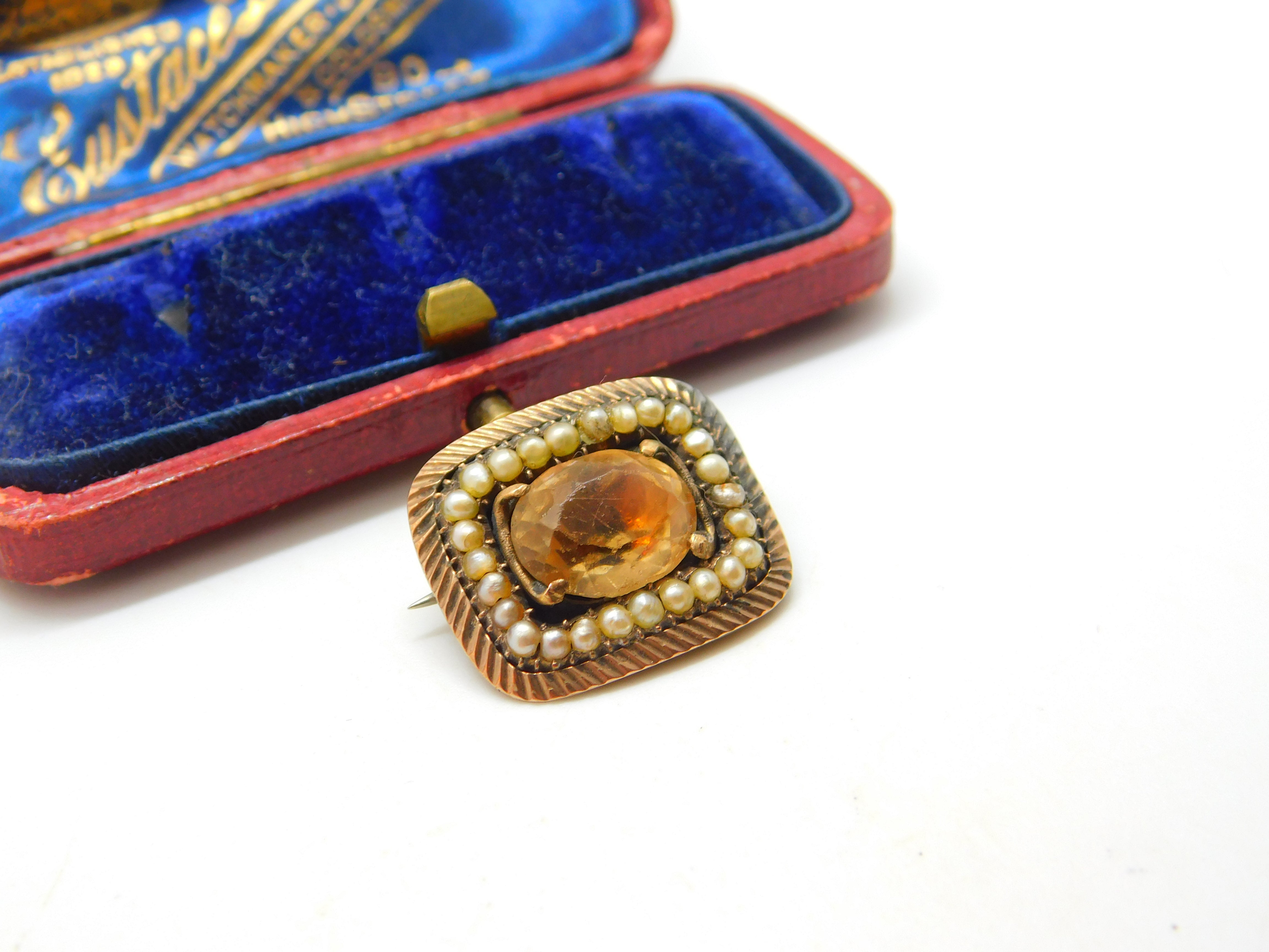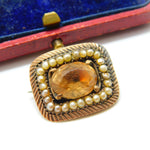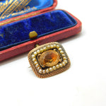 Details: A fantastic and wonderfully designed antique Georgian 9ct gold, seed pearl and faceted citrine mourning brooch with charming inscription reading 'In Memory of William Last Died June 24 1835 aged 64'. The gold has been XRF tested - slightly dented to the reverse but a lovely early example.This is a wonderful item that would make a perfect gift or addition to any collection. The BOX pictured is for PRESENTATION ONLY and is NOT included in the listings but used to frame the pictures unless specifically stated otherwise.